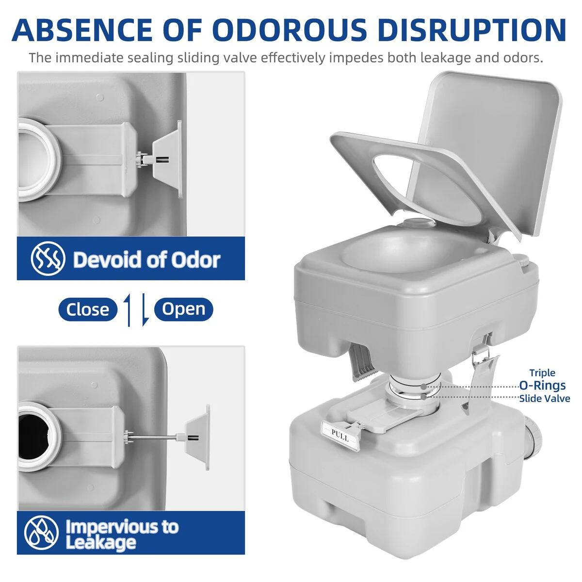 - Odorless and convenient: Say goodbye to smelly surprises! Our camper toilet comes with a slide valve that locks in odors and seals away waste, while its tank handle makes it a breeze to tote around