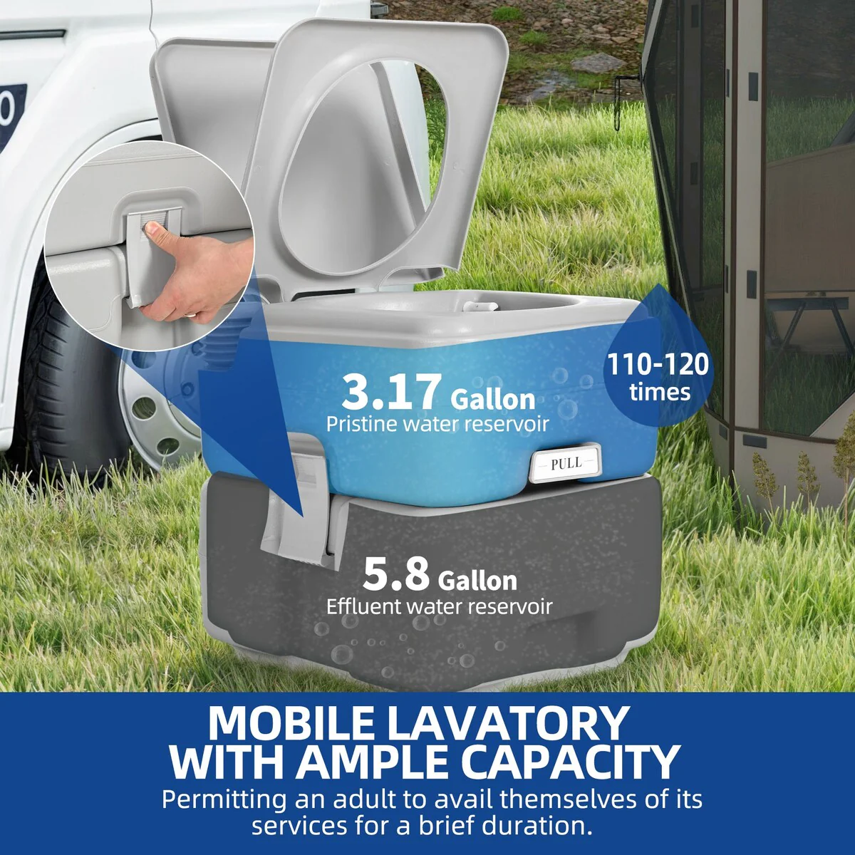 - Large capacity: With a 3.17-gallon (12L) freshwater holding tank and a 5.8-gallon (22L) waste-water holding tank, this portable travel toilet ensures multiple uses, saving you the hassle of frequent filling and dumping during camping trips