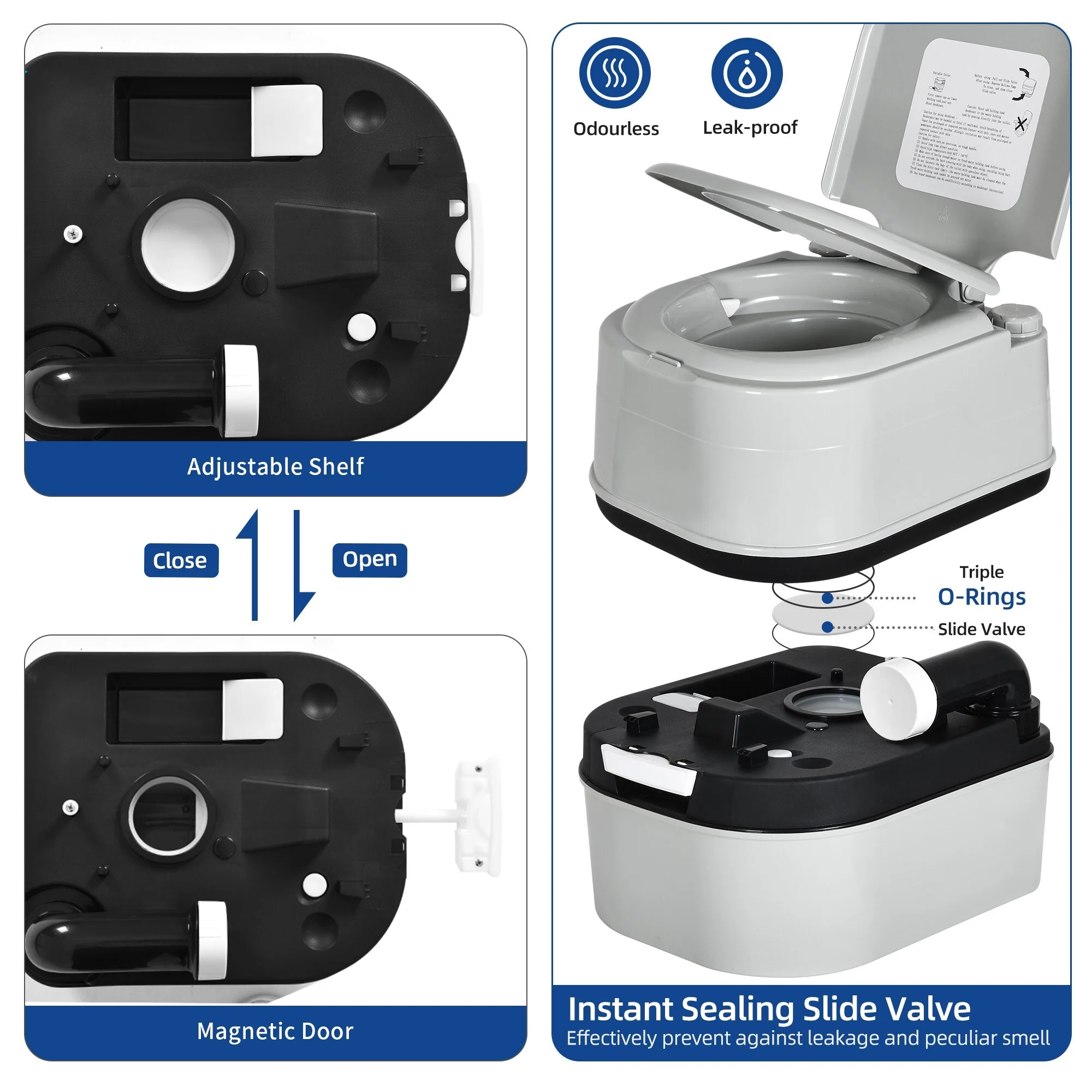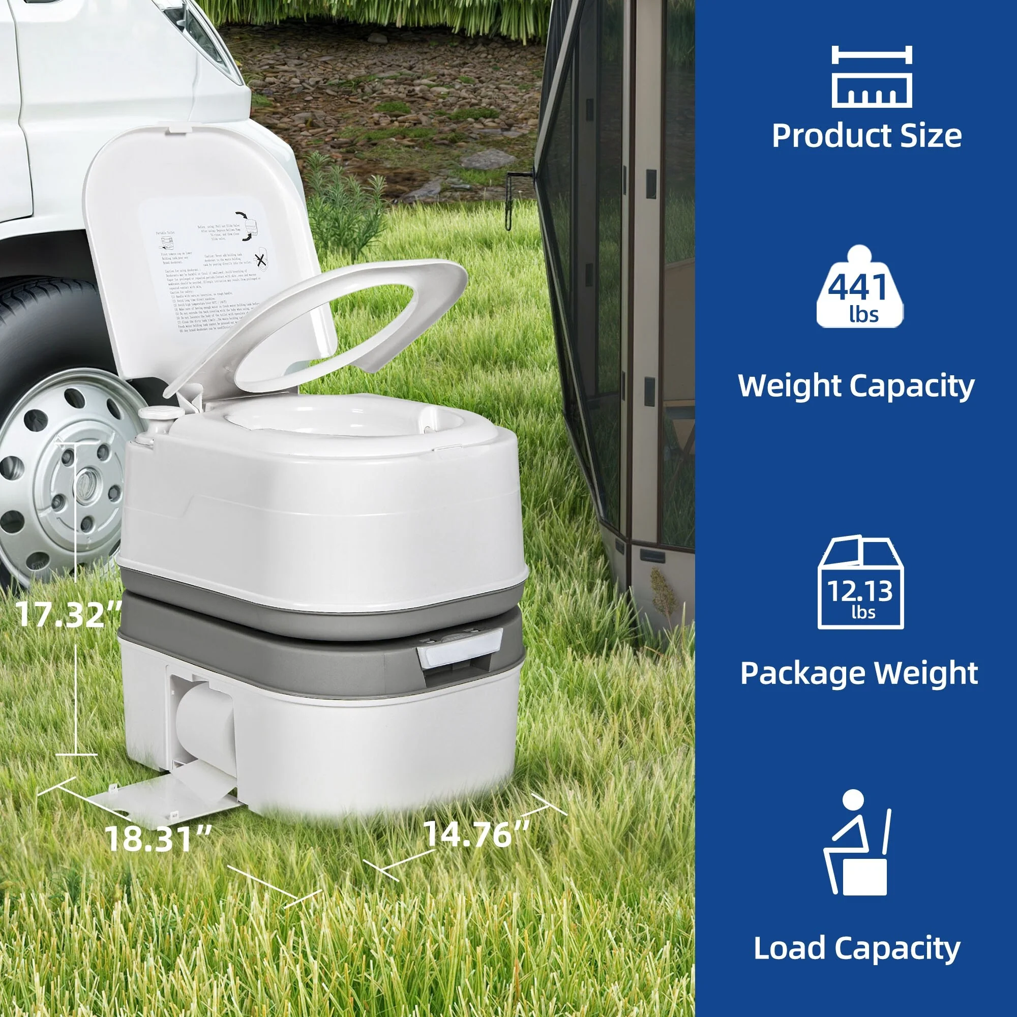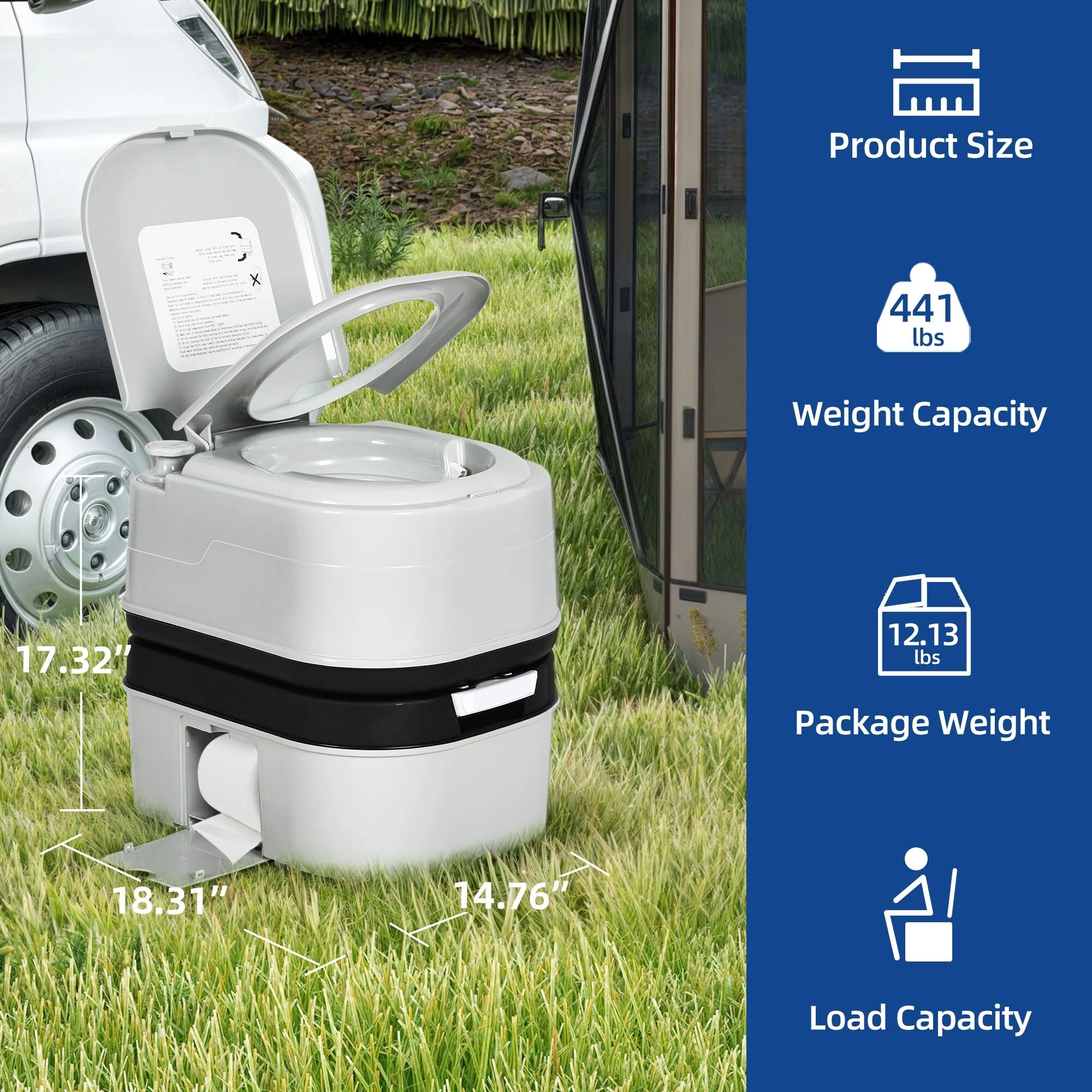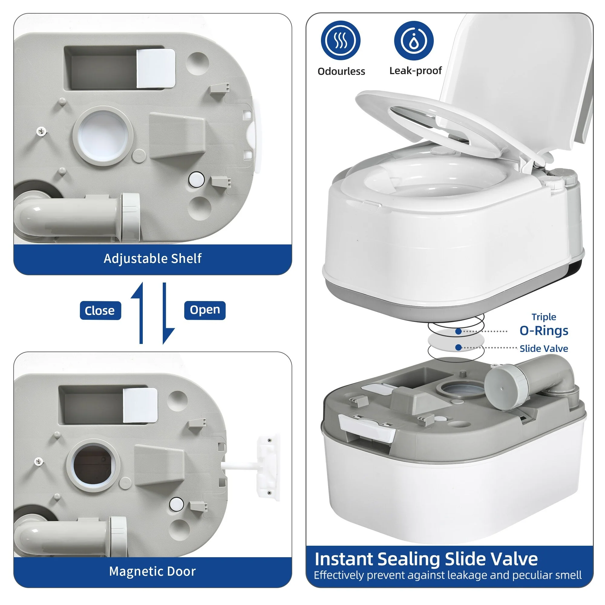 Introducing the ultimate camping toilet, designed for convenience and durability. With a robust 5.28-gallon freshwater tank and a 6.34-gallon waste-water tank, it's built for multiple uses without the hassle of constant emptying. Capable of supporting up to 331 lbs, it's suitable for all users, from children to the elderly. Its efficient cleaning system with dual water outlets ensures thorough sanitation, while the handle pump makes flushing effortless. The integrated paper and detergent storage keeps essentials handy and avoids the need for additional holders. Odorless and convenient, it features a rotating spout for easy emptying and a slide valve to seal in waste. Disassembly is a breeze with a simple button press, and the handle design makes it portable. Ideal for camping, travel, and various vehicles, it's the perfect solution for outdoor enthusiasts and those in need of portable sanitation.