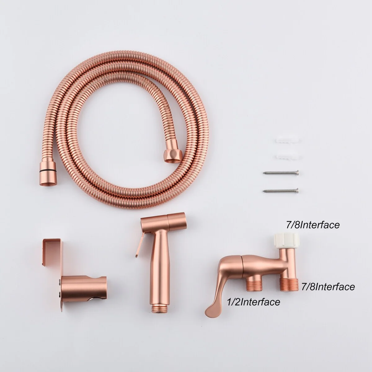 Bring your bathroom into the 21st century with this Sliver Handheld Bidet Sprayer in rose. Diminish your paper usage, avoid toilet clogs, and enjoy a cleaner life overall.It can not only be clean body, particularly ideal for women during pregnancy and menstrual cycles to get a gentle and thorough clean up, but also can be used as a diaper sprayer, toilet cleaning, potty too, etc.which will make the ''dirty work'' so much easier.Leak-Proof & High Quality-The hose features double protection with a stainless steel casing and an EPDM inner tube (better than PVC), to get rid of leak problems. Each of the designs of your handheld bidet sprayer for toilet is to prevent leakage so that you can buy it at ease and use it comfortably.
