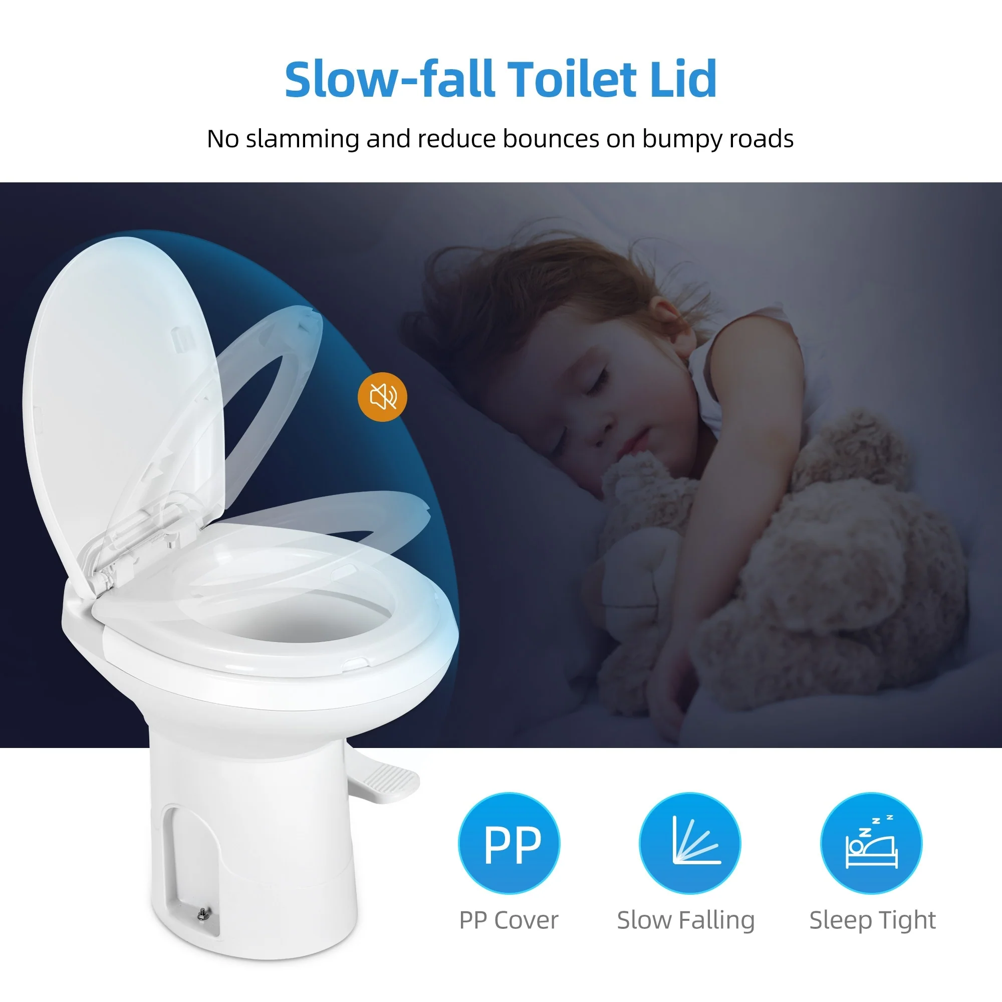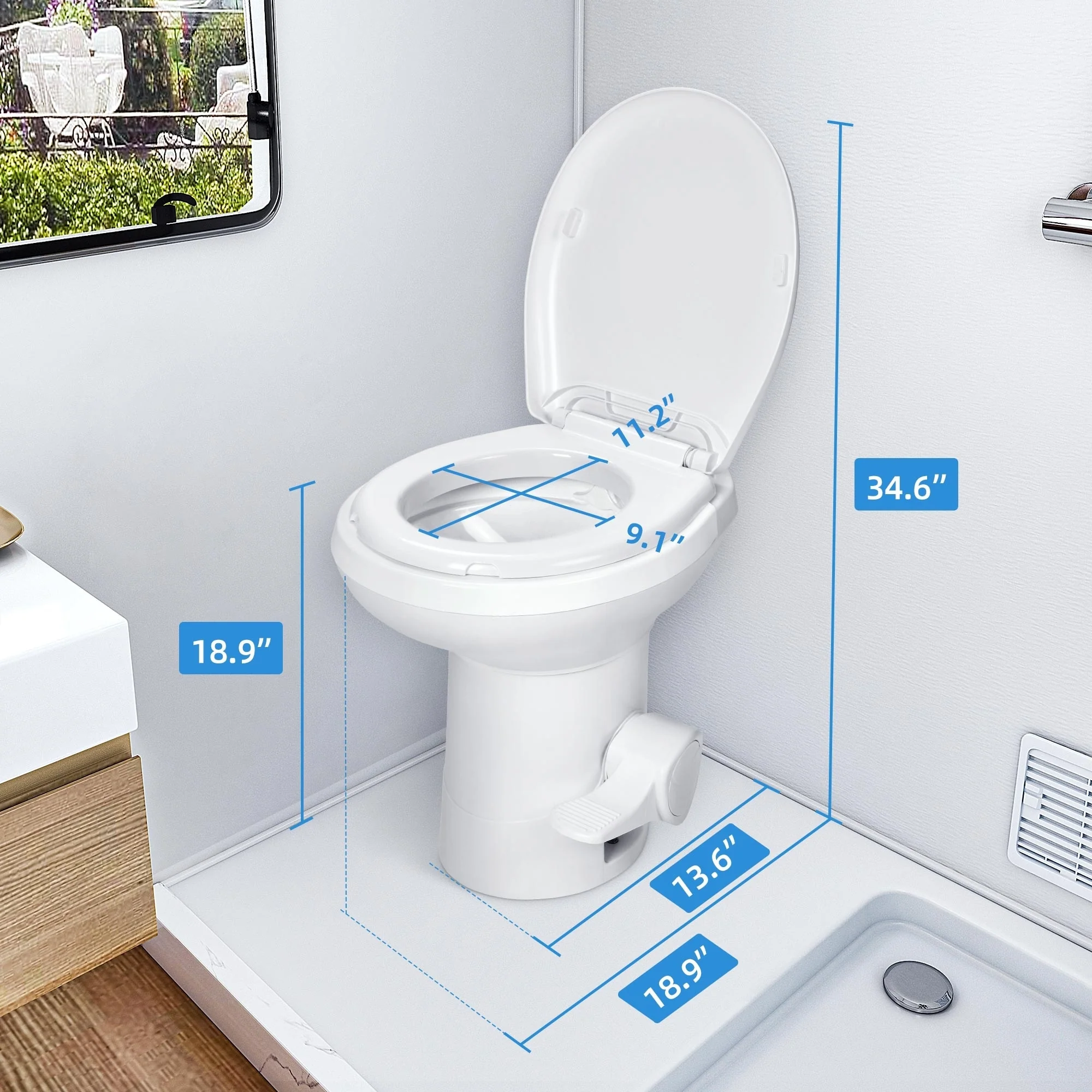- 4. PREMIUM MATERIAL & EASY INSTALLATION: The camper toilet is made of premium PP and HDPE with durable and strong construction; It can bear up to 551 lbs to meet people's needs; According to the detailed instruction (Distance from the center of the bolt holes to the back wall about 7.09 inches ), you can assemble the camping toilet porcelain by yourself in minutes