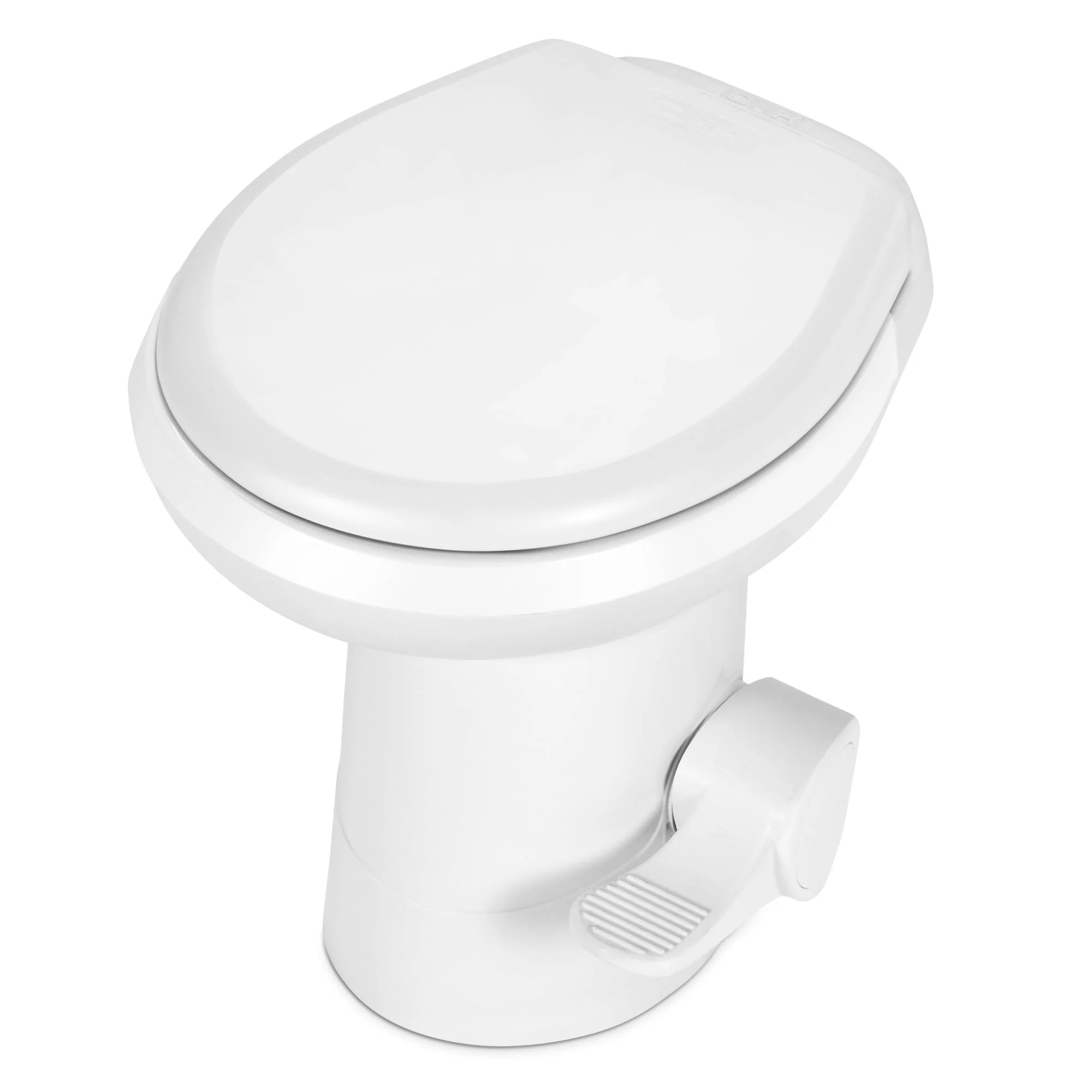 - 1. EFFORTLESS FOOT PEDAL: Just slightly step on the pedal to add some water, while stepping on the pedal to the floor to flush and clean the bowl completely; No electricity is needed; After using, the slide valve of cassette toilet can prevent against the leakage and nasty odors; When installing, Please must use glass glue on the bottom edge of the toilet for airtight reinforcement to effectively prevent the leakage problem