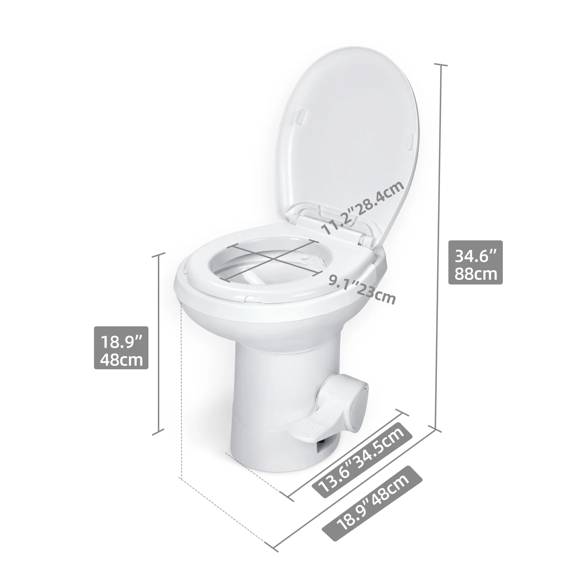 - 1. Ideal outdoor companion: The gravity RV toilet is like a house toilet for easy maneuverability and home-like comfort. It solves your urgent needs when you are traveling, camping, working outside, etc