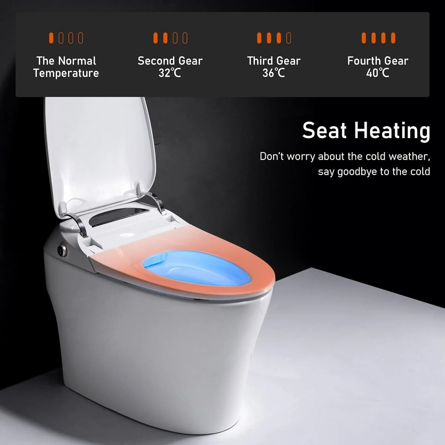 - 🚽 Cozy Heated Seat & Intuitive LED Display: Our smart toilet with heated seats allows you to adjust the temperature through a remote or side control knob, providing a warm and comfortable sitting experience. Stay informed with real-time seat and water temperature updates displayed on the LED screen, managed by a sensitive sensor.
