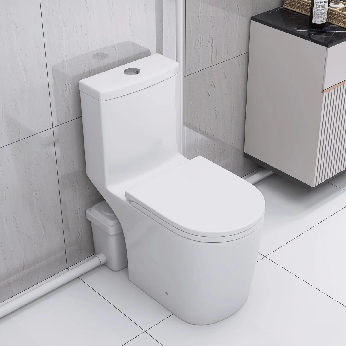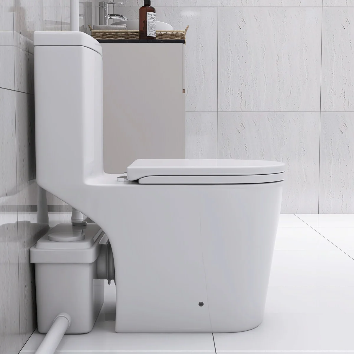 - Space-Saving Design: Pump concealed behind toilet for a sleek look.