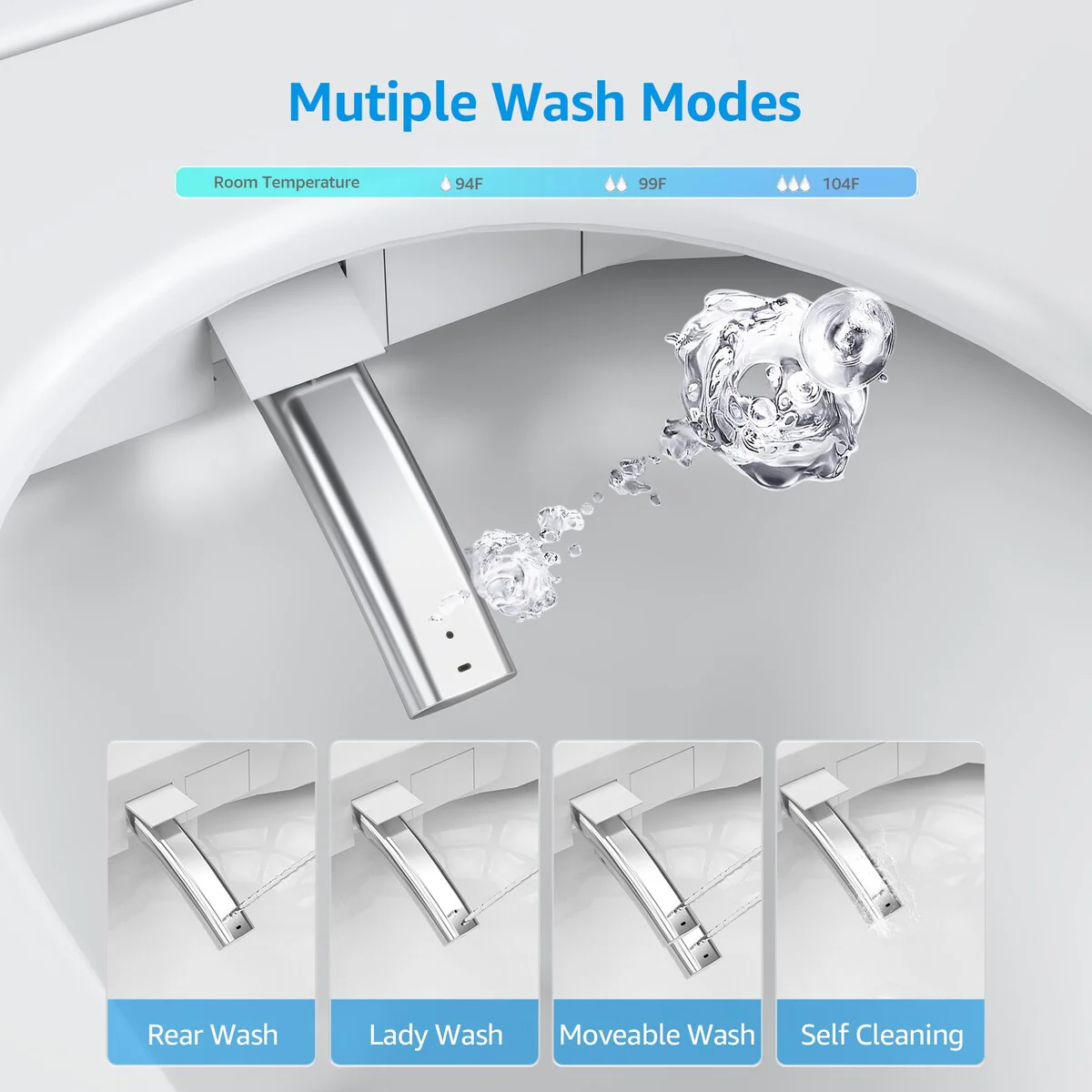 - Multiple Cleaning Modes: This includes Rear Wash, Lady Wash, Moveable Wash and Self Cleaning, providing a steady flow of approximately 0.16 gallons per minute for targeted cleaning, Feminine Cleaning Mode is specifically tailored for feminine hygiene, providing approximately 0.18 gallons per minute Mild flow rate of gallons.