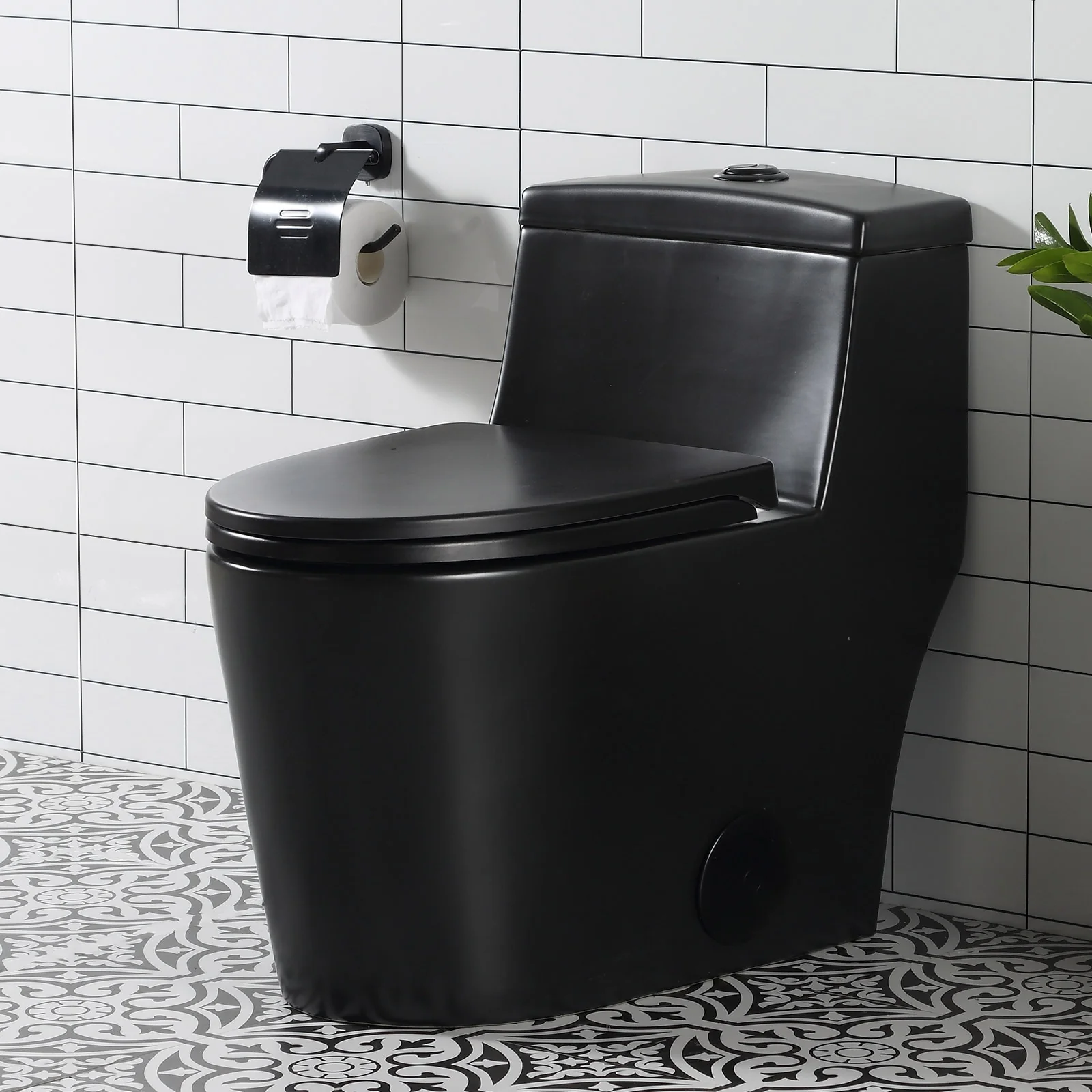 HOROW One-piece 0.8/1.28 GPF Dual Flush Elongated Toilet in Black Seat Included
