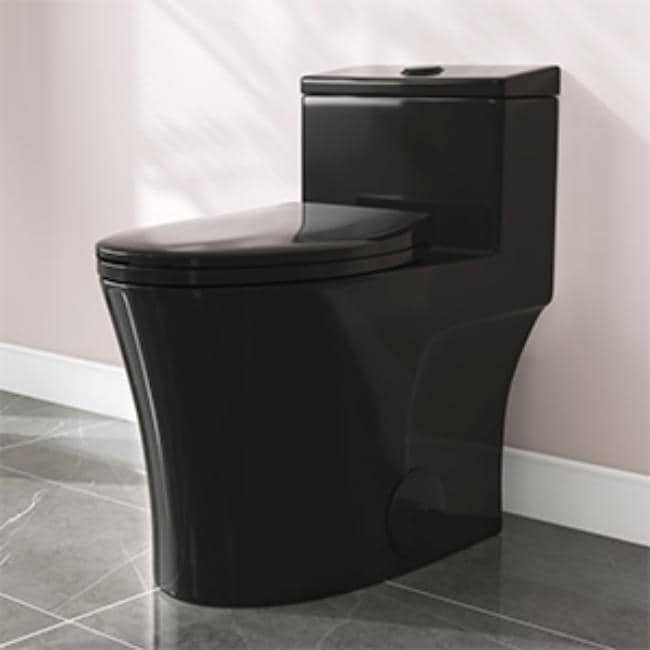 HOROW One-piece 0.8/1.28 GPF Dual Flush Elongated Toilet in Black Seat Included -- 12 Rough in