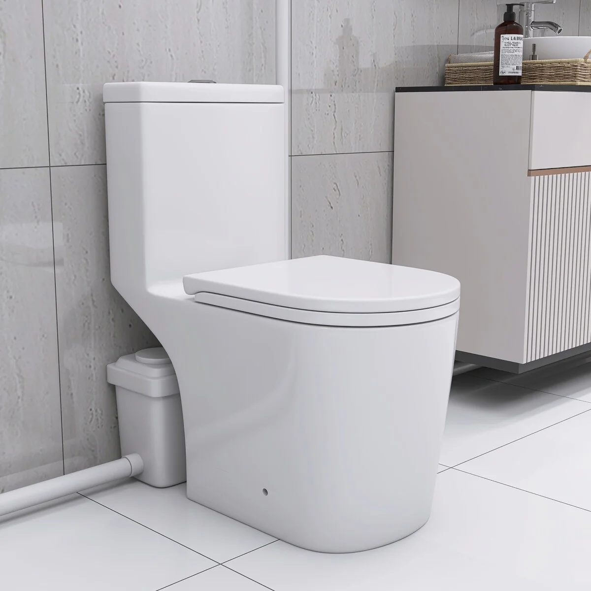 Upflush Toilet,600W Macerating Toilet System,Powerful Dual Flush,Elong 17.25 ADA,Soft-Close,3 Water Inlets to Sink,Shower