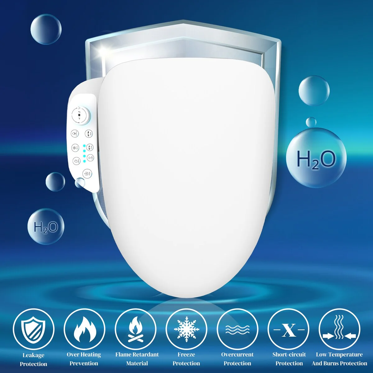 Electric Bidet Seat for Elongated Toilets with Side Panel in White - 20.5Lx16W