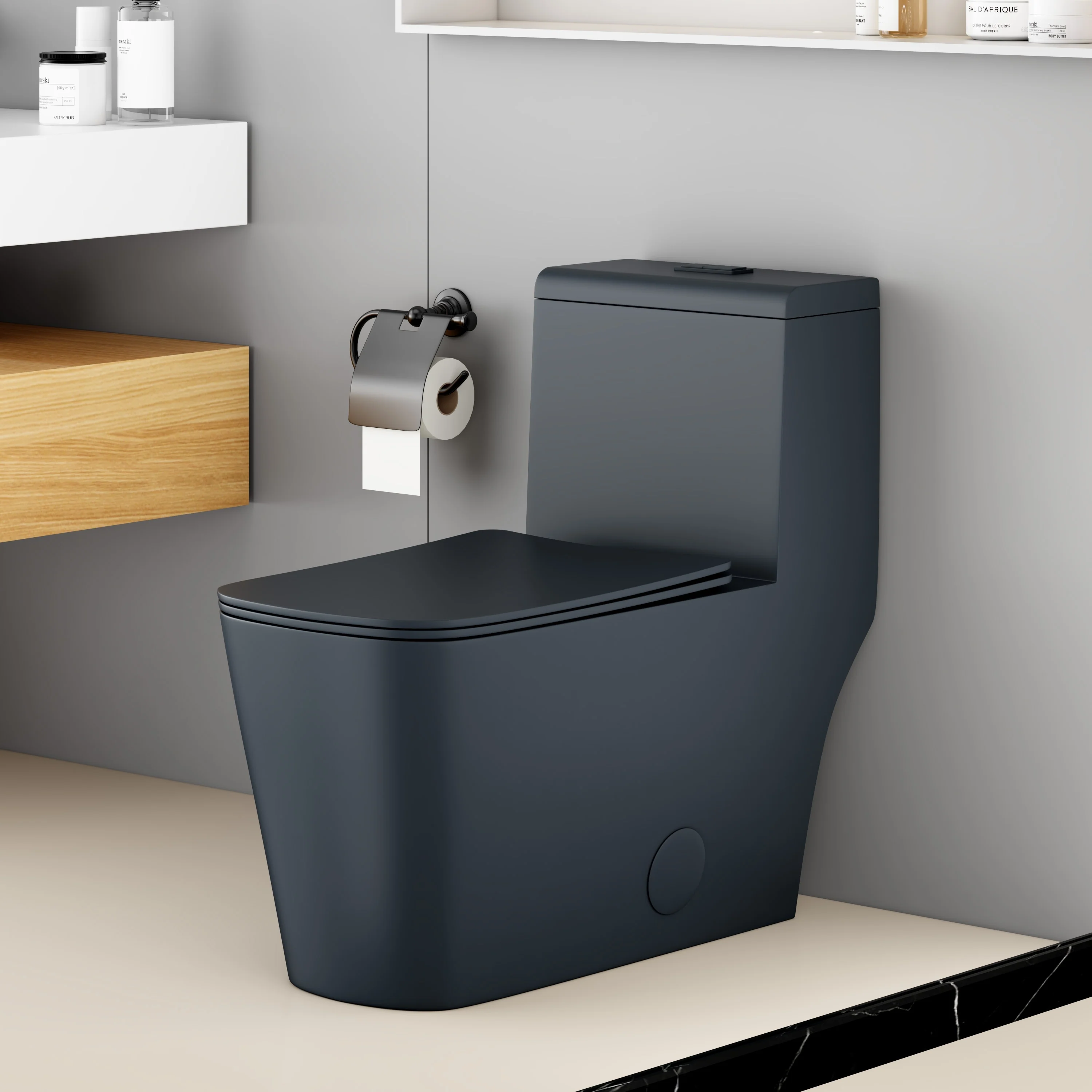 CB HOME Grey One-Piece Toilet, Dual Flush Elongated Siponic Toilet 1.1/1.6 GPF Slow Close UF Seat 16.5'' Height