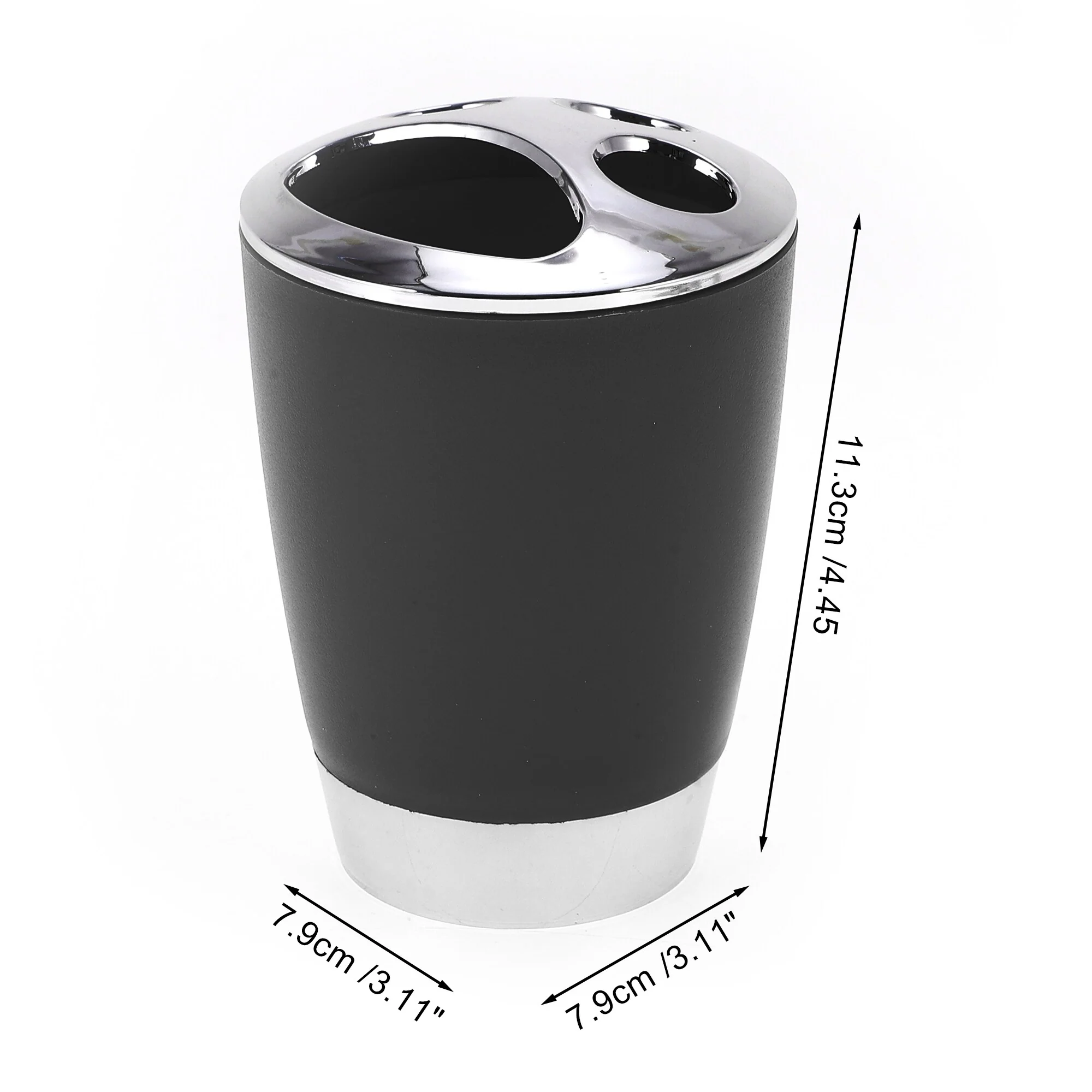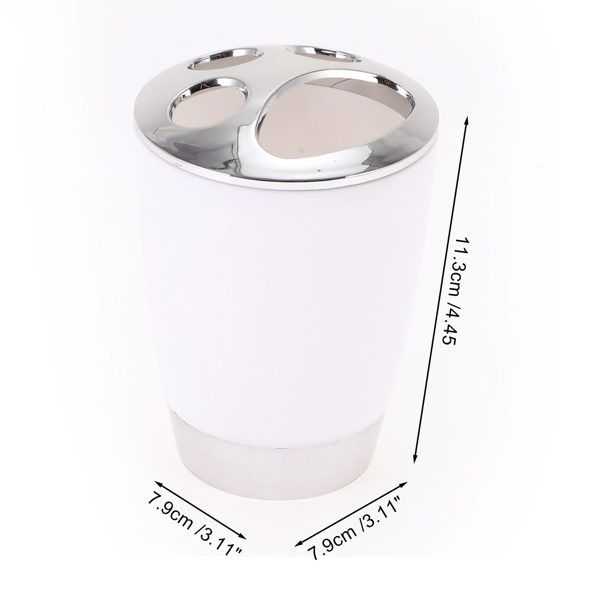 Measuring 4.45x'3.11x'3.11', the toothbrush stand fits is good for compact spaces on bathroom counters, in cabinets, or under Please Note: Please allow 1-3mm measuring deviation due to manual measurement.