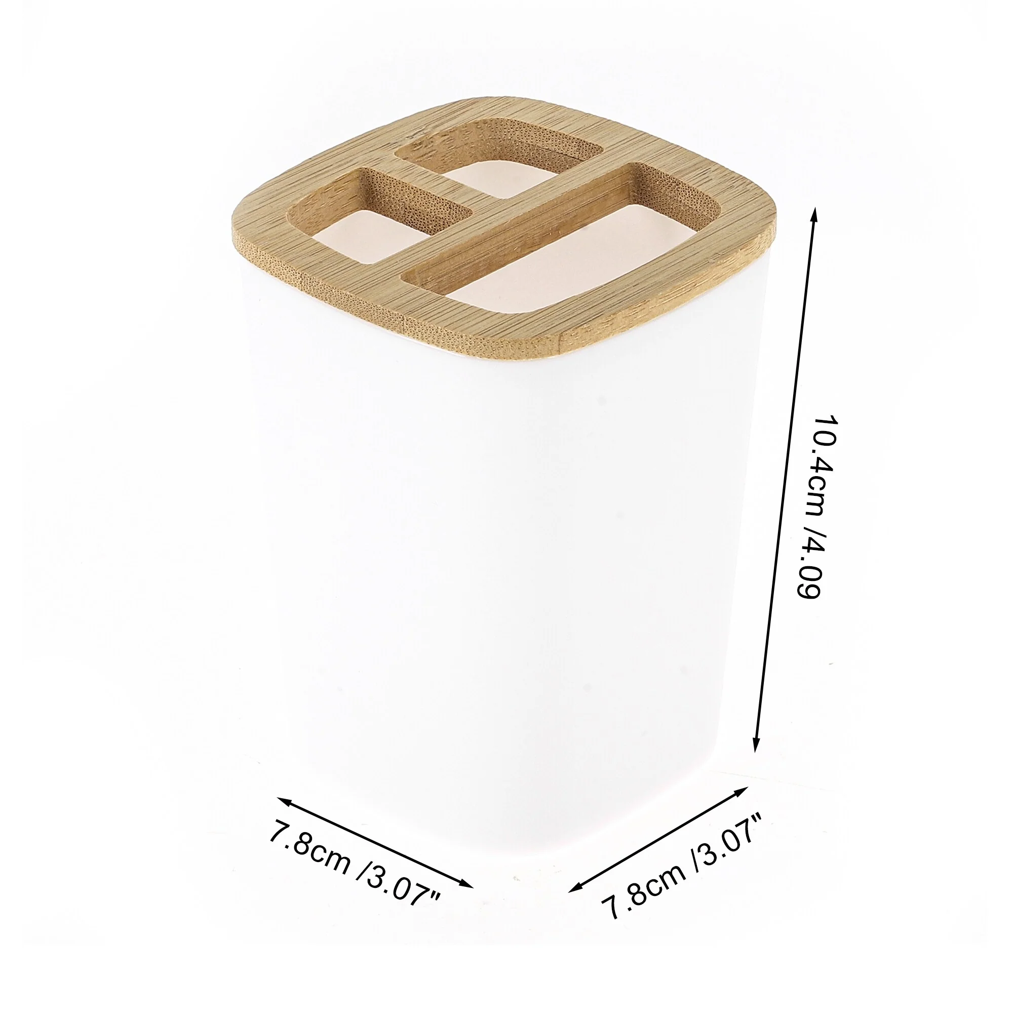 Measuring 4.09x'3.07x'3.07', the toothbrush stand fits is good for compact spaces on bathroom counters, in cabinets, or under Please Note: Please allow 1-3mm measuring deviation due to manual measurement.