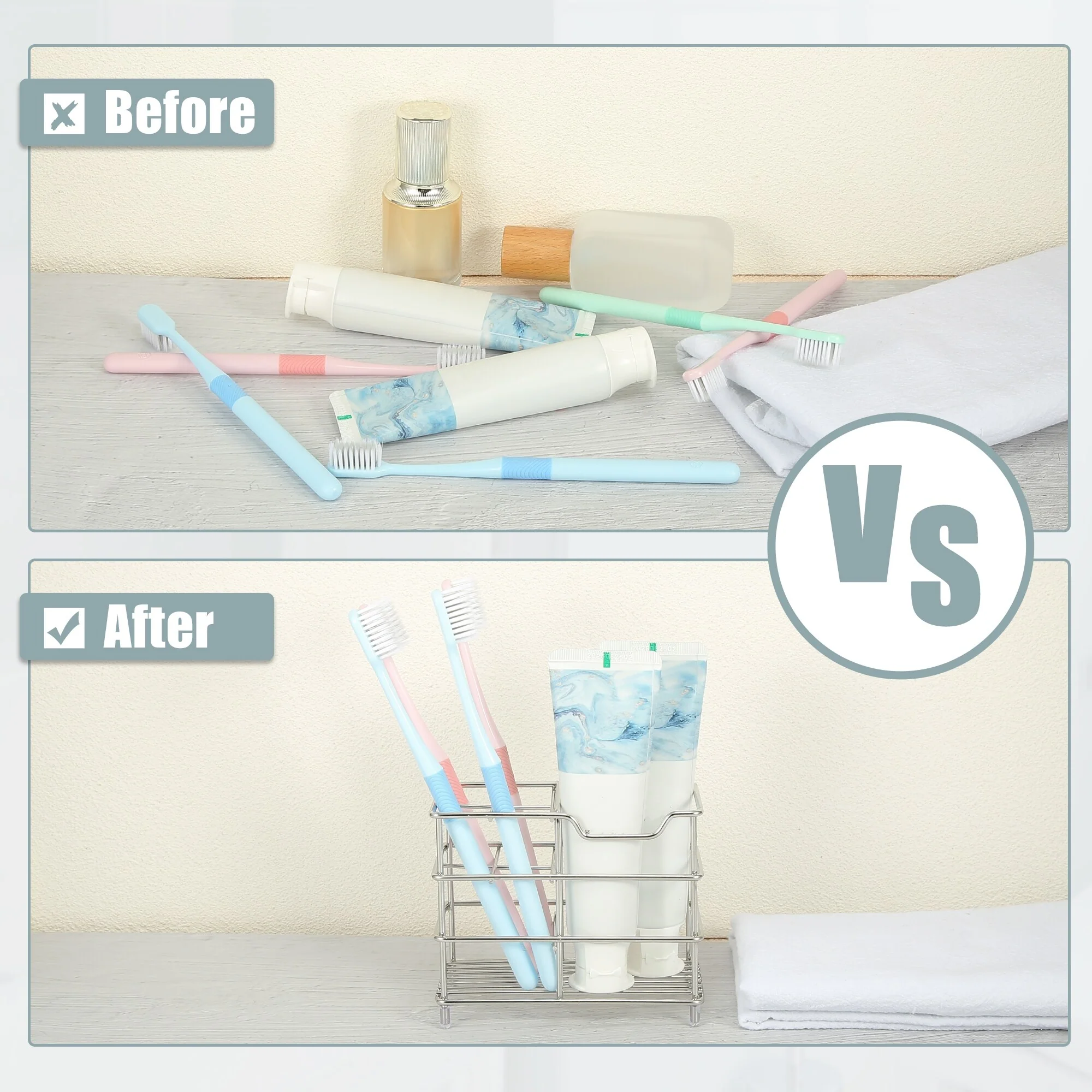 - The Toothbrush Holders are made of 304 stainless steel, the color is shiny and shiny, it is waterproof, strong and light, not easy to damage, and durable.