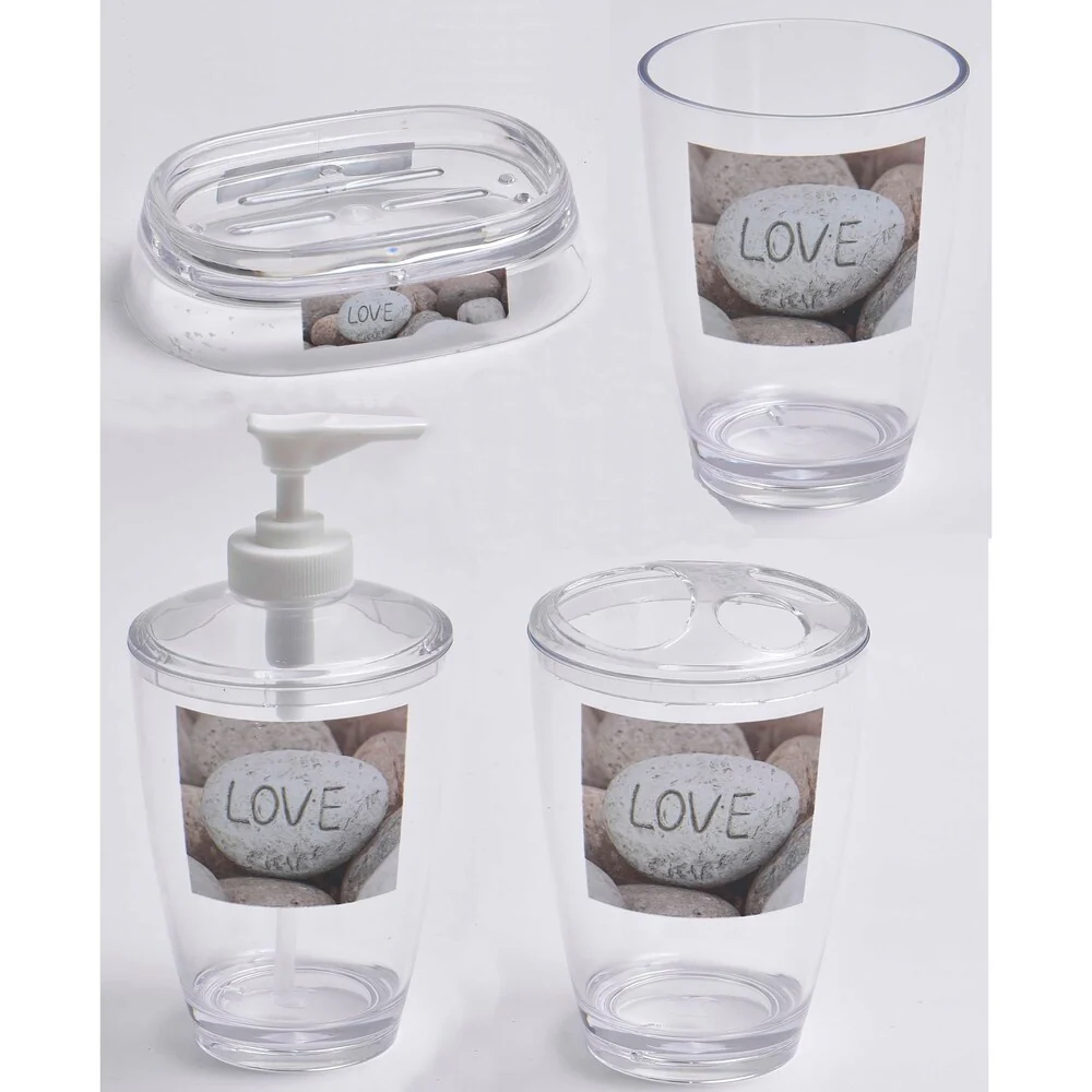 Enjoy a zen-like, cozy and romantic atmosphere with this bathroom toothbrush holder Design Nature featuring a natural design of love and round stones. This printed bathroom toothpaste holder is made of clear acrylic and is a lovely accent for any bathroom! Its shape is flared upward with a diameter of 2.95-Inch and a height of 4.52-Inch (11.5 H x 7.5 L cm) and has four slots for toothbrushes and toothpaste. Removable open for easy cleaning. Wipe clean with a damp cloth. Color brown, grey and clear. Imported from France, made in PRC. Accessorize your bathroom countertop in a romantic atmosphere with this charming toothbrush holder! Complete your decoration with other products of the same collection Design Nature like bath mat, soap dispenser, toilet brush, trash can or toilet seat, to name a few.