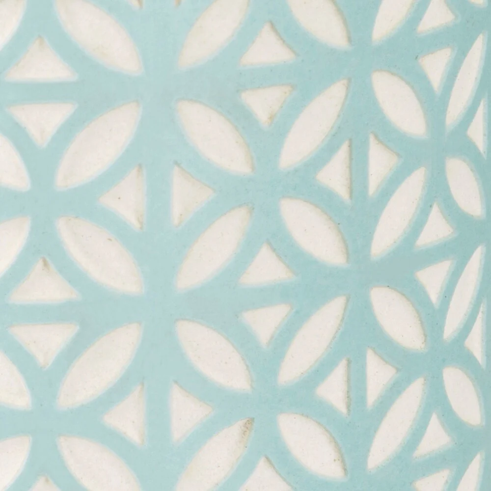 The intricate textural detailing and soft finish of the Felix Bath Accessories bring a serene and peaceful feeling to your spa-like bathroom. The Tumbler, Toothbrush Holder, Soap Dish and Lotion Pump are made of sandblasted ceramic for a distressed finish in a textural diamond motif. The complementary Wastebasket is made of embossed resin also in a textural diamond motif. Each piece is sold separately. Available in white, aqua blue and blush pink. Hand wash.