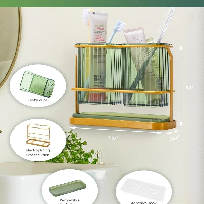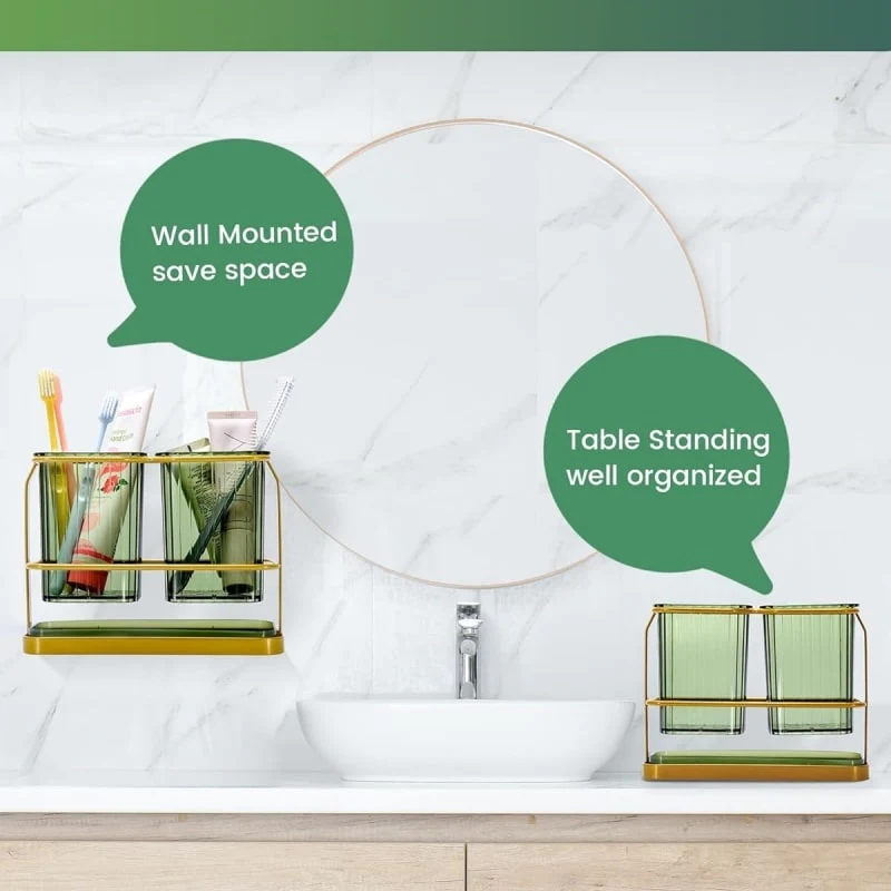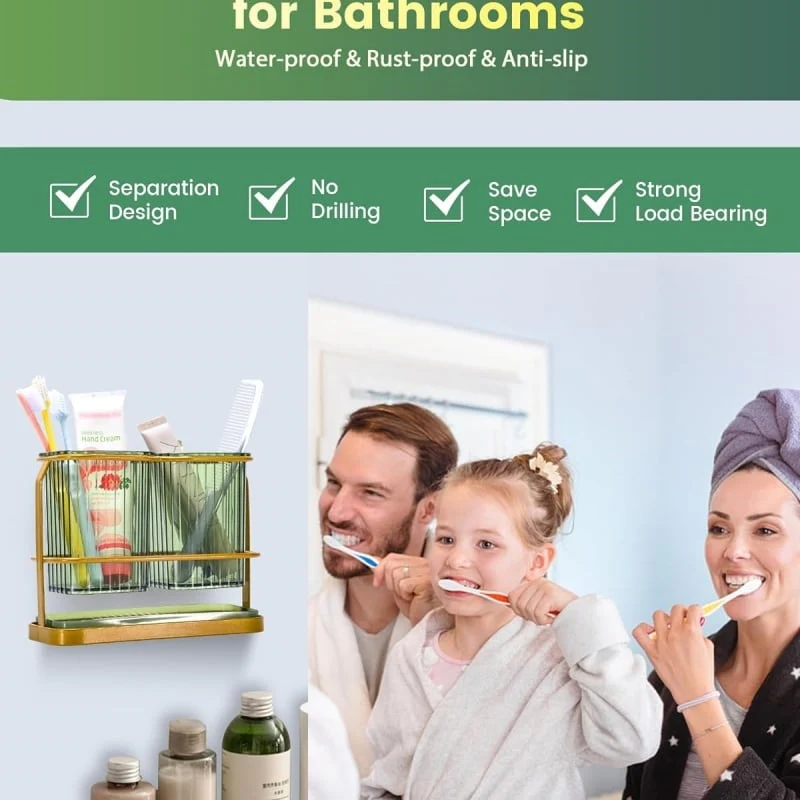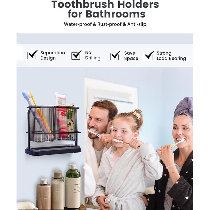 - TOOTHBRUSH HOLDERS WALL MOUNTED: The bathroom toothbrush holder can be hung or laid flat with strong, non-marking adhesive strips for metal, wood, tiles, or marble. Clean the wall, press on the strip, and wait 2 hours before hanging