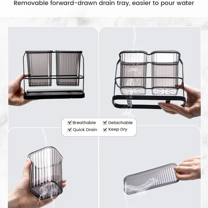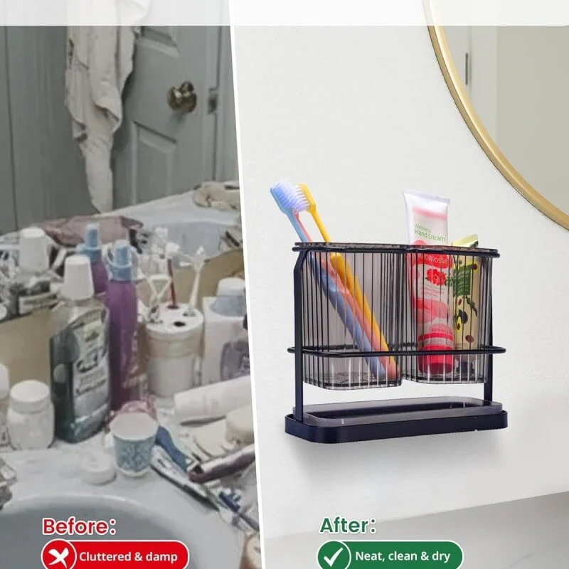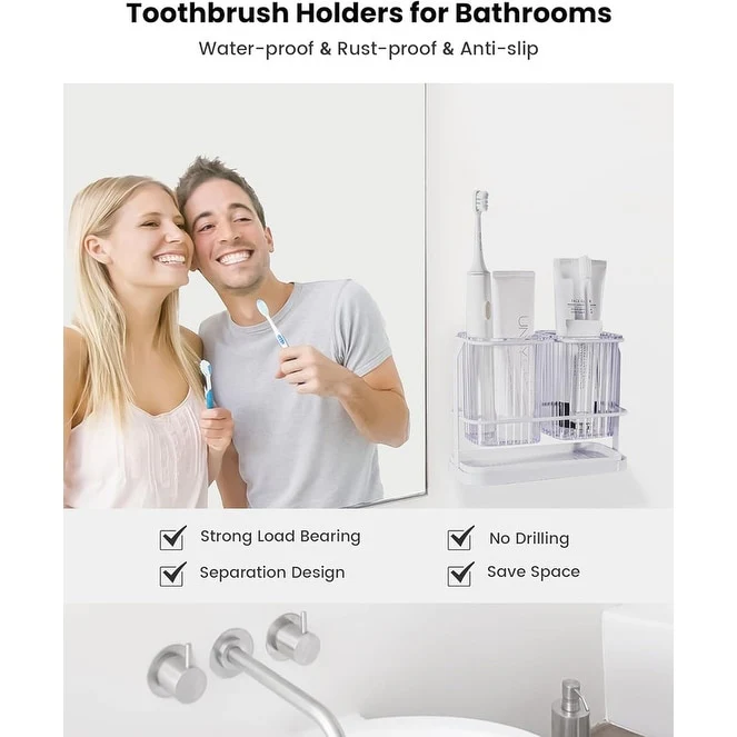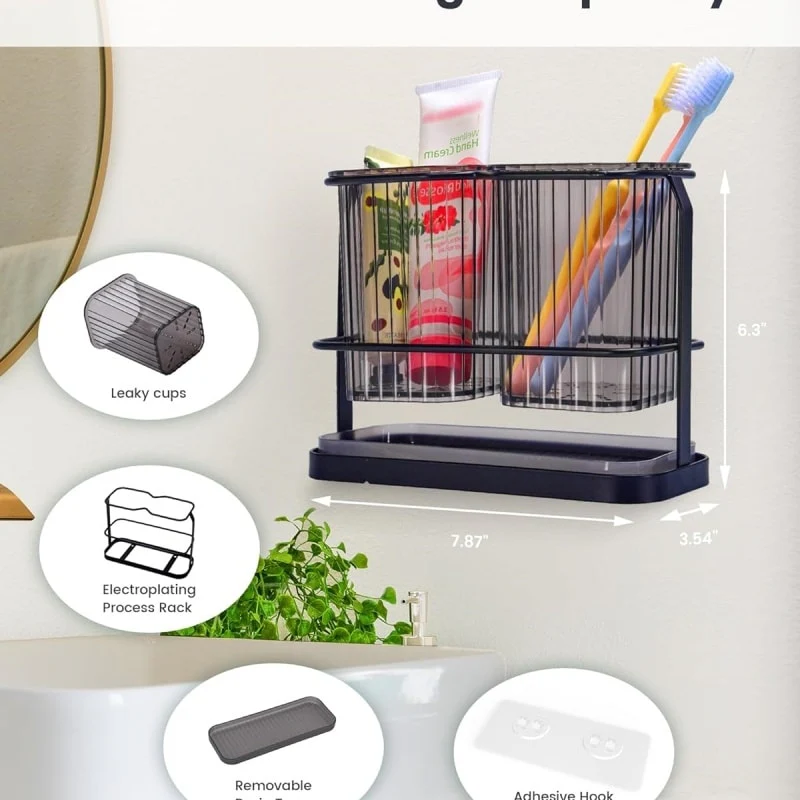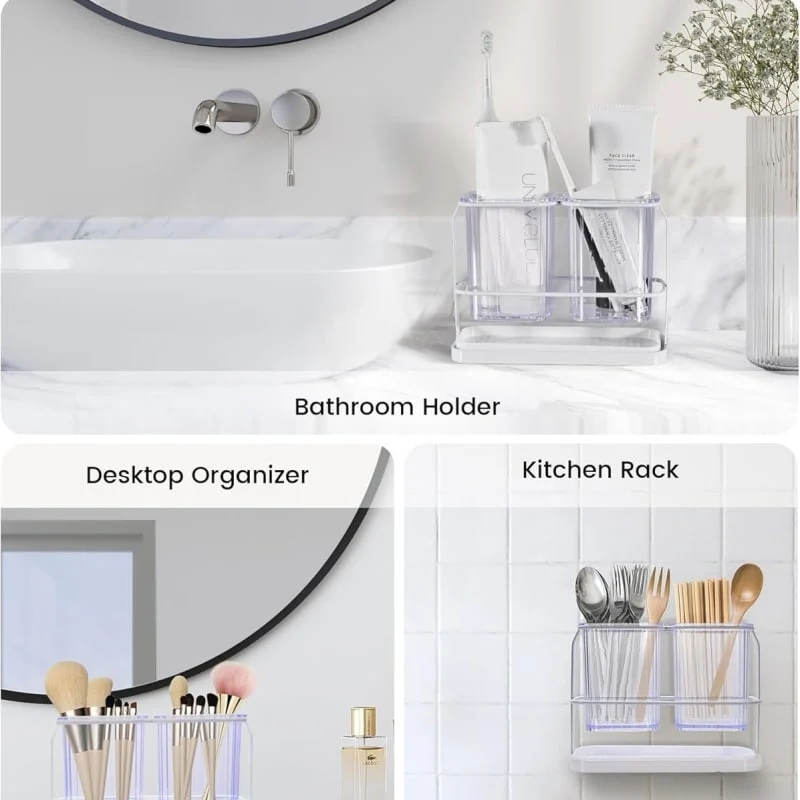 - MULTIFUNCTIONAL TOOTHBRUSH HOLDERS: toothbrush holders store combs, toothbrushes, toothpaste, razors, and frequently used cosmetics to save space and keep countertops clean and tidy in bathrooms, vanities, and kitchens