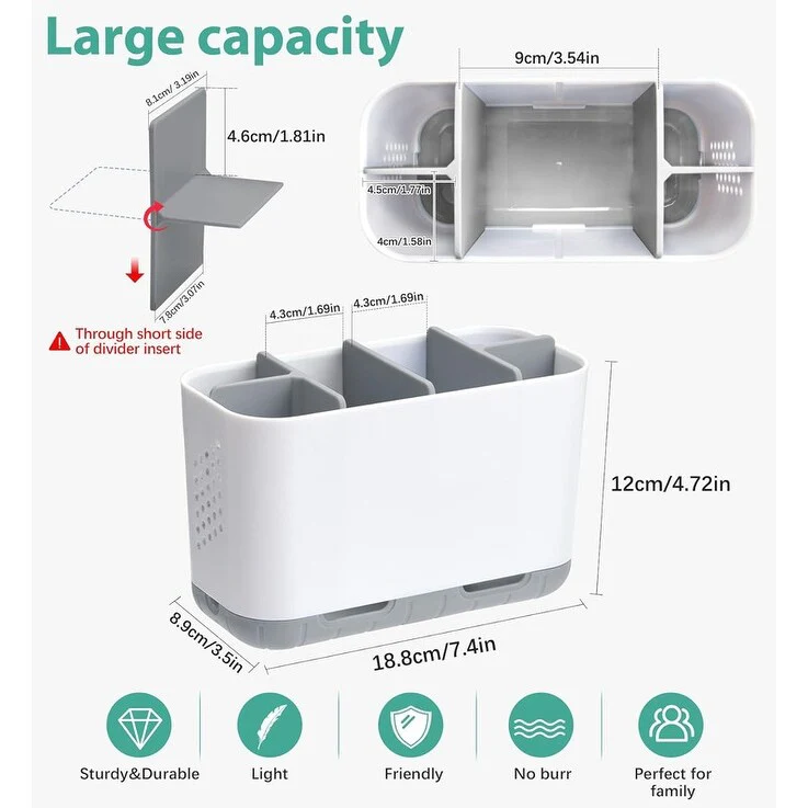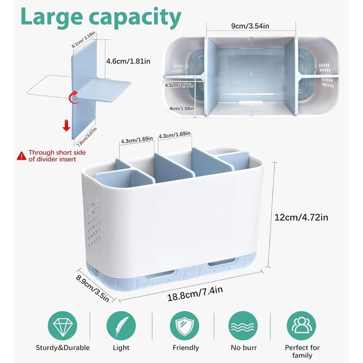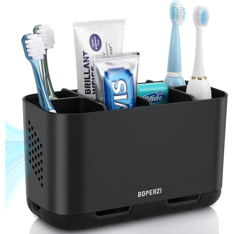 - Food-Grade Material & Ventilation: plastic toothbrush and toothpaste holder is made of ABS+PP+PTR,not BPA, very sturdy and durable. This rust-proof electric tooth brush caddy is suitable for kids and adults, family. And both side have many holes, is very breathable.