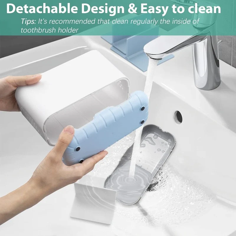 - Detachable & Easy to clean: This dishwasher safe toothbrush holder with drain is easy to be disassembled and cleaned. You can remove the toothbrush holder base first and then separate the dividers. Afterwards you can rinse the bathroom toothbrush holder with water or wipe by a duster cloth. It is recommended to pour water to wash regularly to avoid residues of stains.