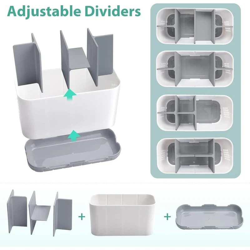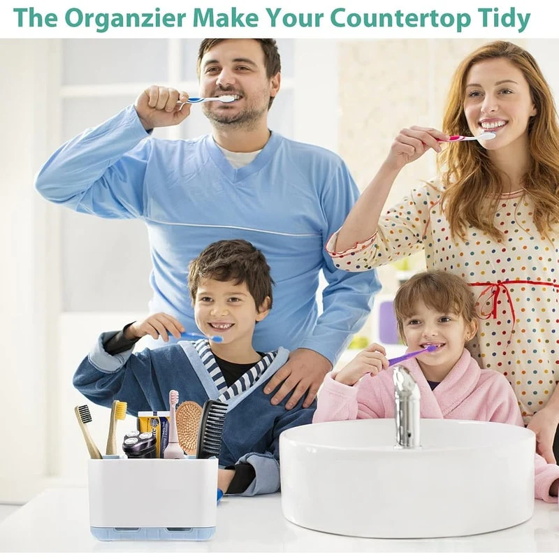- Multifunctional Storage: The electric toothbrushes, razor,comb,dental floss and makeup brush and more can be neatly placed inside this countertop to organizer and storage. Saves space and lets your messy counter of bathroom, venity, kitchen, desk ect. no longer in chaos.