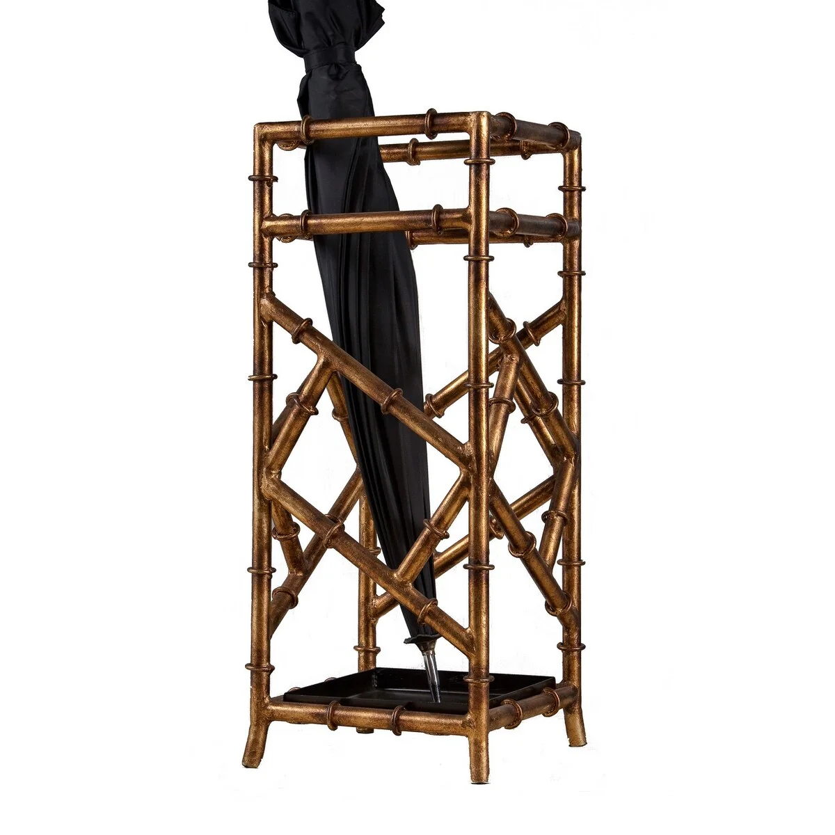 Antique Gold Iron Bamboo Umbrella Stand Square - 8x8x21