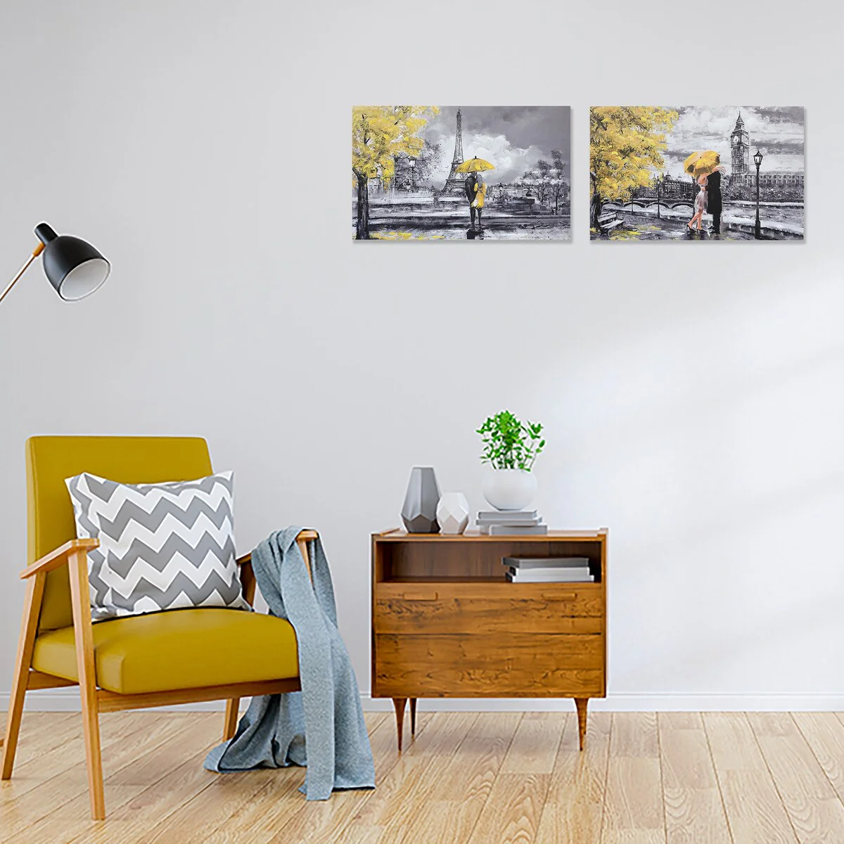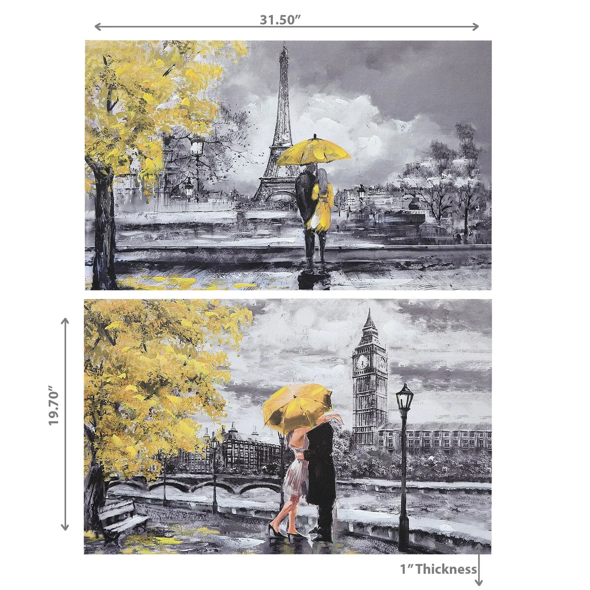 Bring an aesthetic vibe to your home decor by adding the elegant Hand Painted Canvas Wall Art (Dates With The Golden Umbrella) to your place. The canvas art boasts its fine craftsmanship and premium quality. It is ideal to be placed in your common room, drawing room, bedroom, guest room, or dining room. Moreover, the elegant home decor item is a perfect gifting decorative piece for your friends and family. This item comes in a set of 2.
