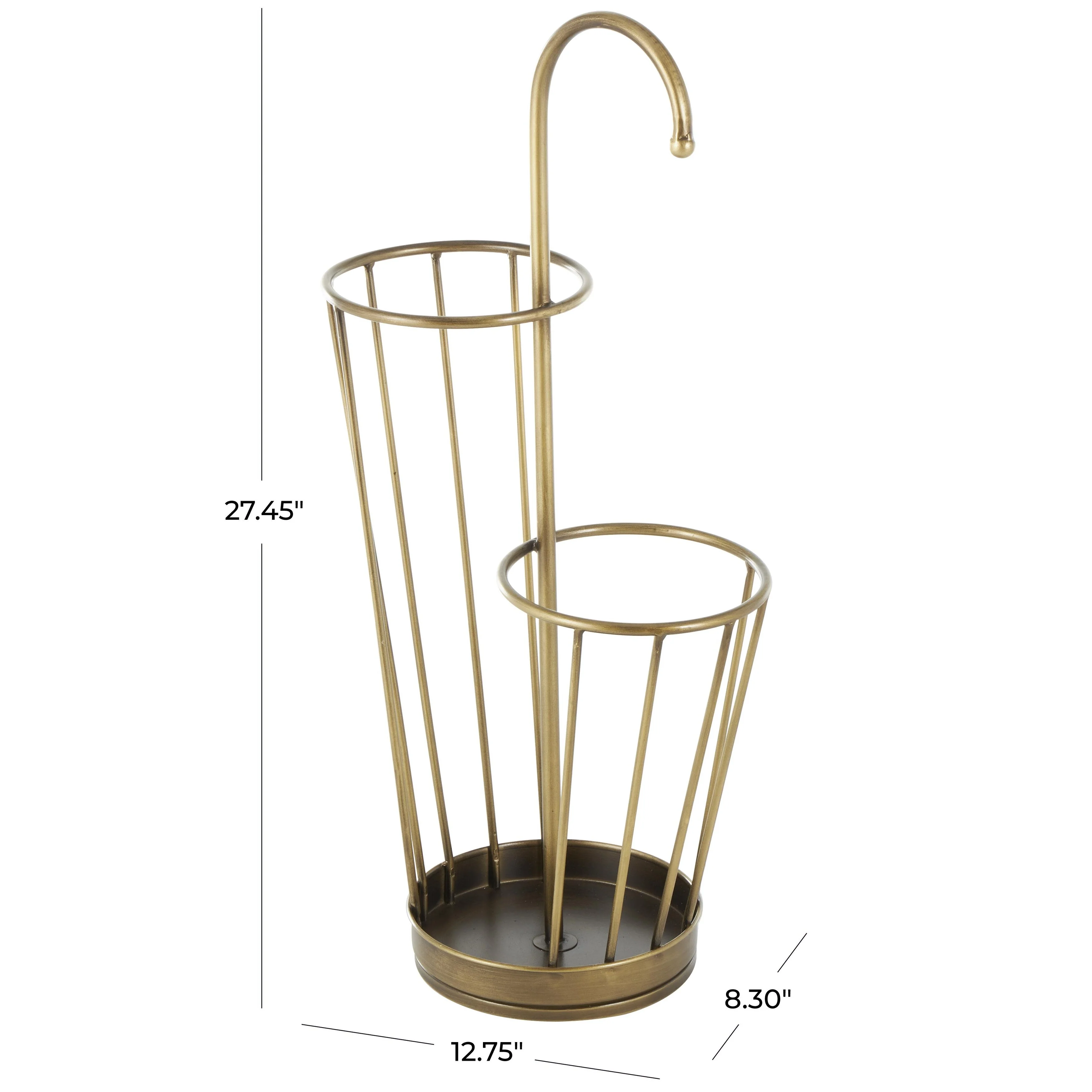 - The gold or black metal umbrella stand measures 12.75L x 8.3W x 27.45H inches, and weighs 3.775 lbs