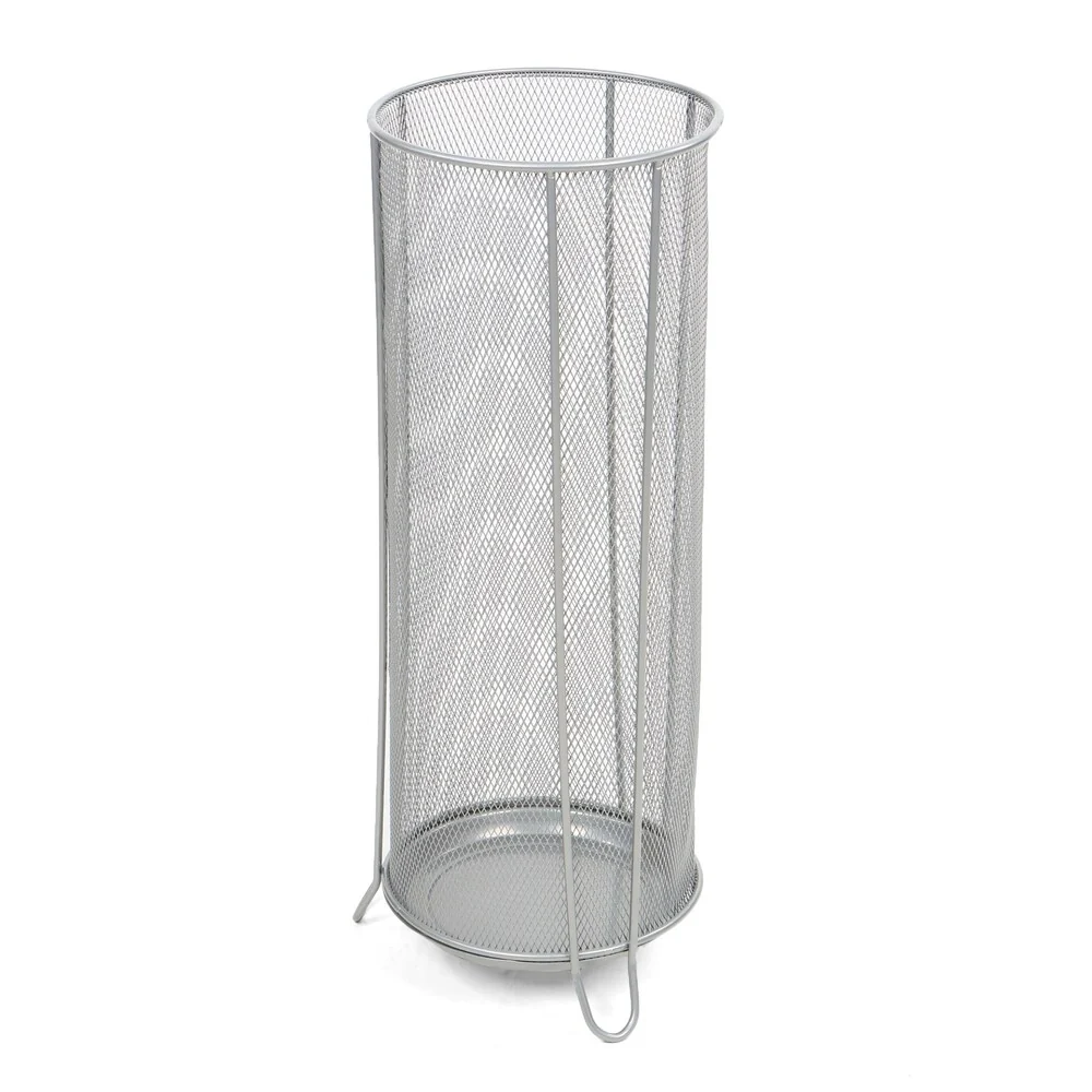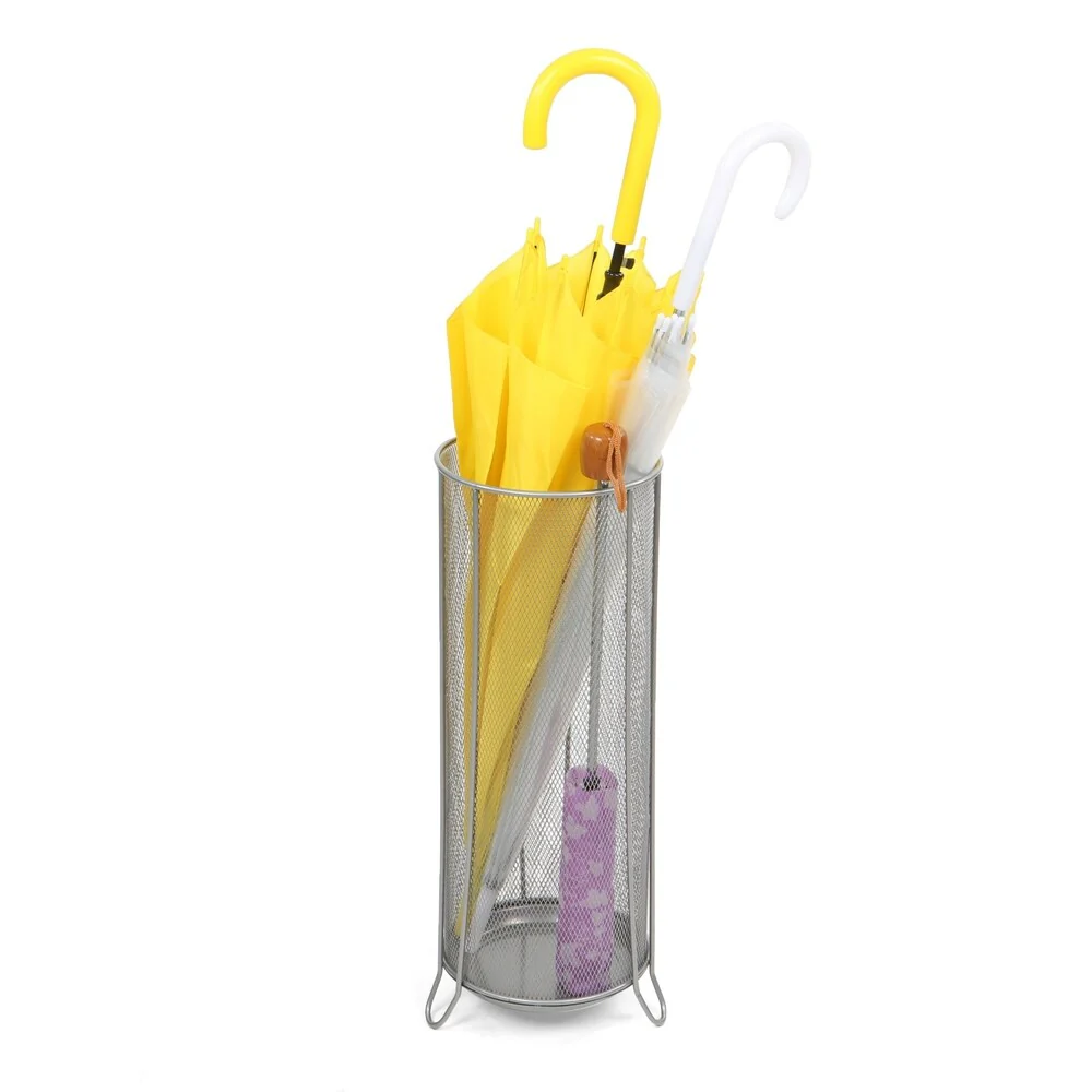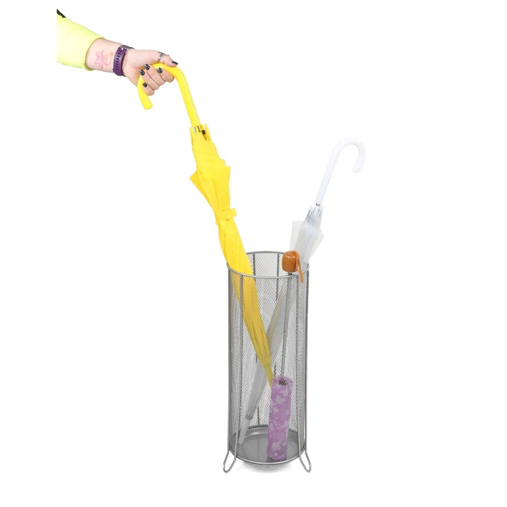 Instead of laying a towel down or constantly drying the floor, use this silver metal mesh umbrella holder to not only catch any remaining rain, but also as a great storage bin for all of your rain protection. The cylindrical stand is lightweight and can support multiple umbrellas while the slightly raised bottom does not touch and scratch up your floors. This stand is a great accent next to the front door of any house while also allowing for easy access on busy mornings. The metal mesh design also helps to circulate air and dry your umbrellas faster so this will be ready for the next day