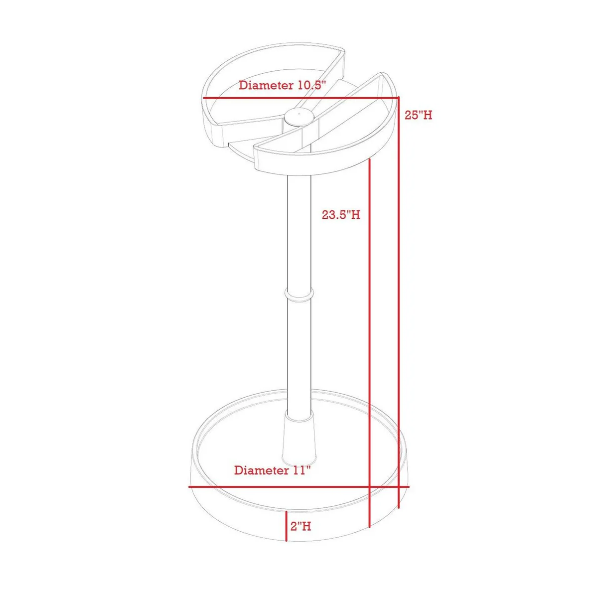 Telford Freestanding Umbrella Stand Rack, Black Plastic & Silver Metal. Tired of having a wet umbrella drip on the floor or table? No need to dry your floor anymore! This unique Telford Freestanding Umbrella Stand gives you and your guests a practical storage area ideal for storing umbrellas, canes, and walking sticks and will prevent your floors from getting wet by catching any water dripping from your umbrellas.