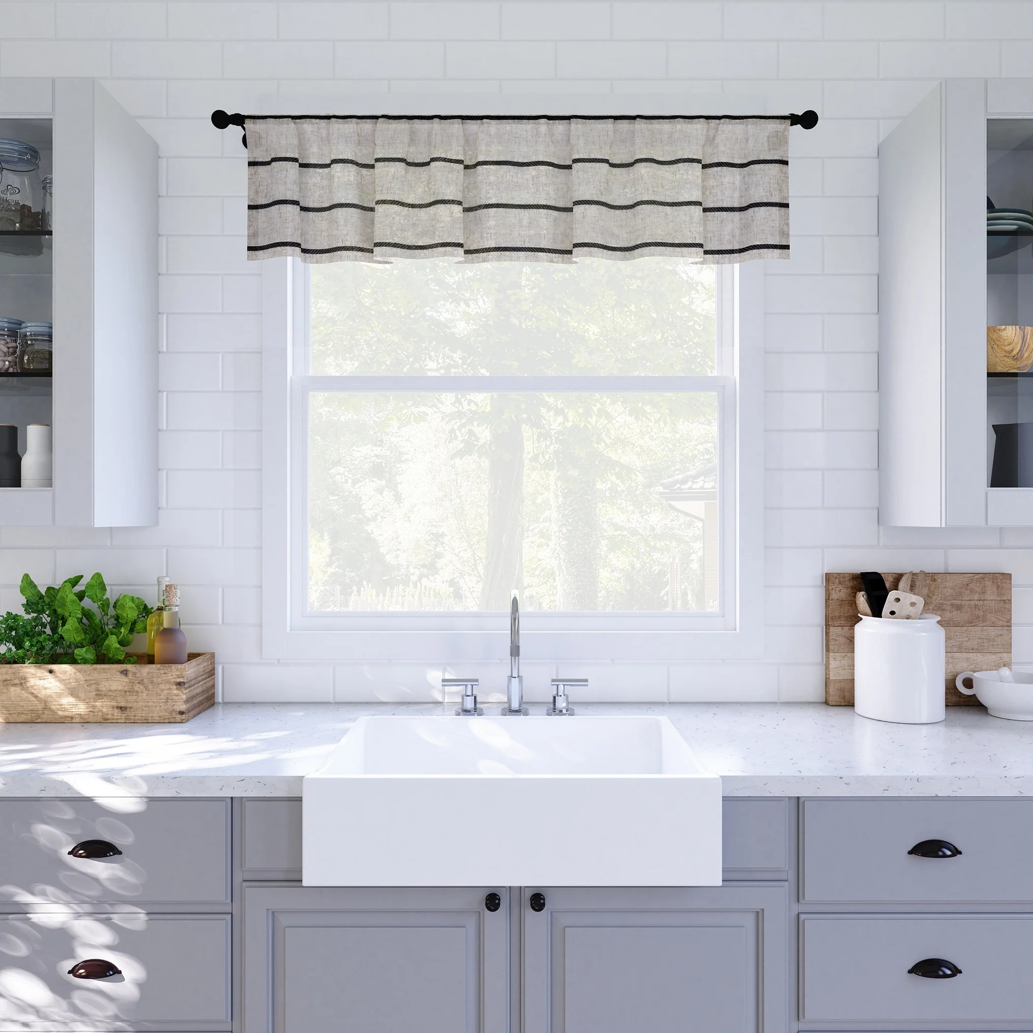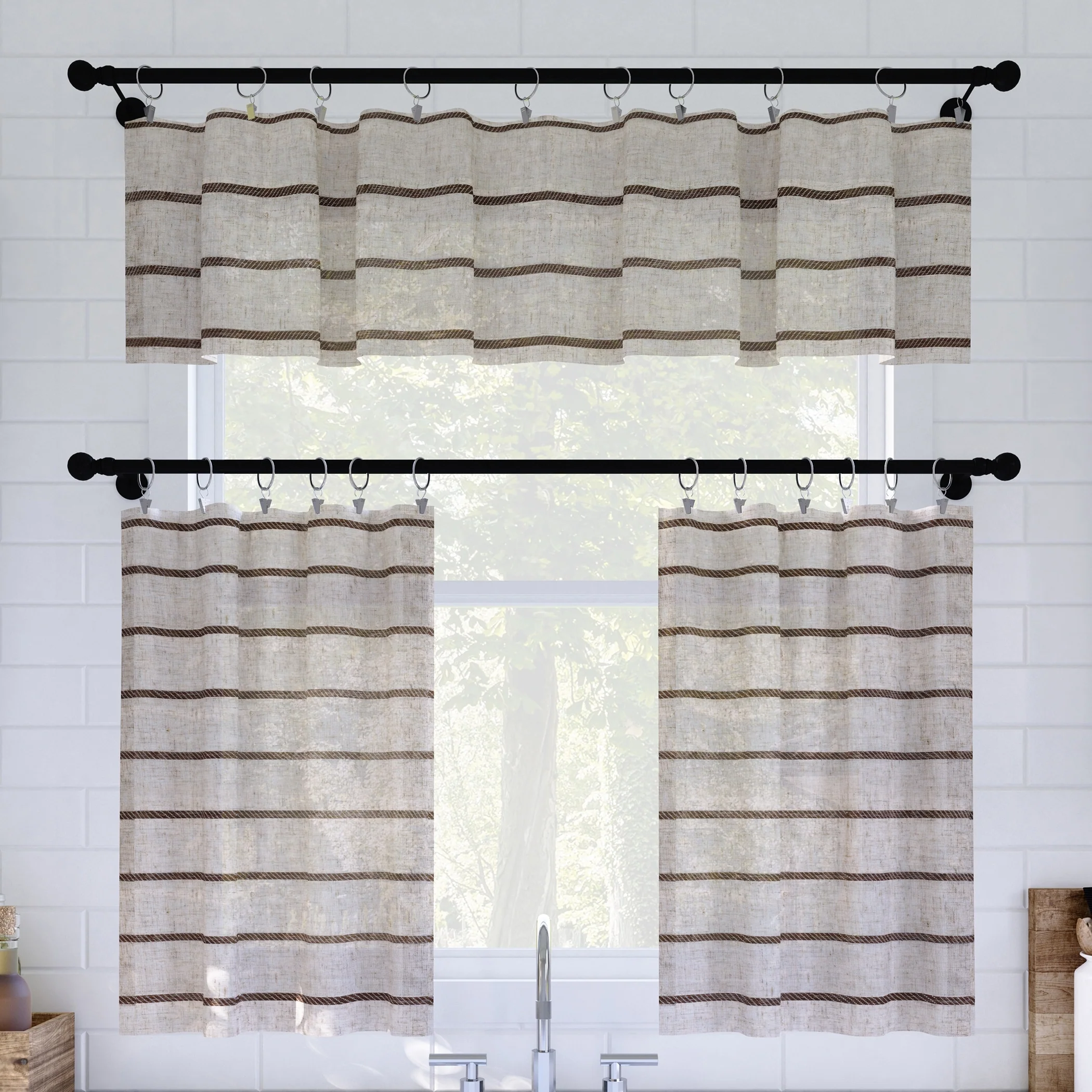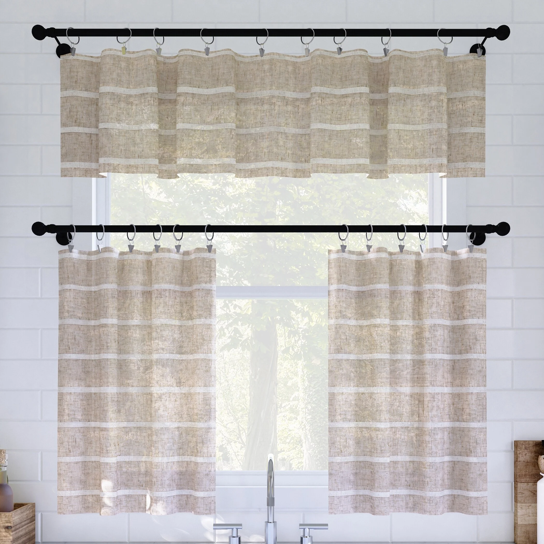 - Guided by the belief that wellness starts in the home, Clean Window? Twill Stripe Linen Blends are designed to minimize allergens, dust, hair, pet dander, and environmental irritants for a healthier room environment. The light and airy semi-sheer linen blend fabric gently filters light while enhancing privacy. Perfect for kitchens, bathrooms, or small windows, rings are not included.