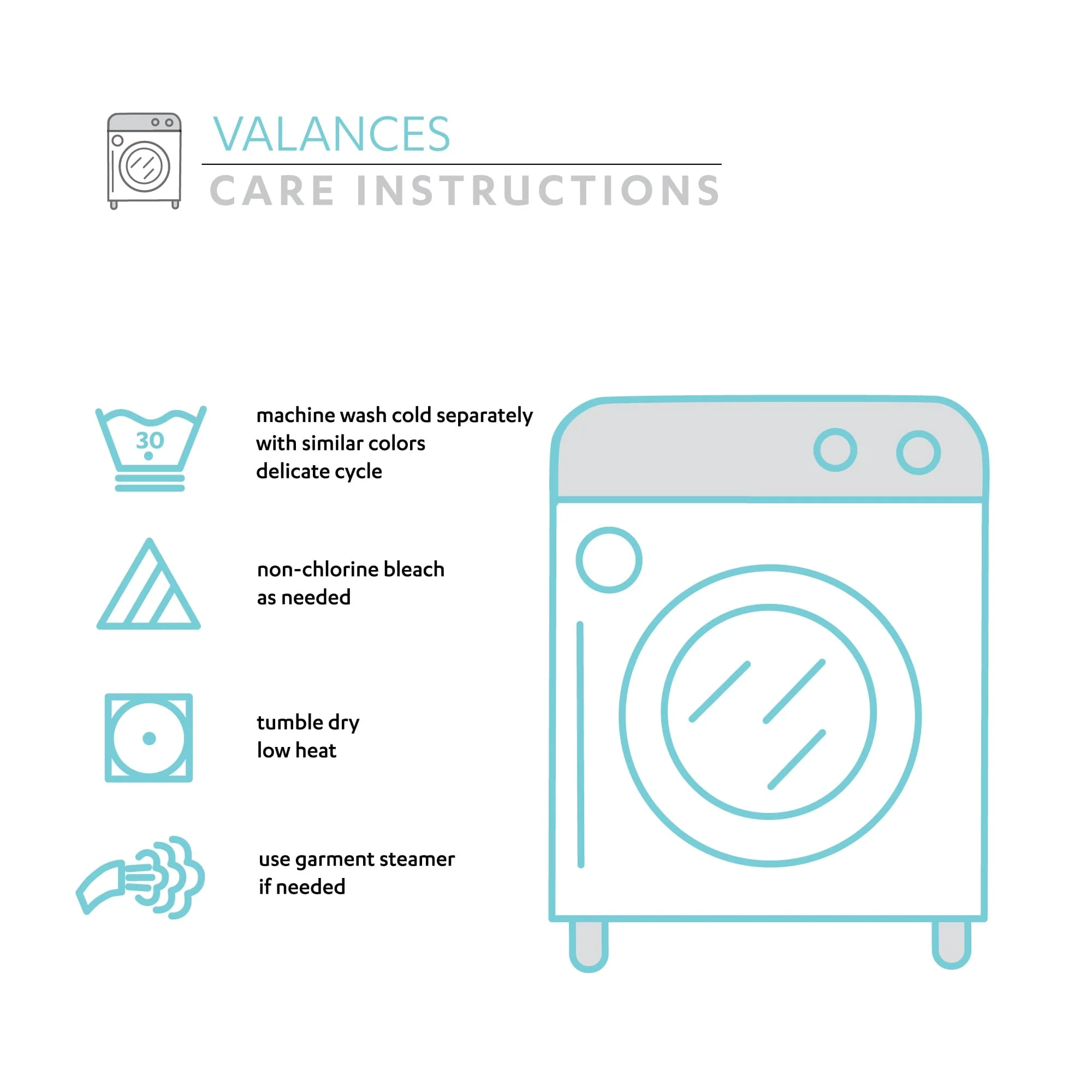 Spruce up the look of your farmhouse style home with this classic valance. The button detailing adds an adorable embellishment that gives this piece a unique look. This valance would be great in a kitchen or nook area to provide plenty of light to your space. It measures 52 inches across and hangs 18 inches down with a 2 inch ruffle detail peaking from the top. Easily hang this valance by sliding a curtain rod through the 3 inch rod pocket. Please refer to label for care instructions.
