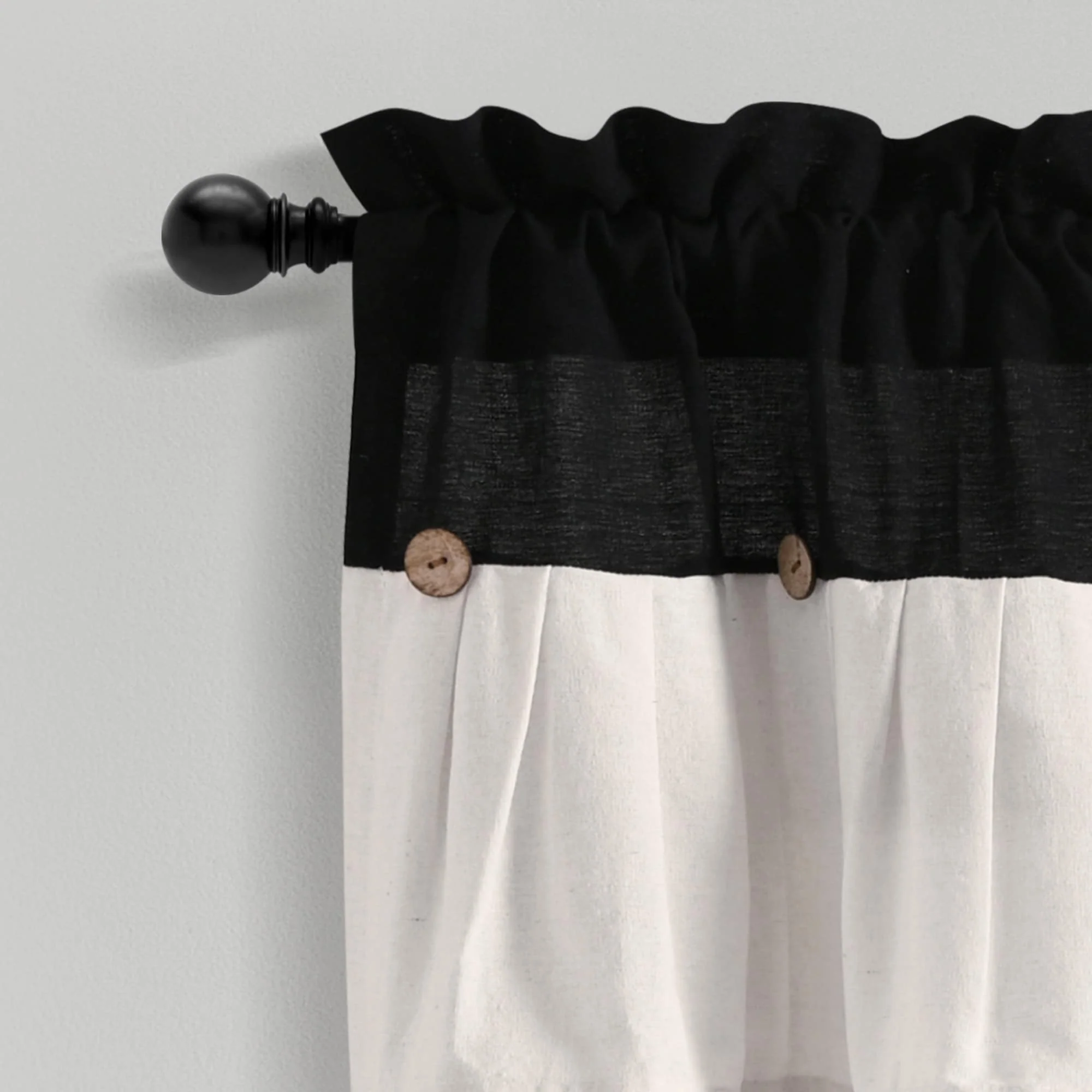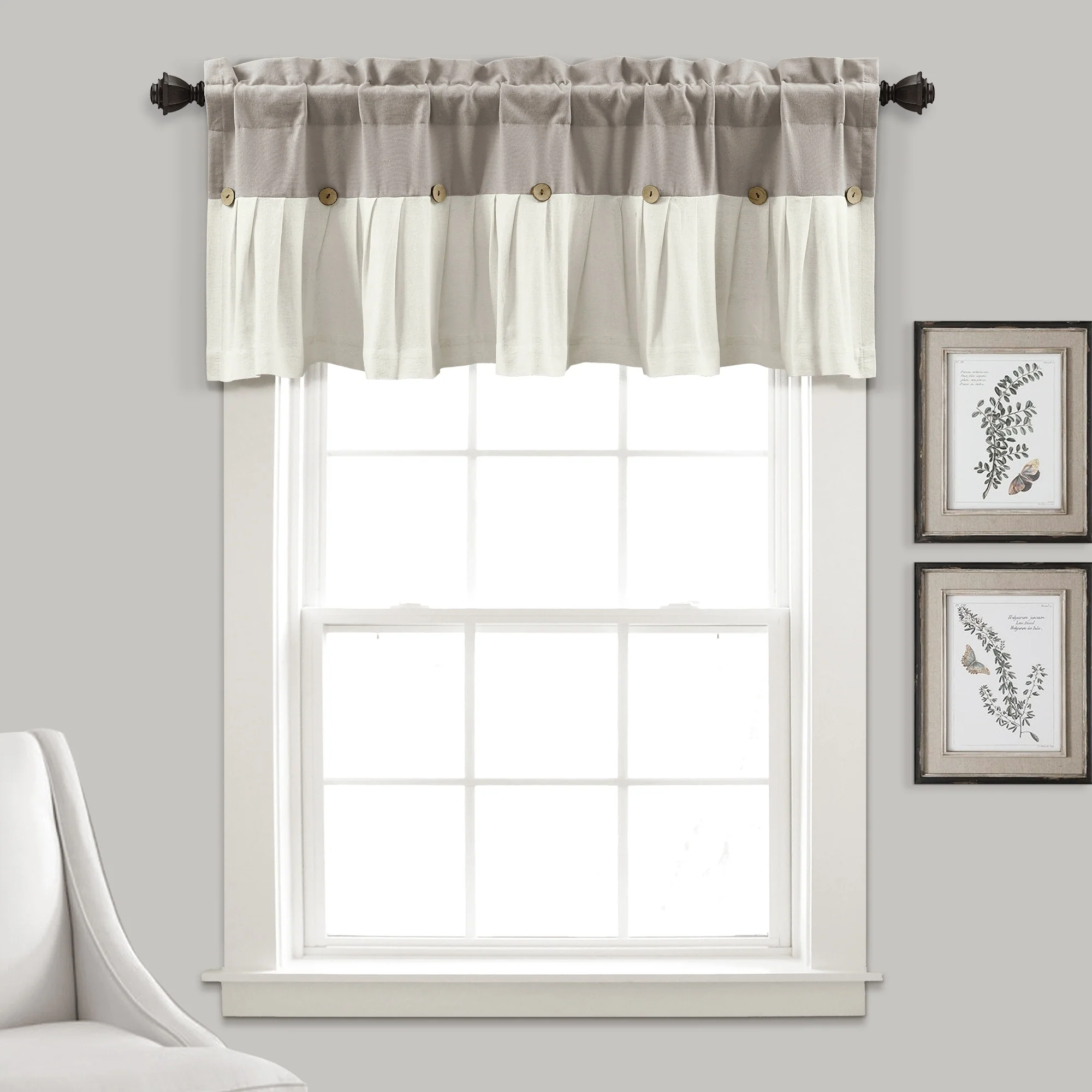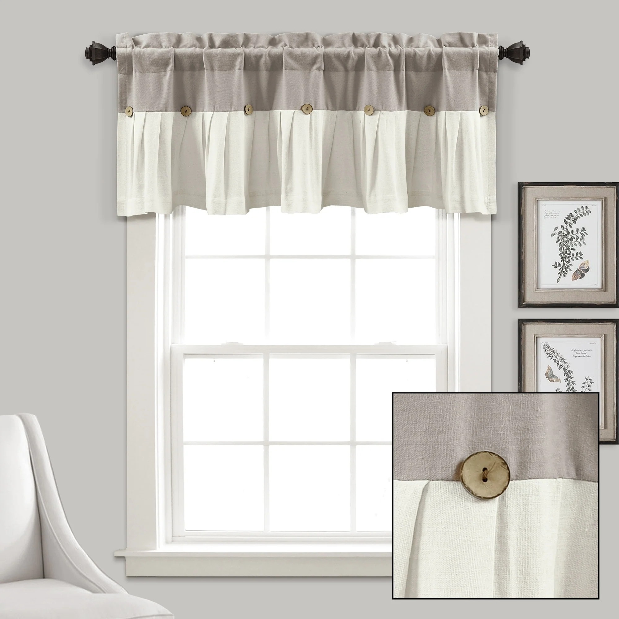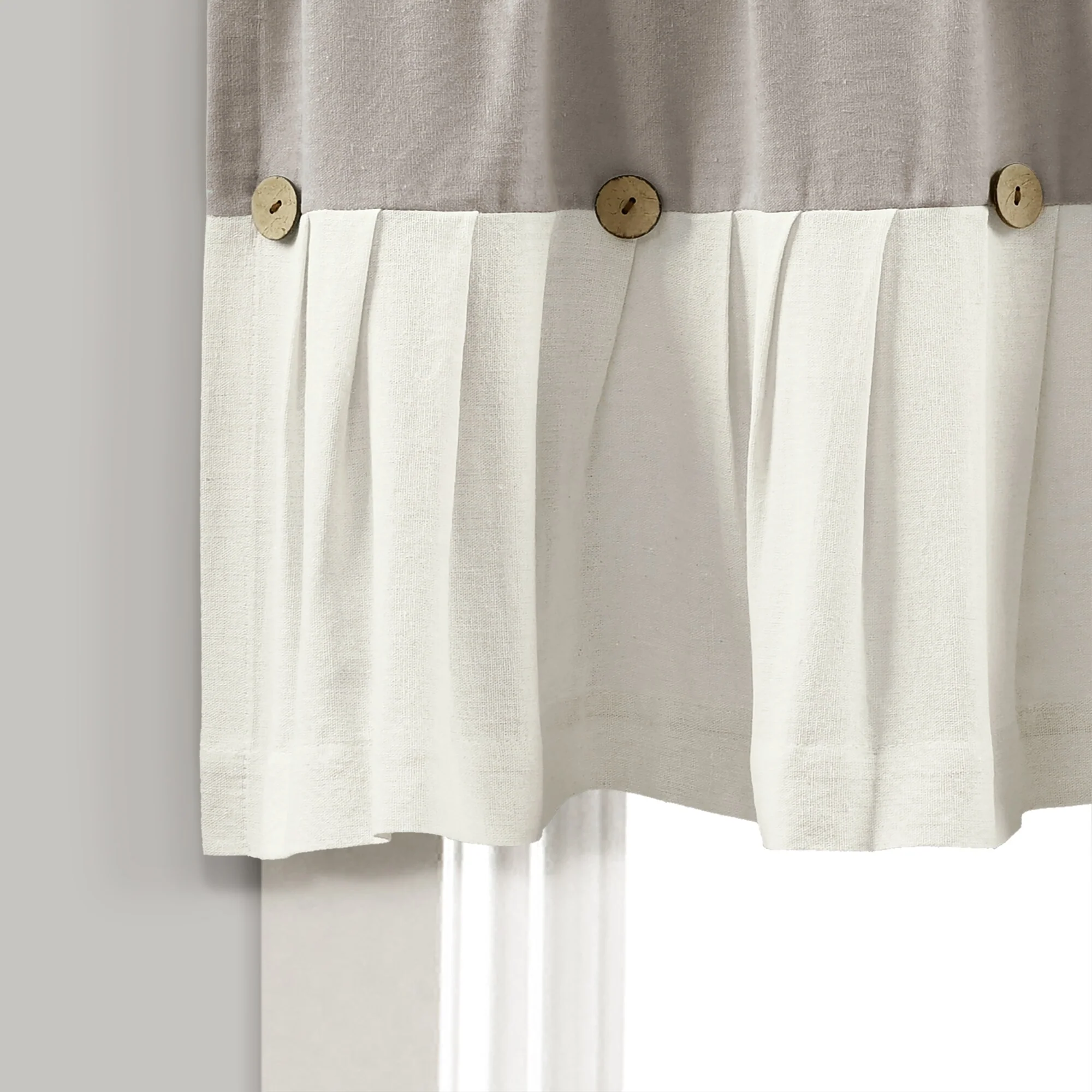 Add the elegance of linen to your home with this farmhouse chic valance. Color blocking is always in style. We love the details of pleats and buttons. Slight weave variations are authentic to this natural fiber blend and create a one-of-a-kind look.