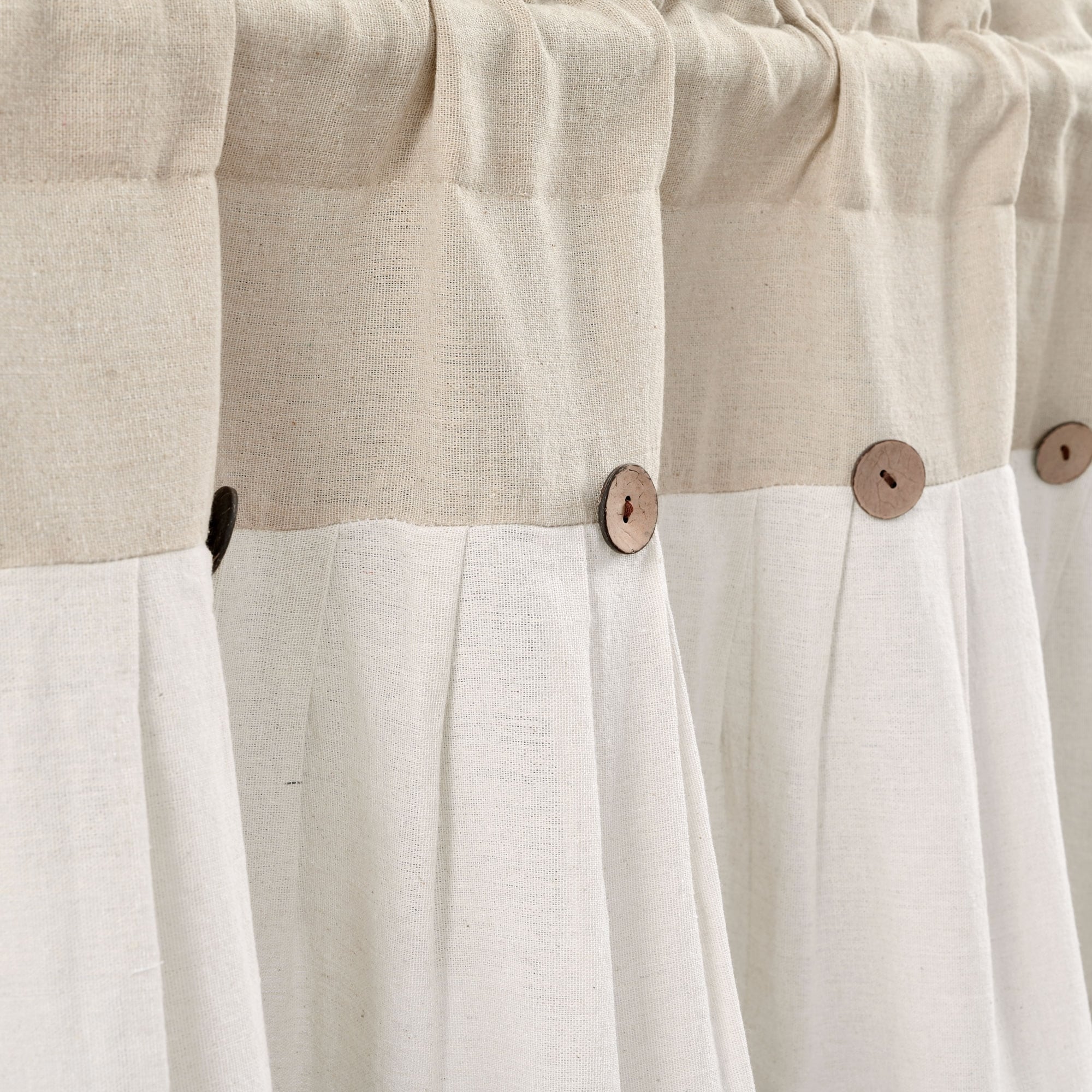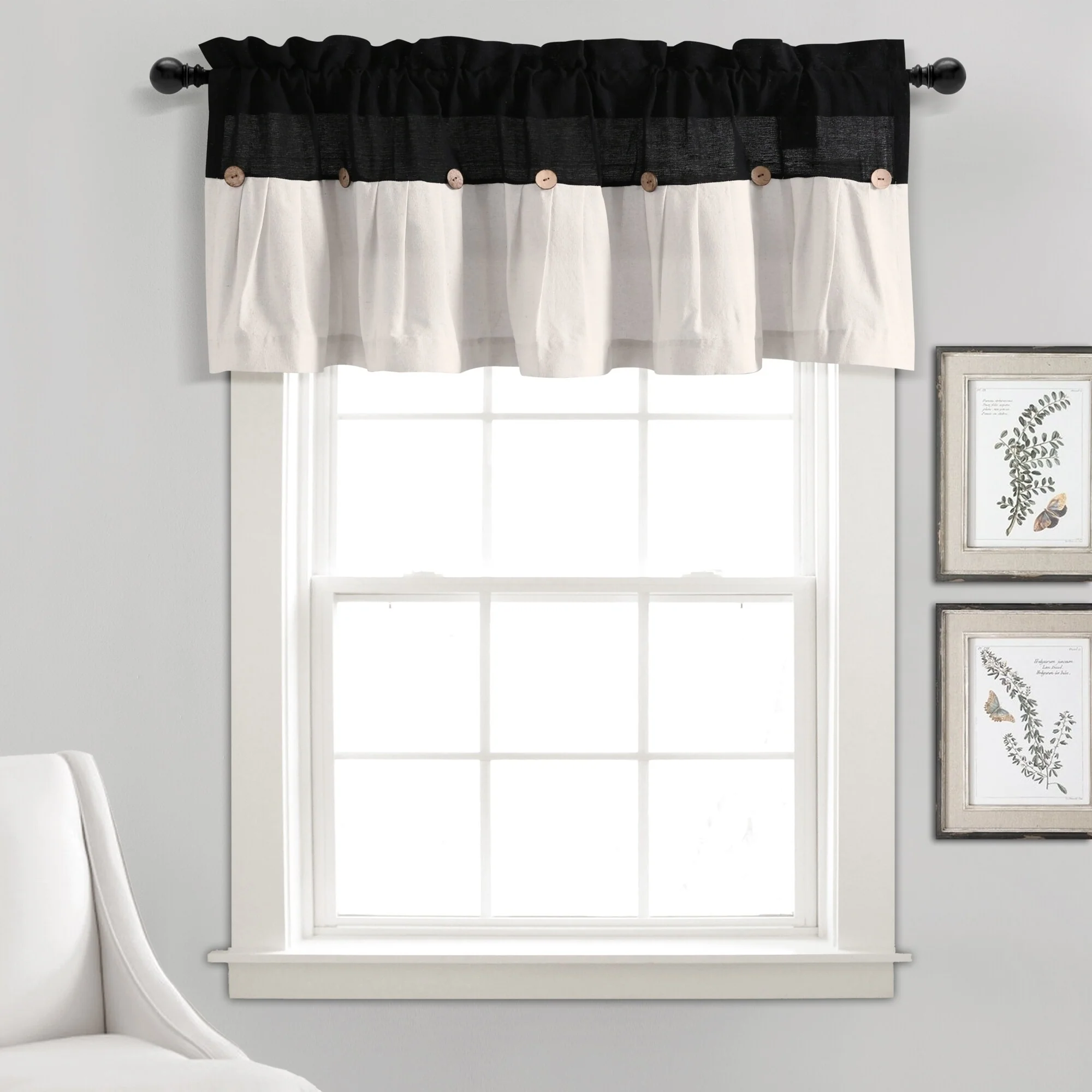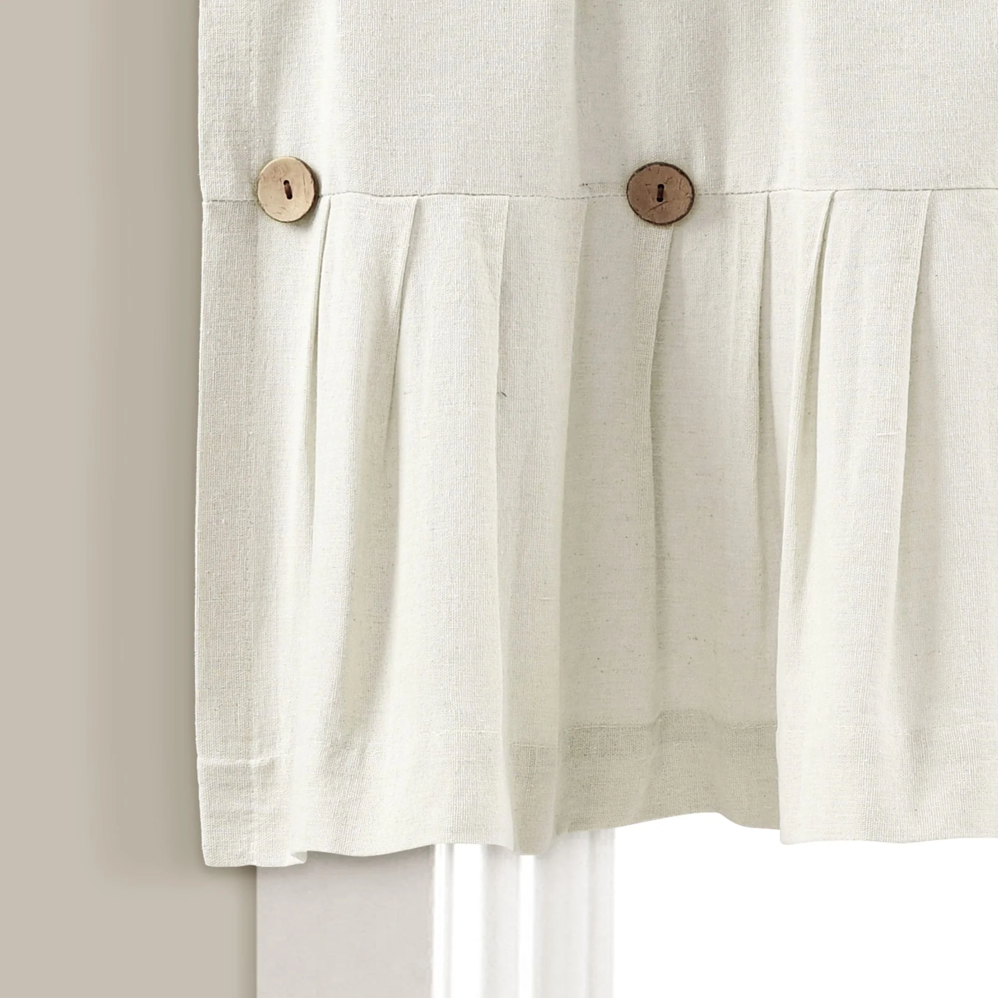 Add the elegance of linen to your home with this farmhouse chic valance. Color blocking is always in style. We love the details of pleats and buttons. Slight weave variations are authentic to this natural fiber blend and create a one-of-a-kind look.