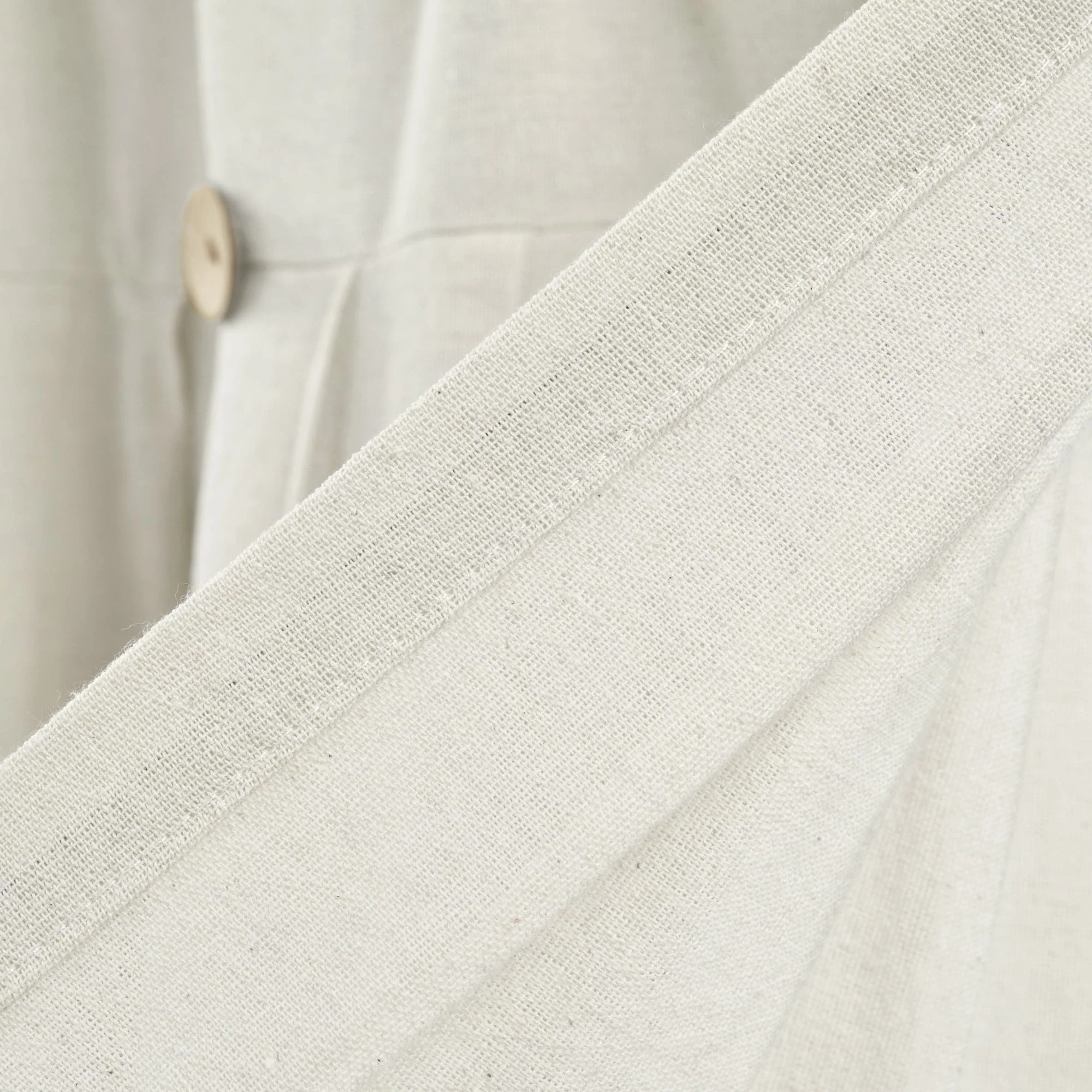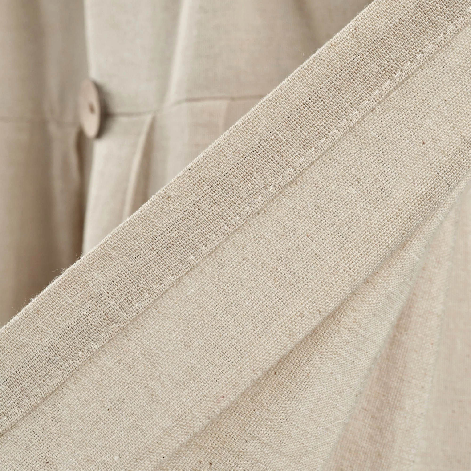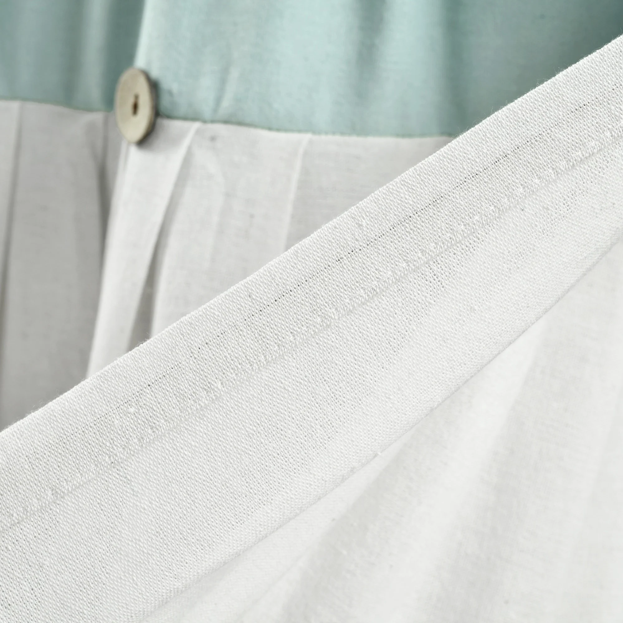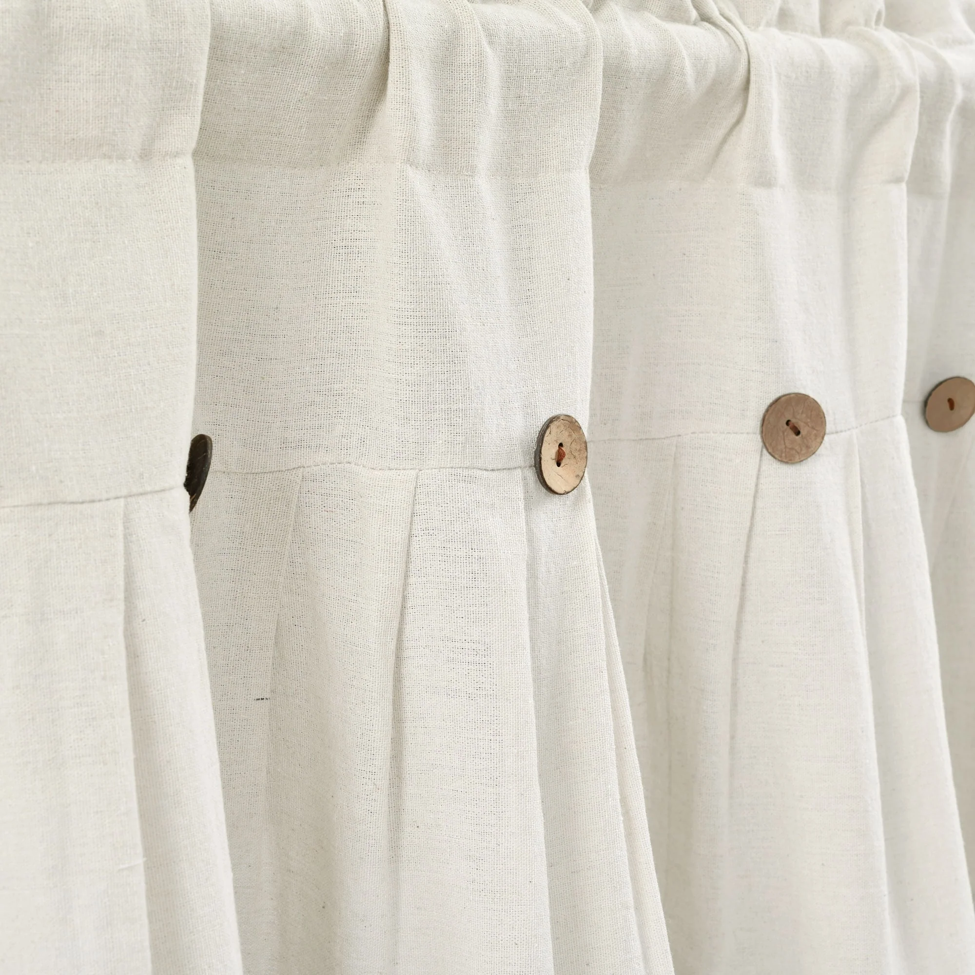 Add the elegance of linen to your home with this farmhouse chic valance. Color blocking is always in style. We love the details of pleats and buttons. Slight weave variations are authentic to this natural fiber blend and create a one-of-a-kind look.