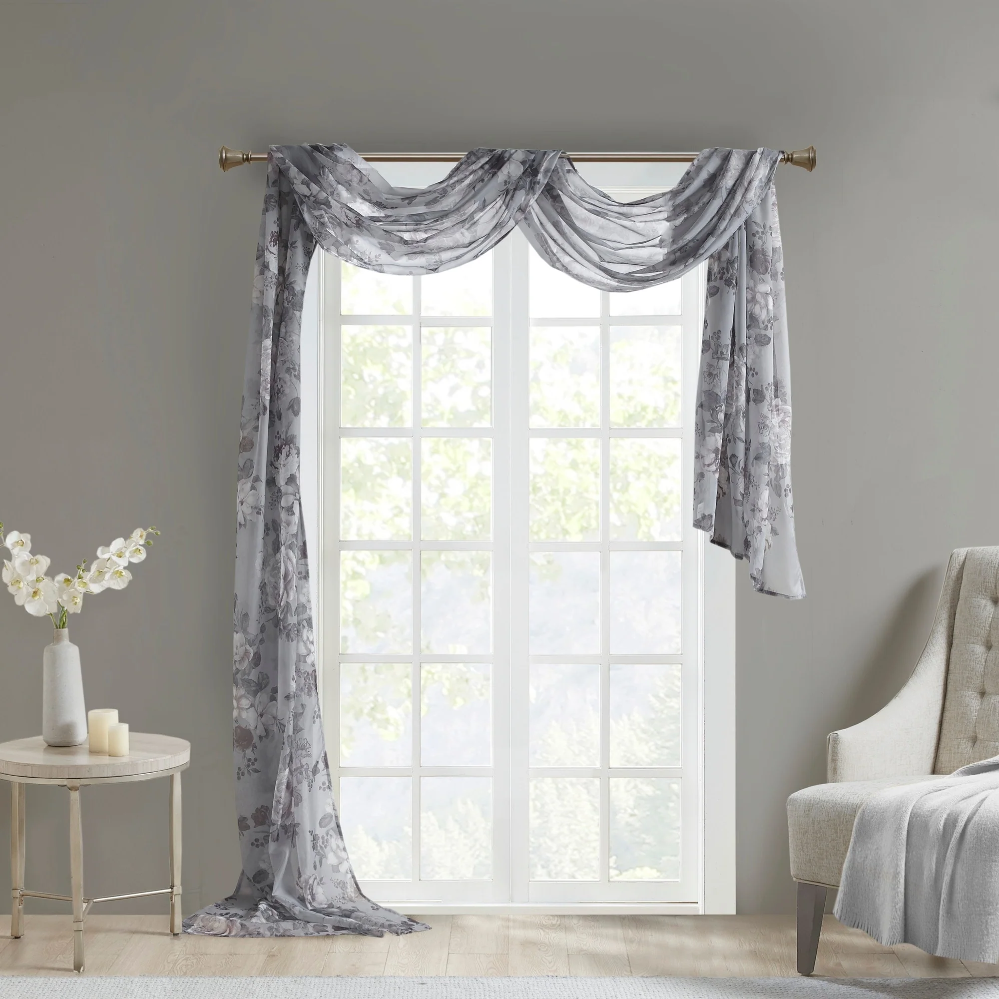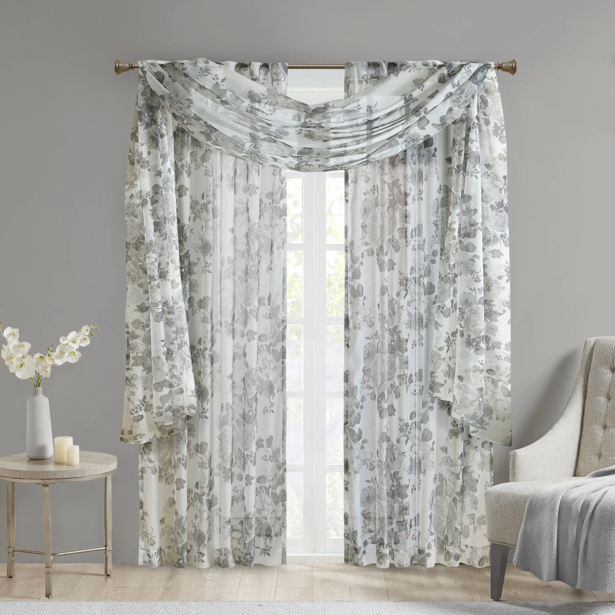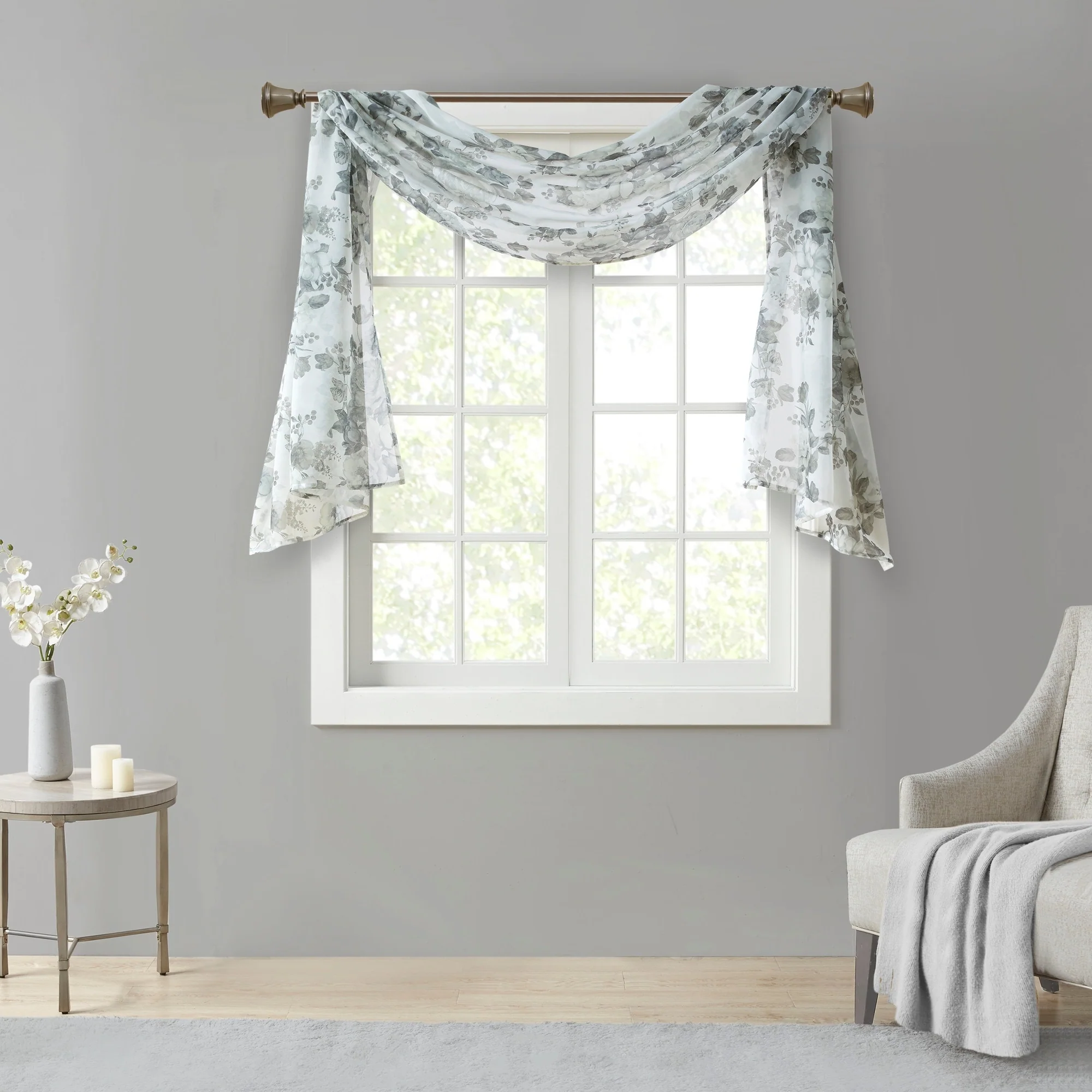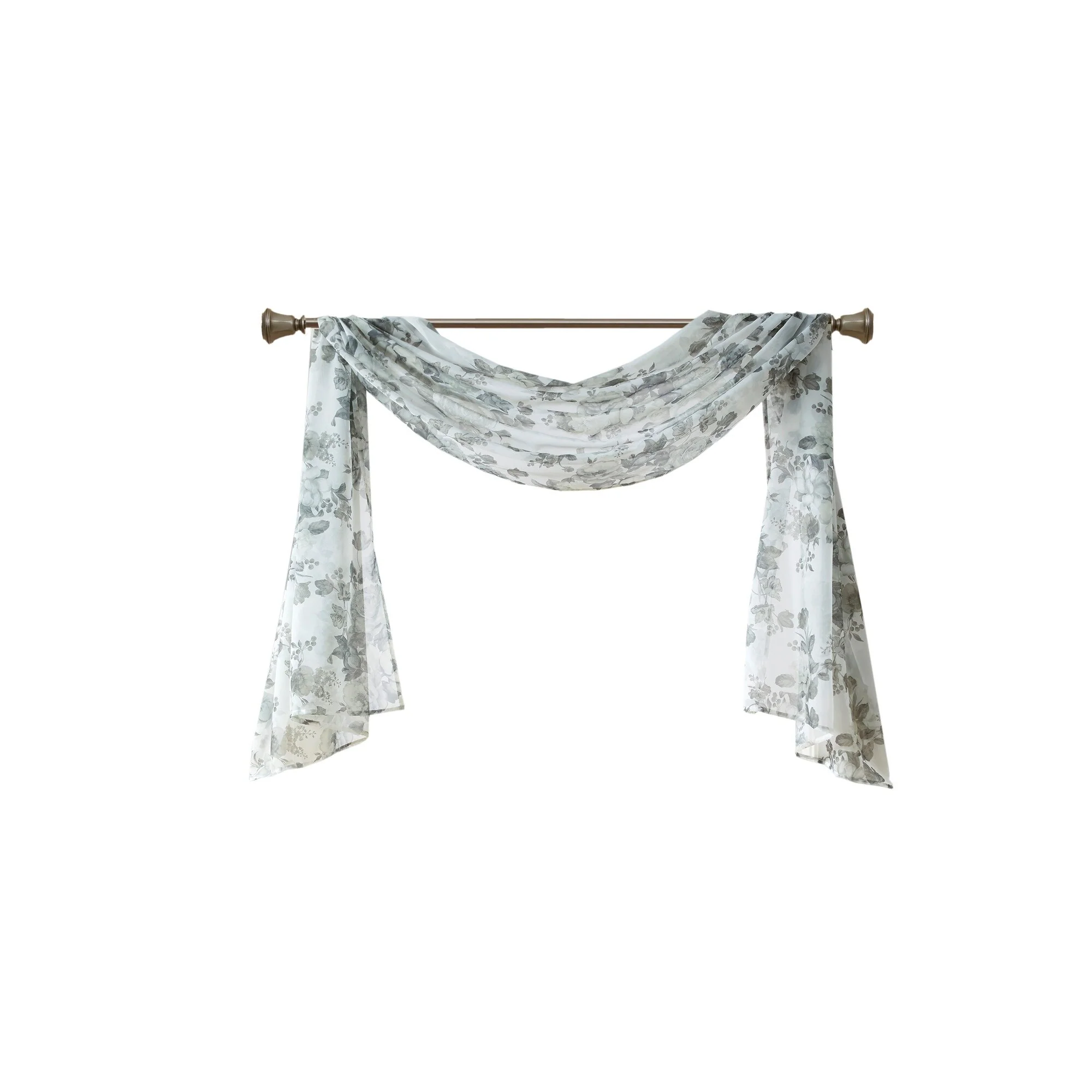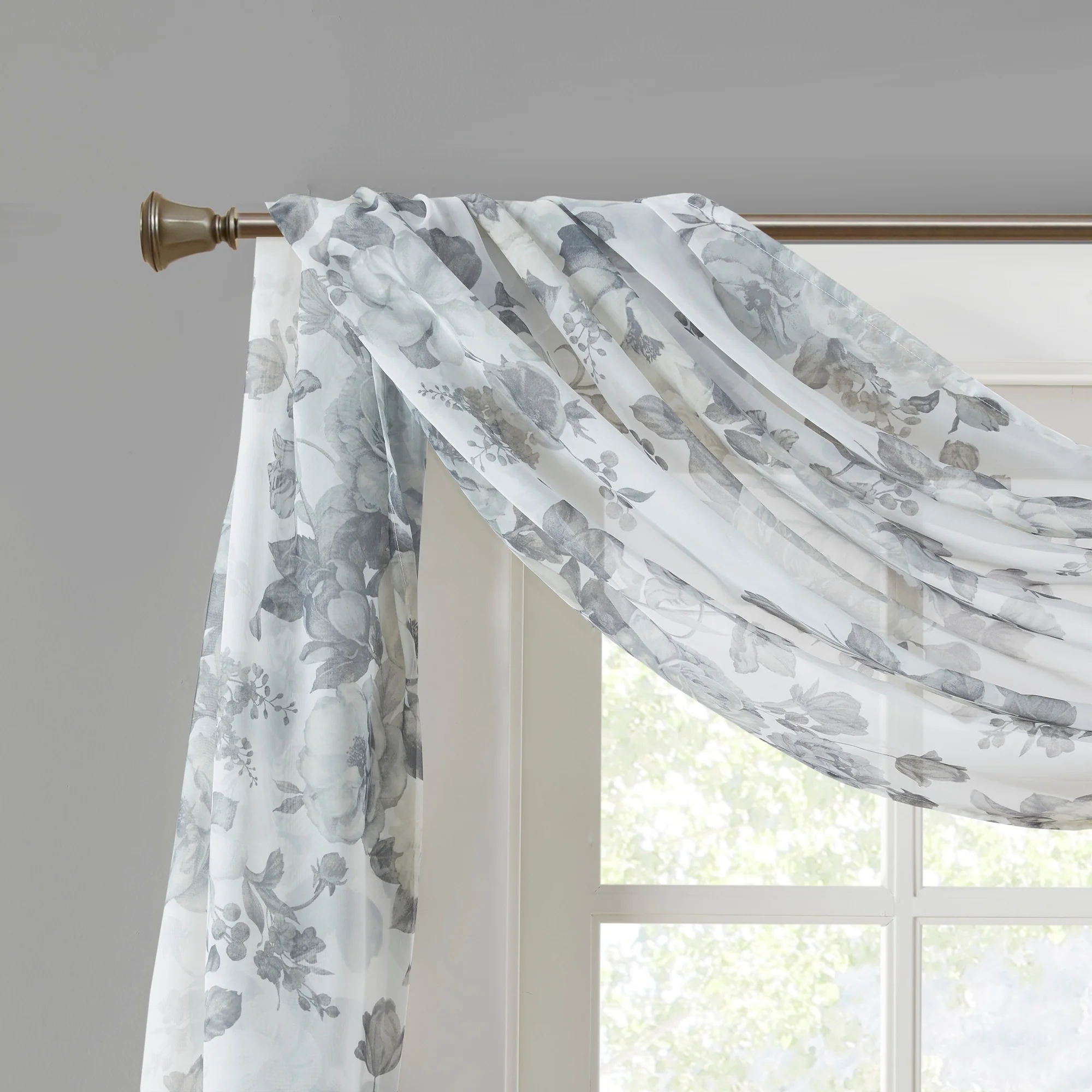 The Madison Park Abelia Printed Floral Voile Sheer Scarf adds a soft and romantic touch to your home decor. This voile sheer scarf features a beautiful soft tone printed floral on a neutral ground for a rich and stylish contrast, while the lightweight fabric adds a delicate and airy touch while it's also OEKO-TEX certified. This sheer scarf included four tabs with button closures that provide an easy way to drape it across your window curtain rod, for an elegant finishing touch.