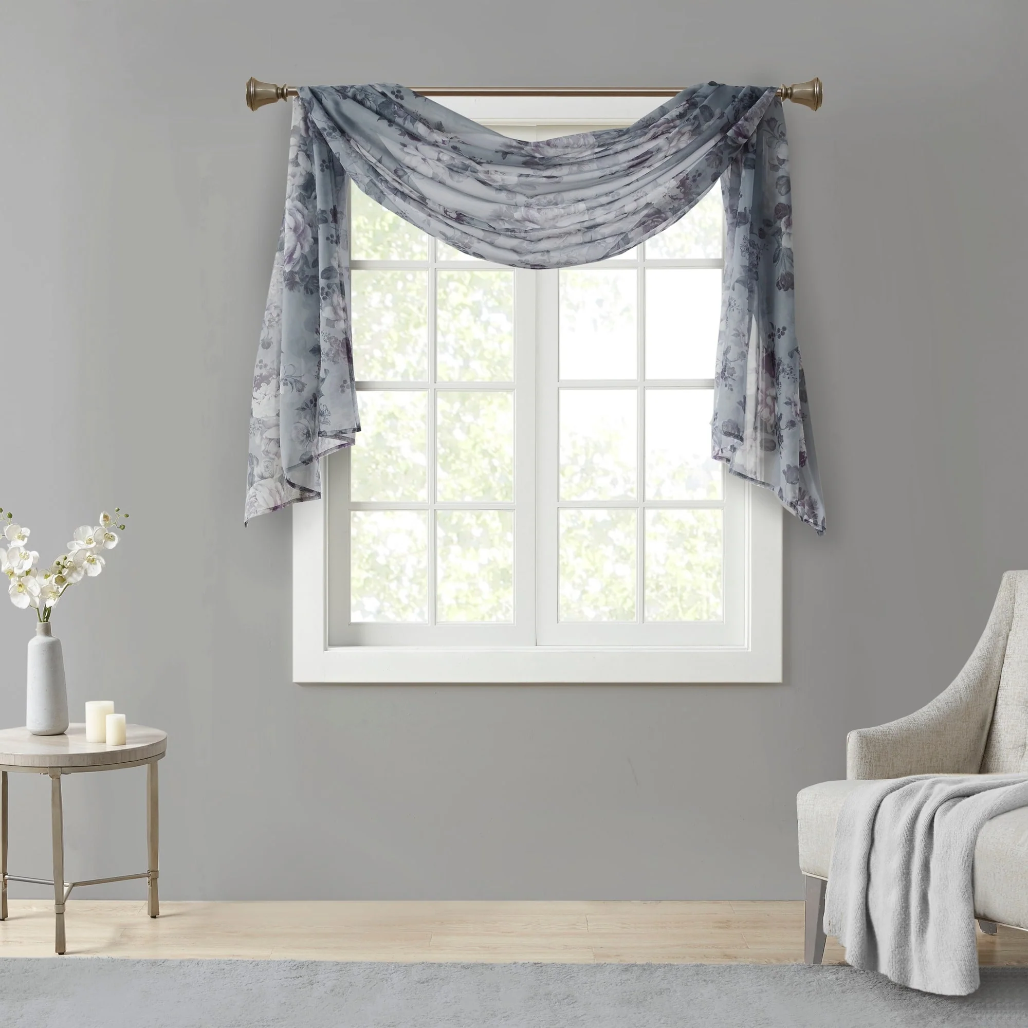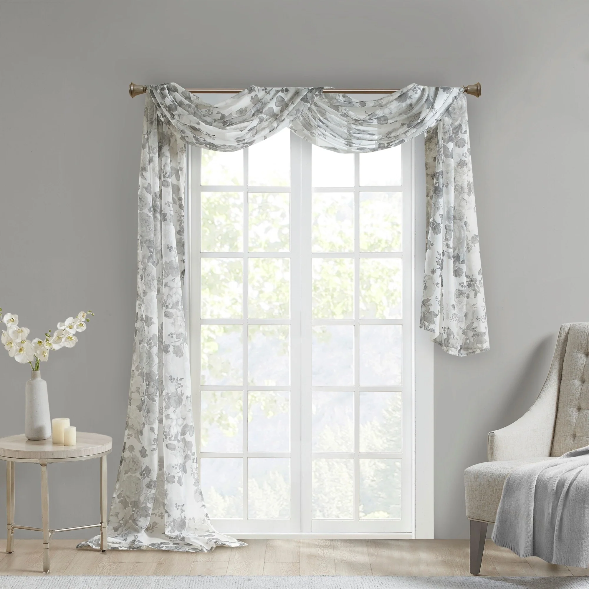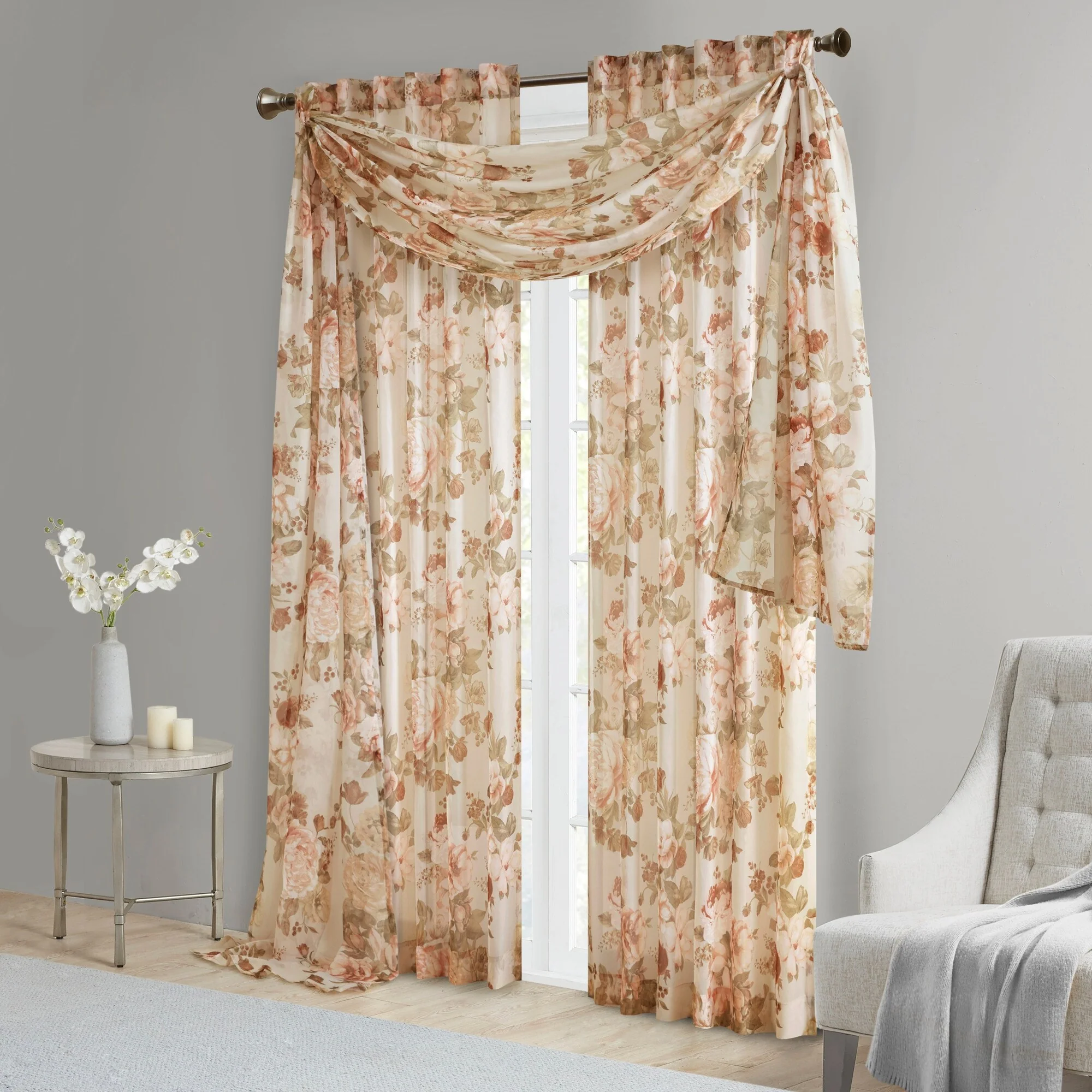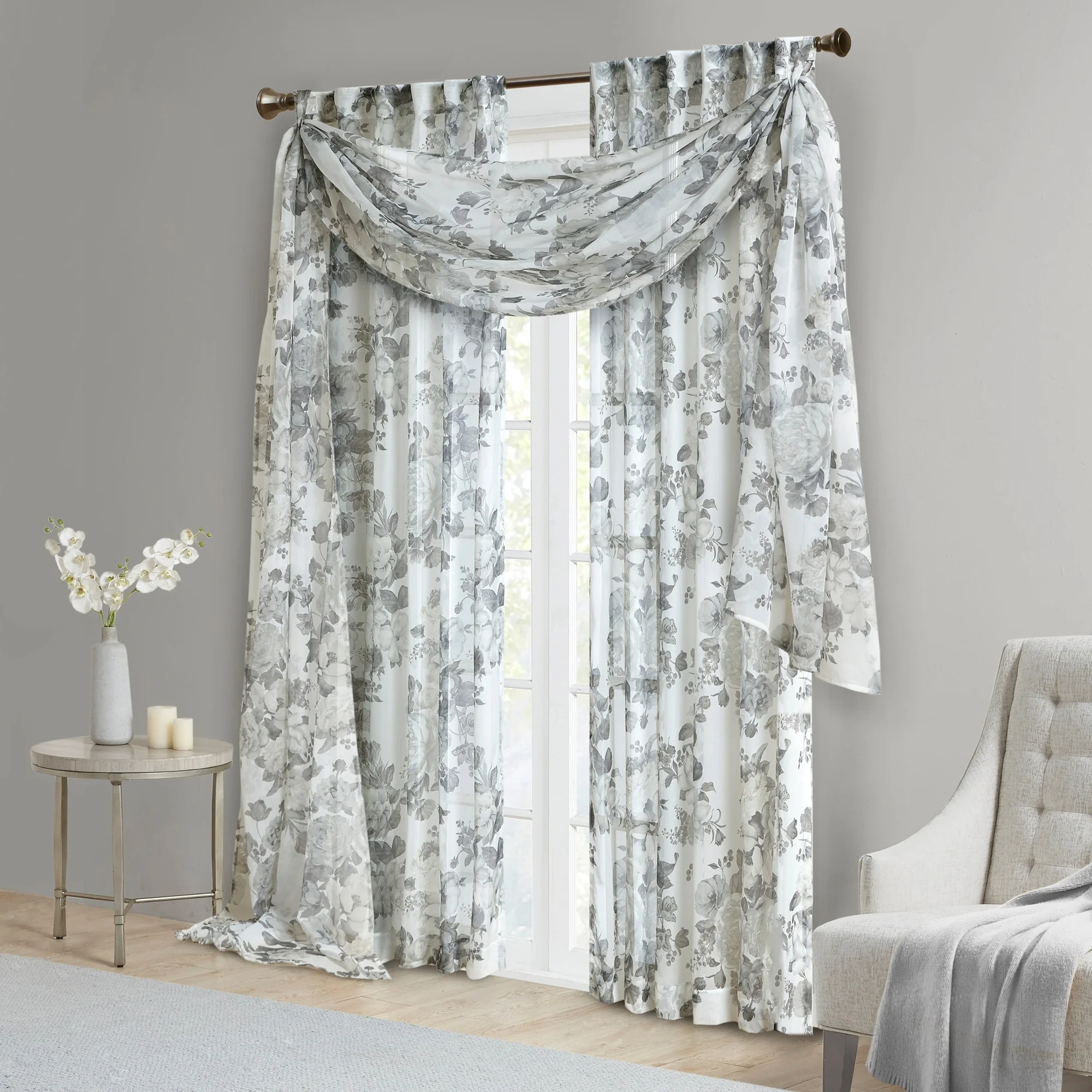 The Madison Park Abelia Printed Floral Voile Sheer Scarf adds a soft and romantic touch to your home decor. This voile sheer scarf features a beautiful soft tone printed floral on a neutral ground for a rich and stylish contrast, while the lightweight fabric adds a delicate and airy touch while it's also OEKO-TEX certified. This sheer scarf included four tabs with button closures that provide an easy way to drape it across your window curtain rod, for an elegant finishing touch.