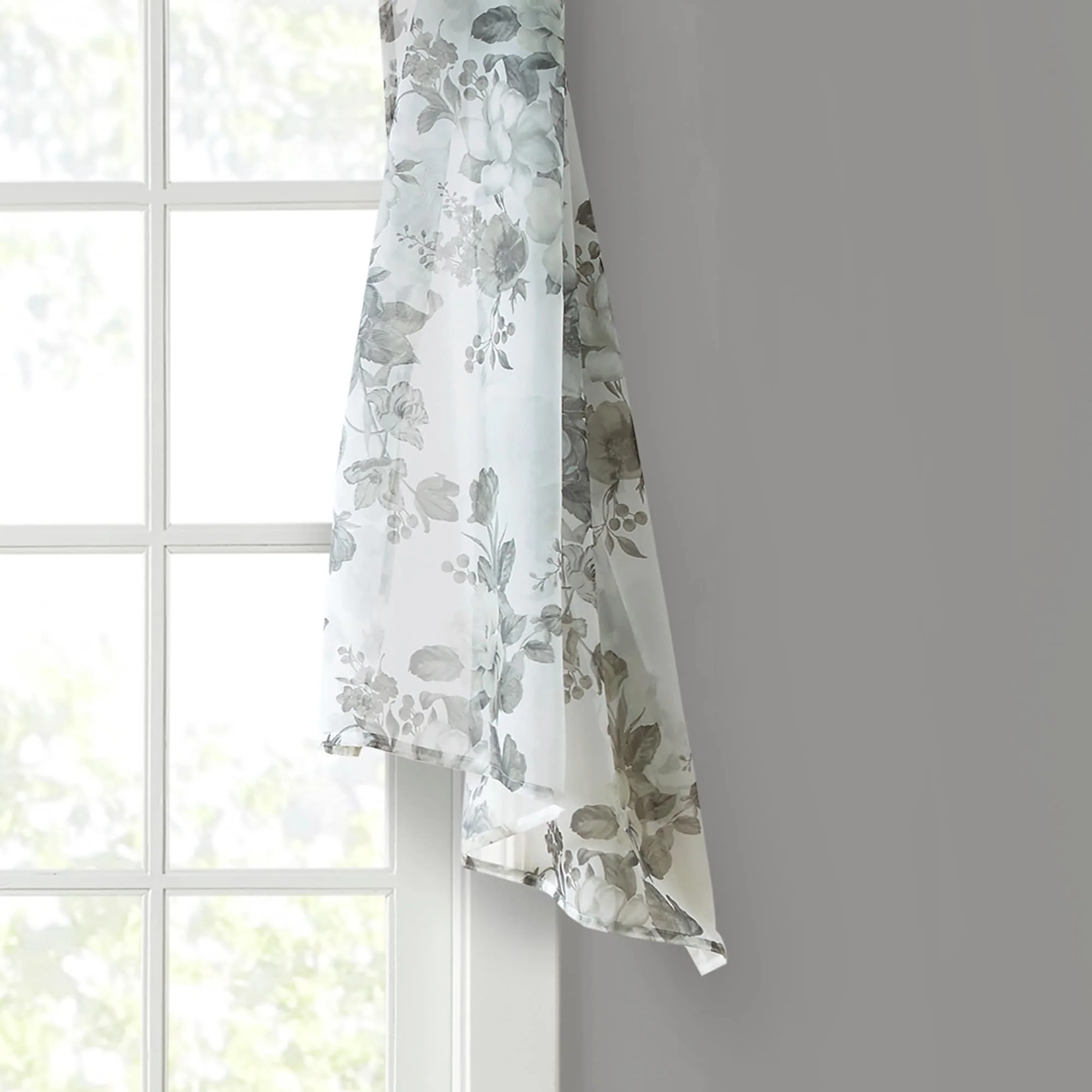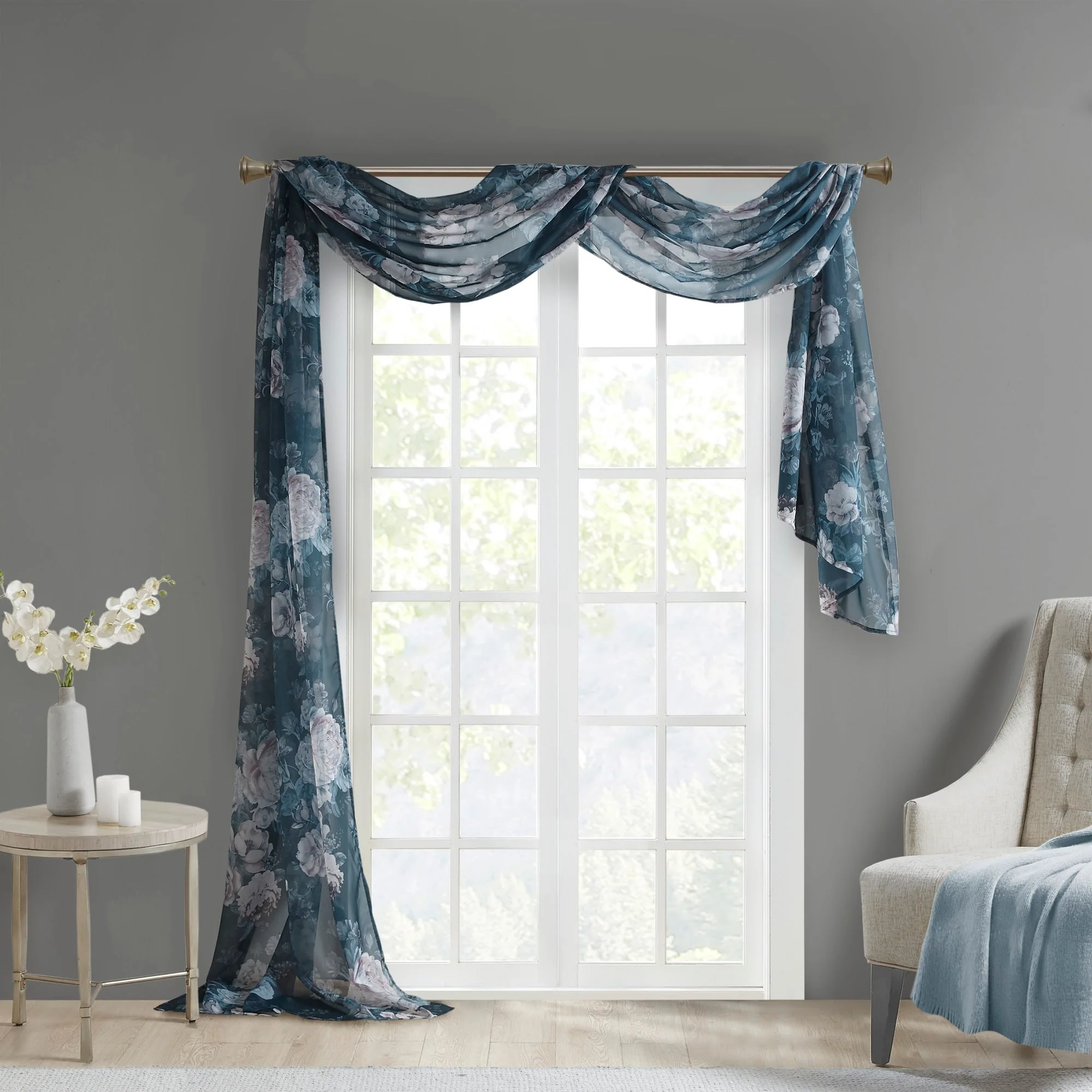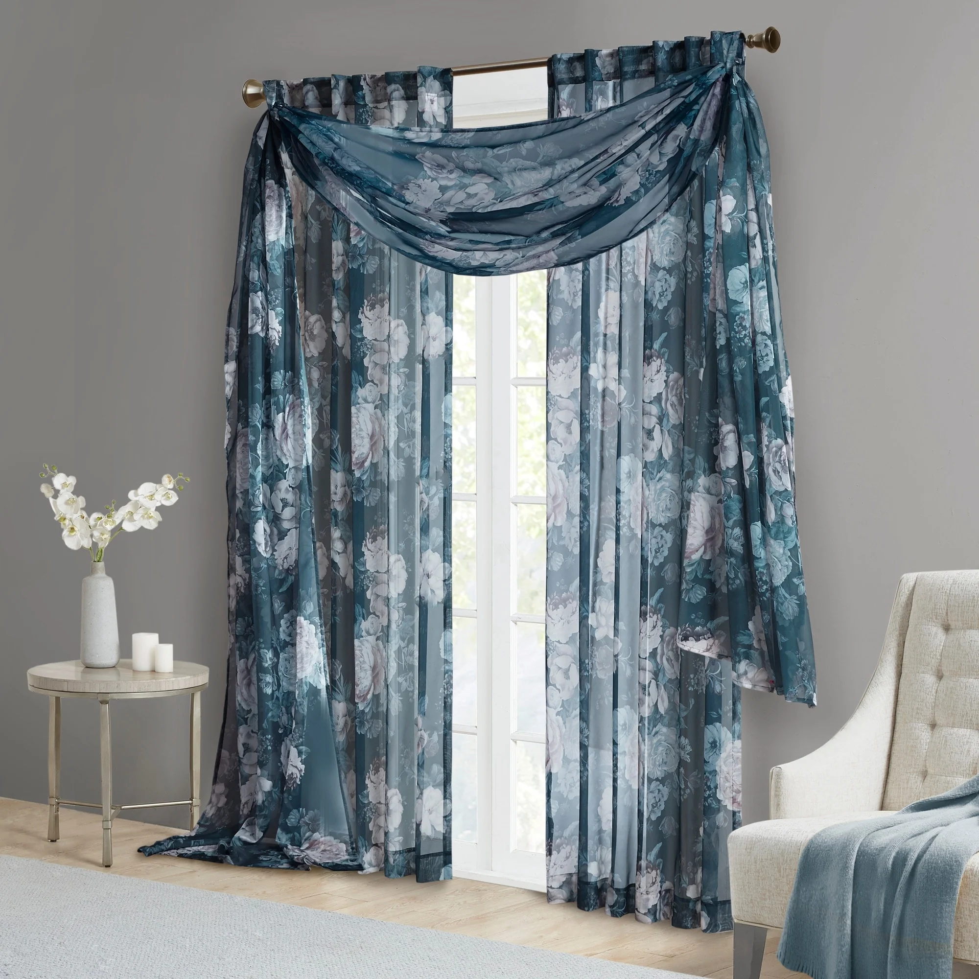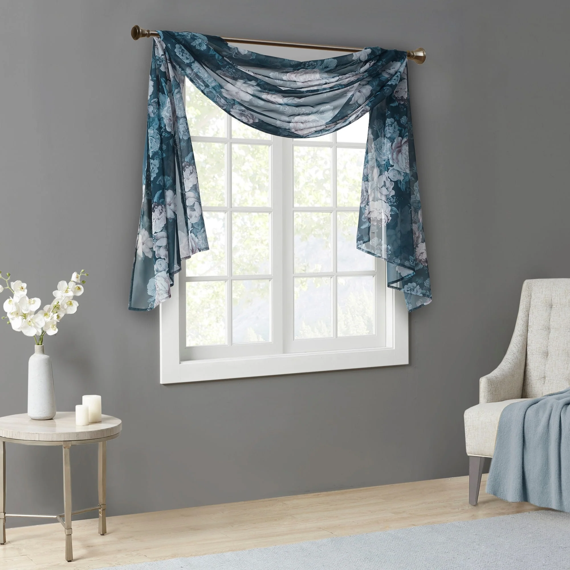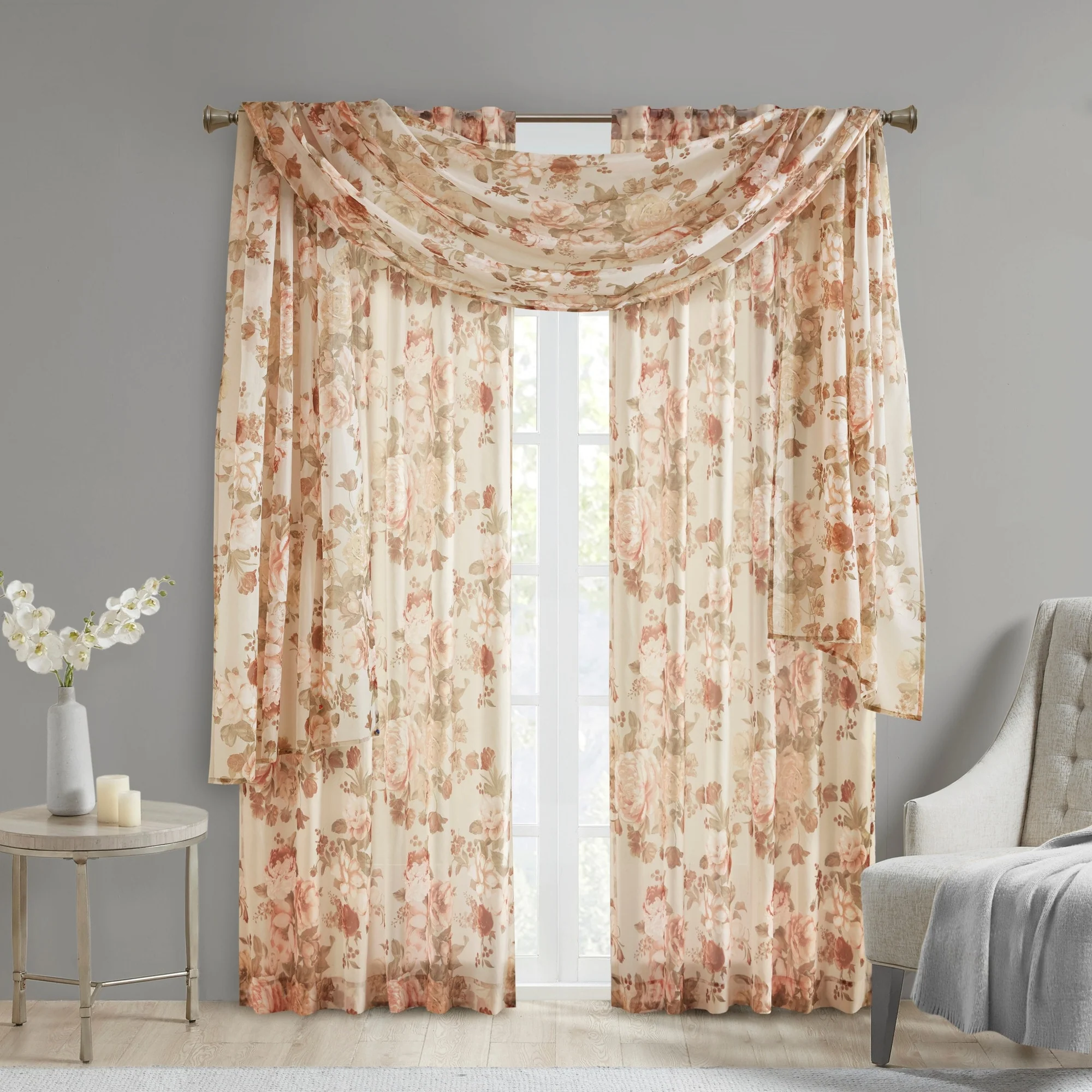 The Madison Park Abelia Printed Floral Voile Sheer Scarf adds a soft and romantic touch to your home decor. This voile sheer scarf features a beautiful soft tone printed floral on a neutral ground for a rich and stylish contrast, while the lightweight fabric adds a delicate and airy touch while it's also OEKO-TEX certified. This sheer scarf included four tabs with button closures that provide an easy way to drape it across your window curtain rod, for an elegant finishing touch.