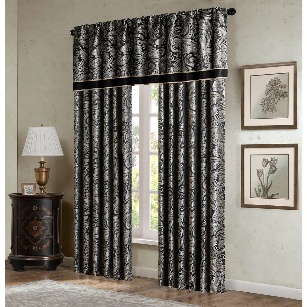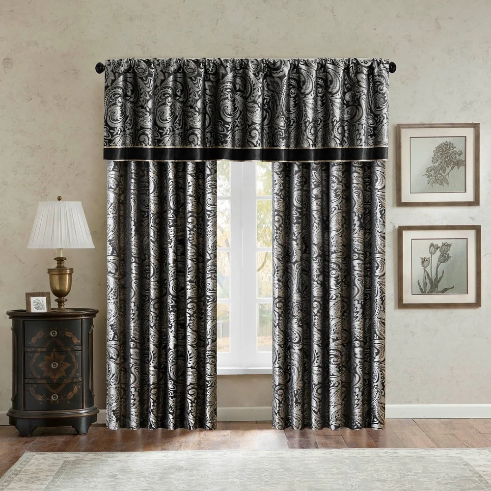 - Paisley jacquard weave design curtains finish with pieced border detailing