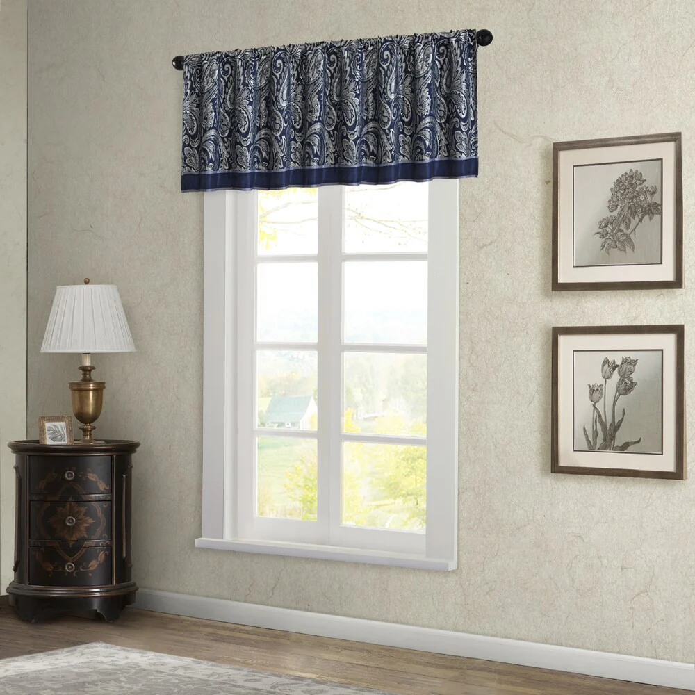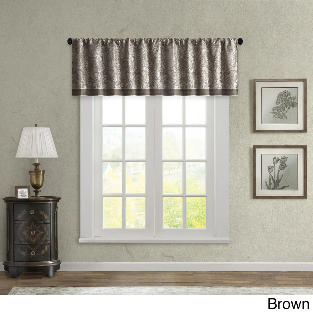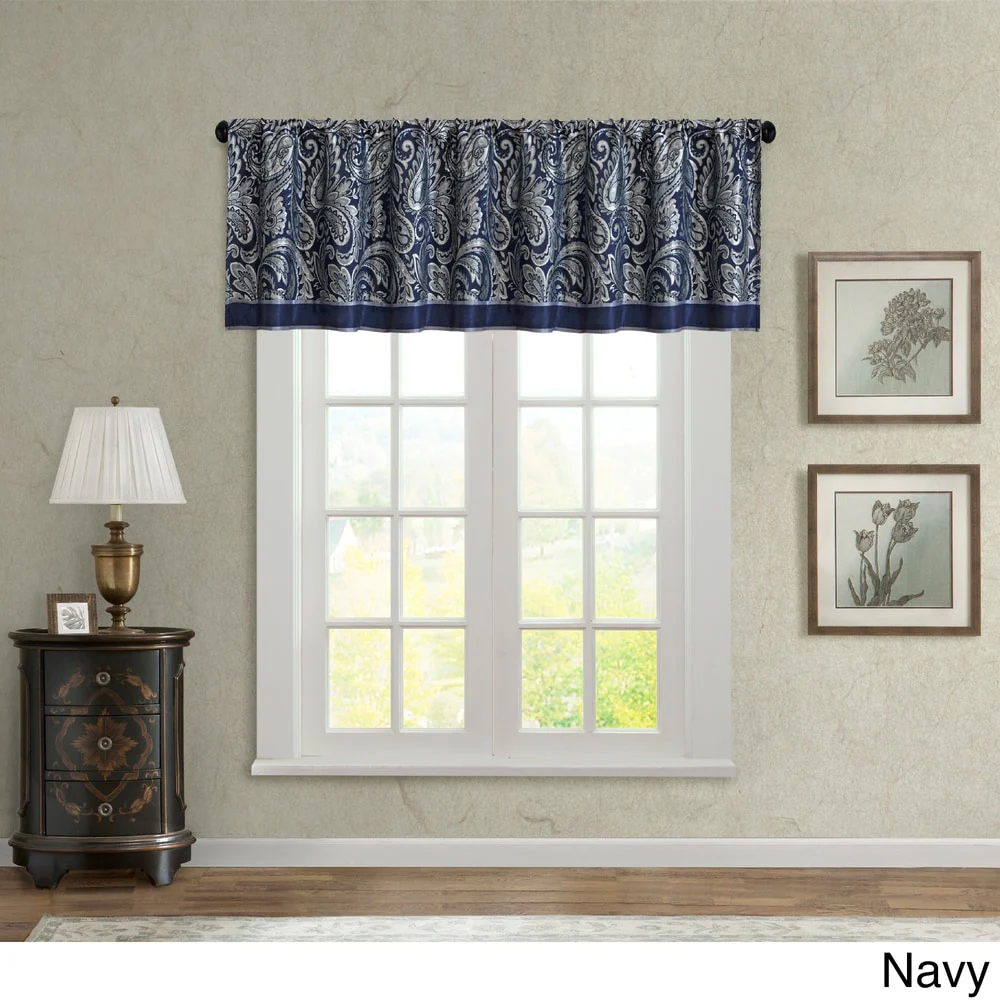 For a luxuriously classic style, our Madison Park Aubrey Window Valance is the perfect touch to your decor. The alluring jacquard weave is inspired from an updated paisley motif and is woven in beautiful color combination with a hint of shimmering accent. The window valance are pieced with solid faux silk and beautiful flat piping details in gold, creating an elegant look. While also achieving the OEKO-TEX certification, meaning it does not contain any harmful substances or chemicals, ensuring quality comfort and wellness. Simply hang on rod pocket; while fitting up to a standard 1.25 inches diameter rod. Coordinating window panels, bedding is also available and sold separately.