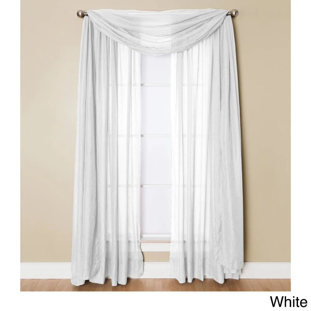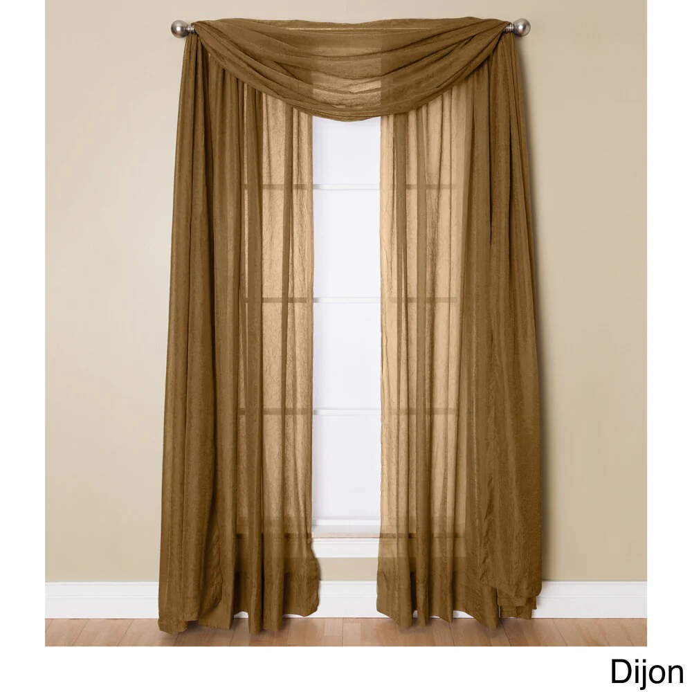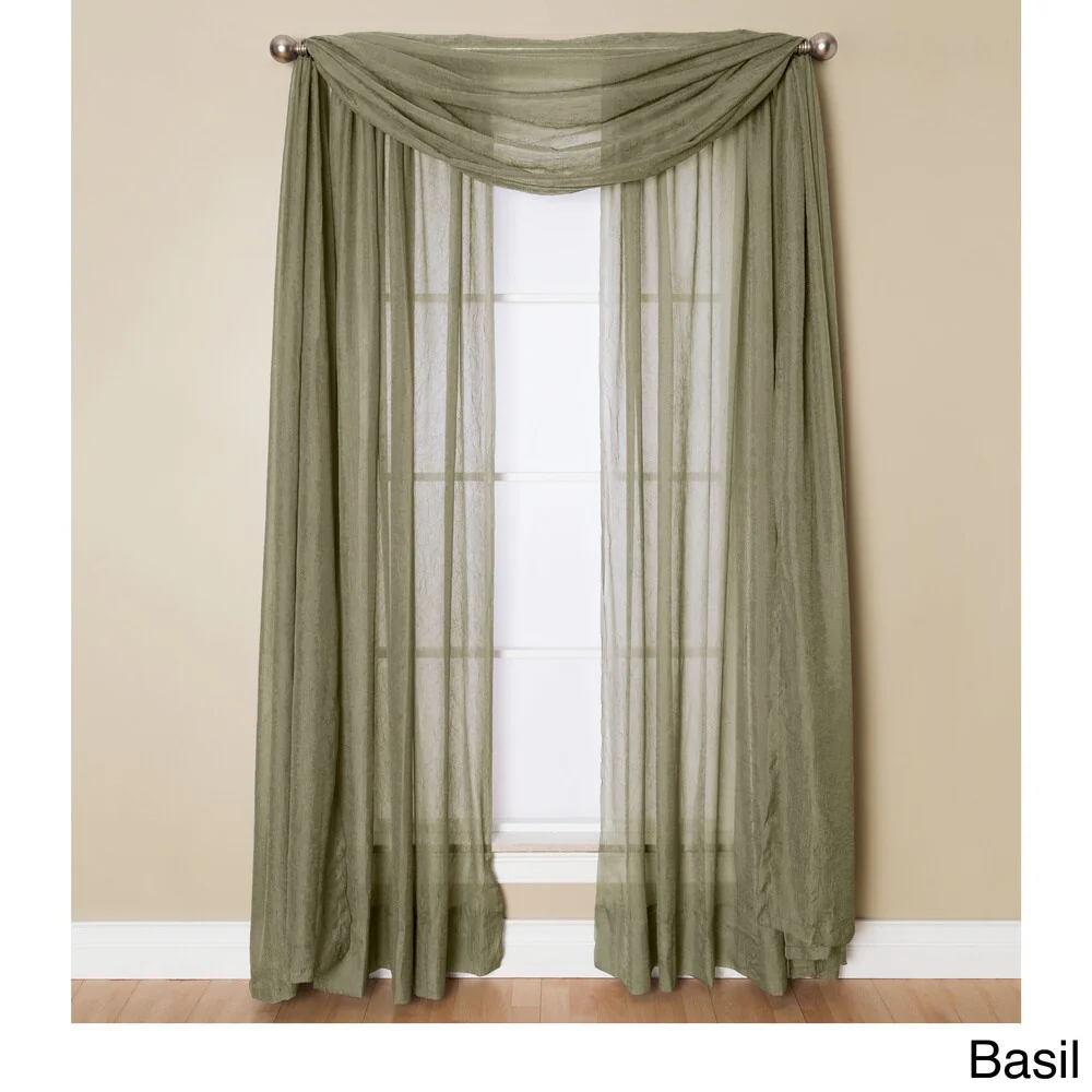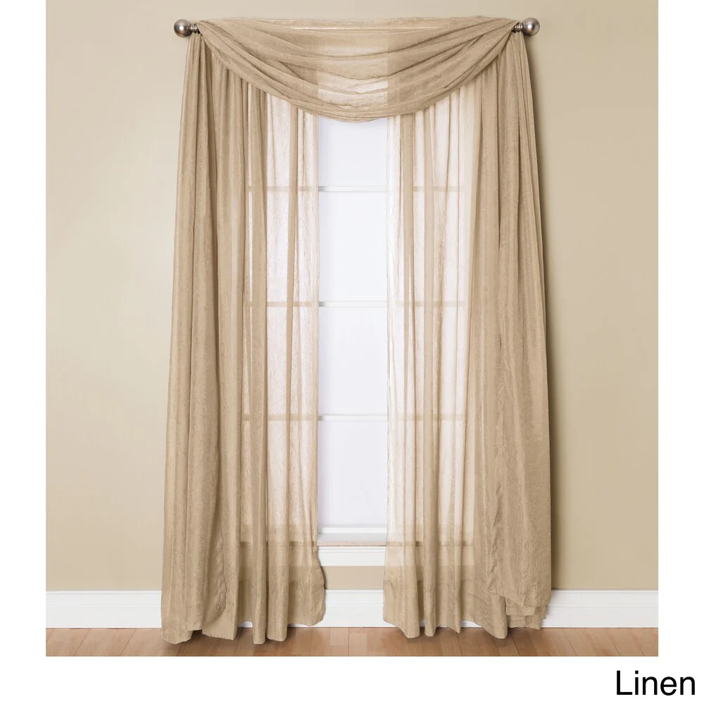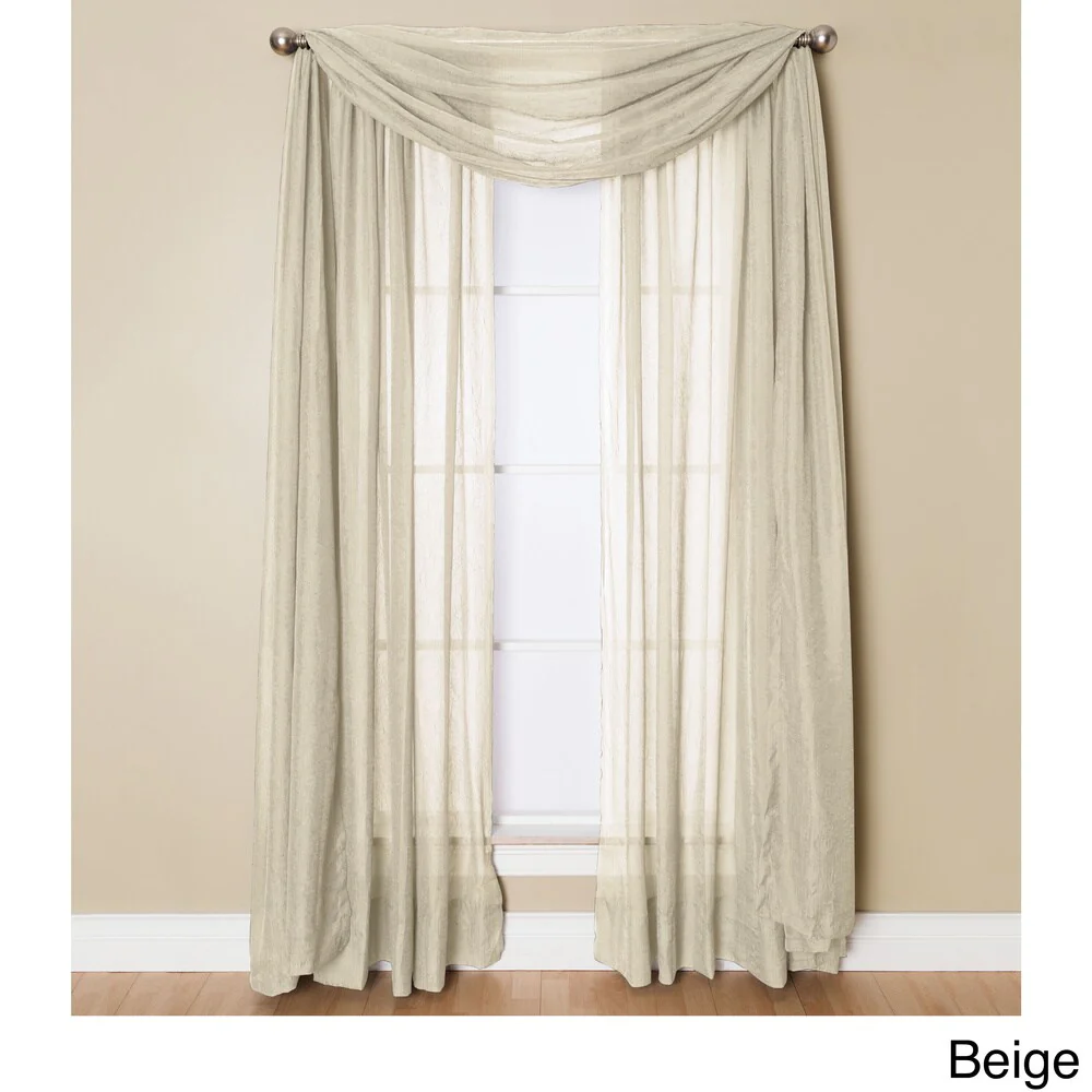 Bring an elegant look to your window with this Miller Curtains Preston window scarf. The sheer design of the crushed voile fabric lends a graceful yet dramatic touch to your window, while the solid color and pattern blend beautifully with the traditional character of your space.