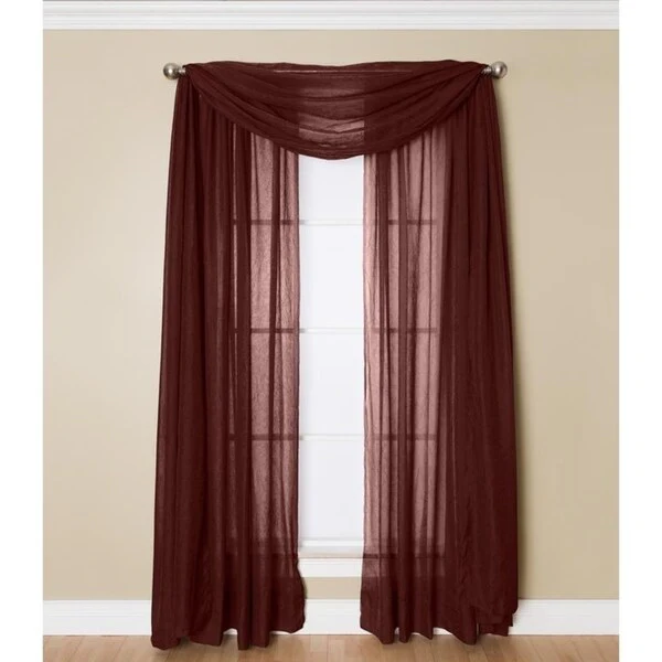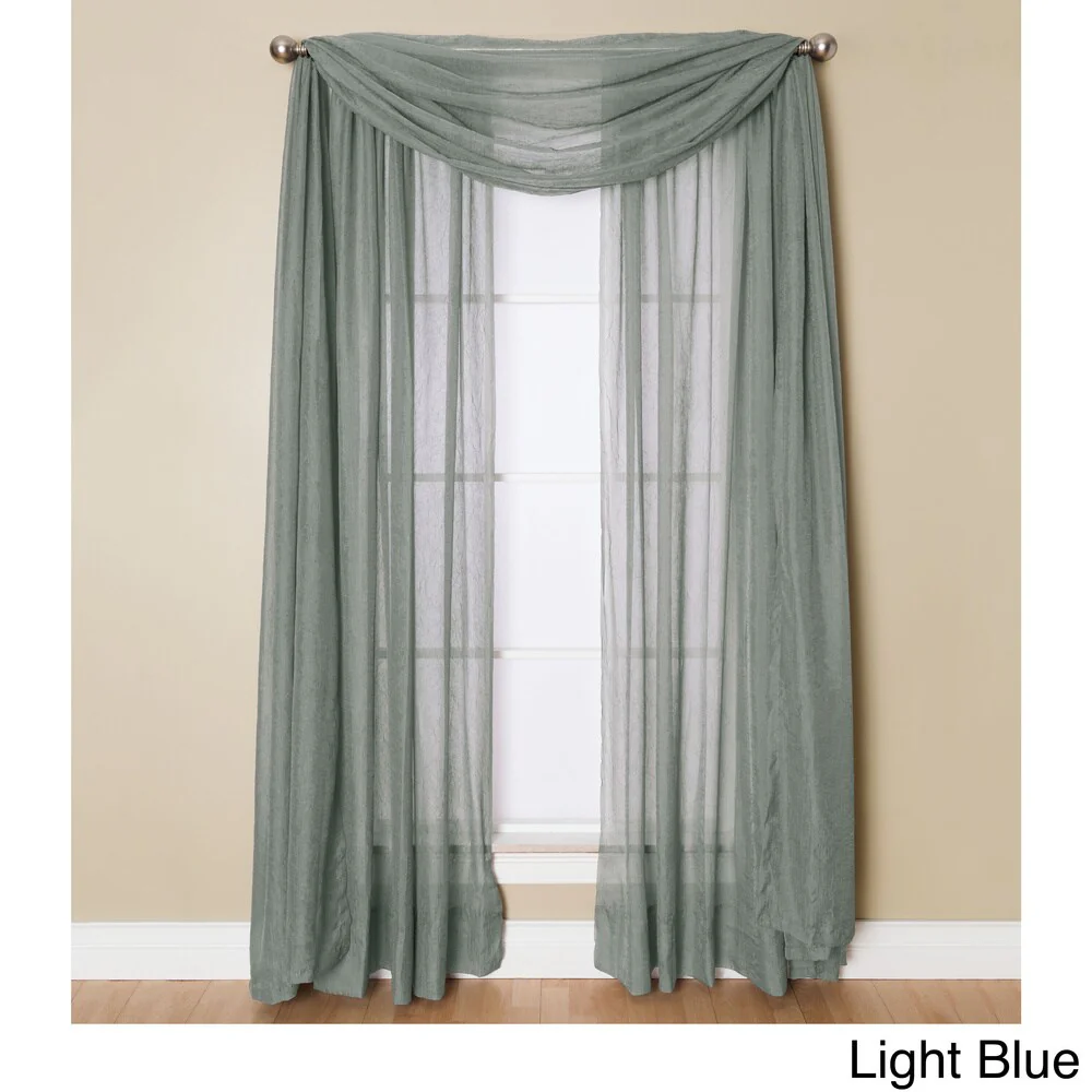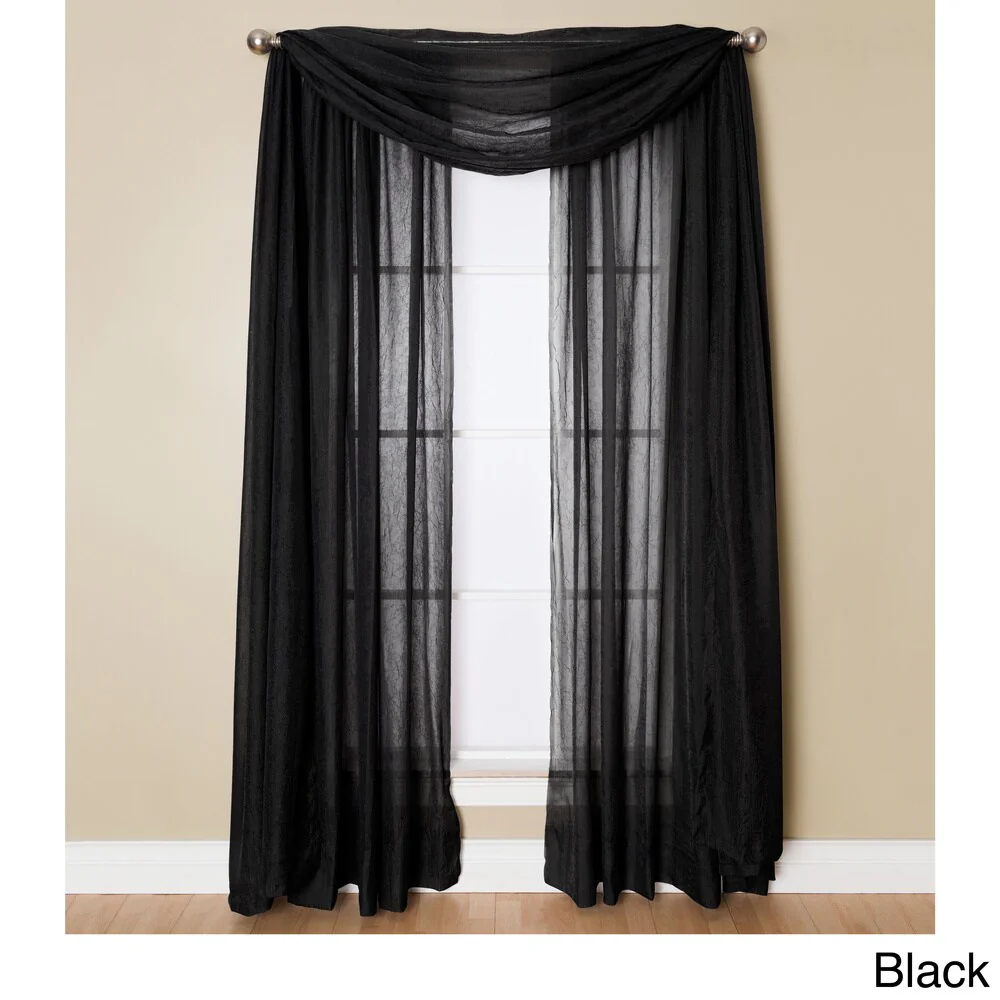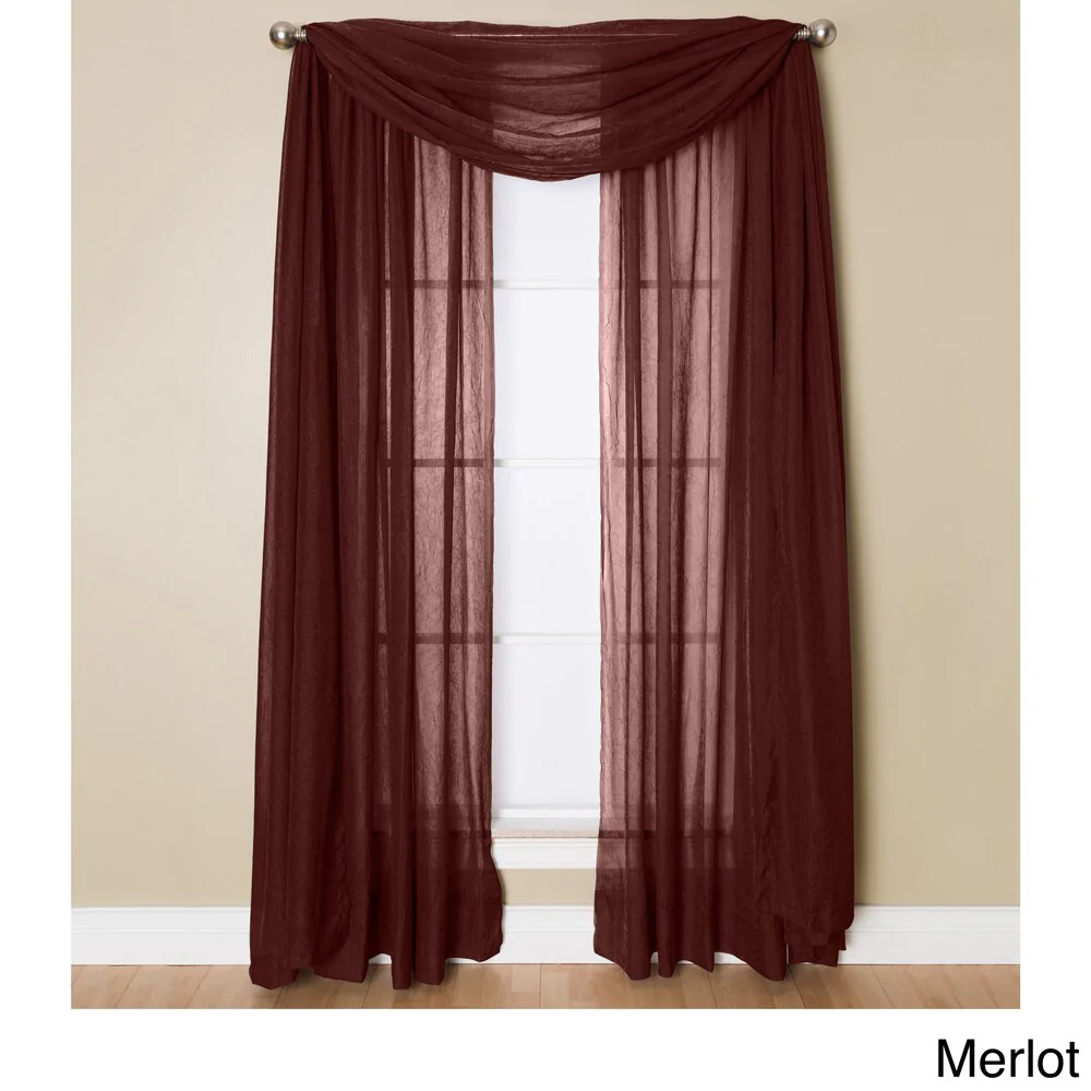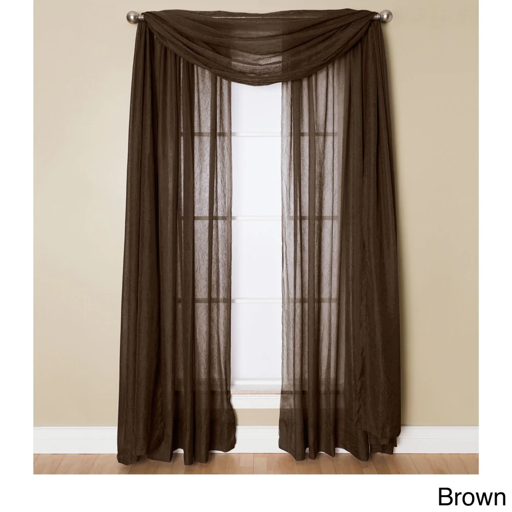 Bring an elegant look to your window with this Miller Curtains Preston window scarf. The sheer design of the crushed voile fabric lends a graceful yet dramatic touch to your window, while the solid color and pattern blend beautifully with the traditional character of your space.
