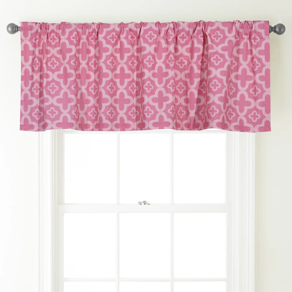 Bring a fun, vibrant touch to your space with this pink window valence. The 54-inch-wide valence has a modern geometric print that lends interest to any room. Matching panels sold separately.