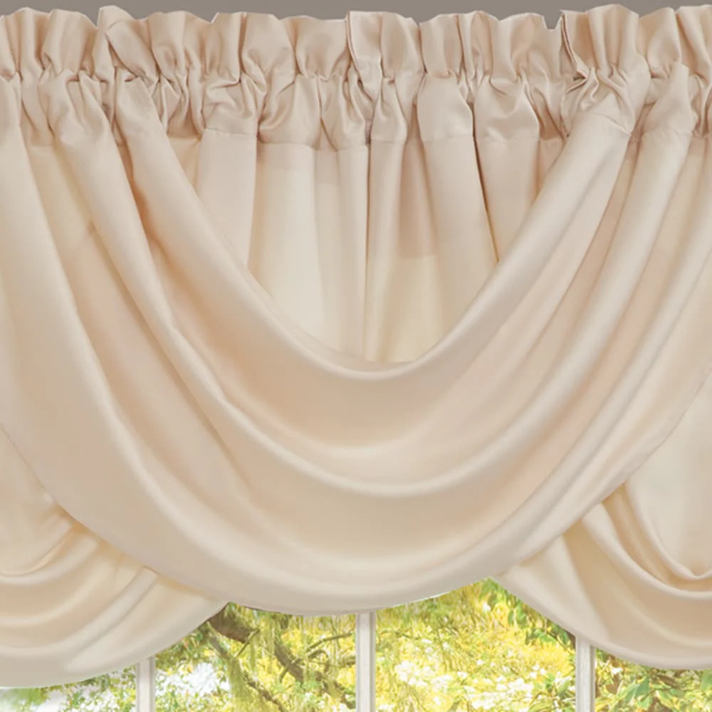Offer an element of grace and texture to any space in your home with this lovely window valance. Handcrafted of a silky brushed poly fabric, this luxurious valance drapes elegantly from curtain rods with the sewn-in 3-inch rod pocket. Pair this stunning valance with a matching set of drapery panels or use alone to let natural light brighten your room.