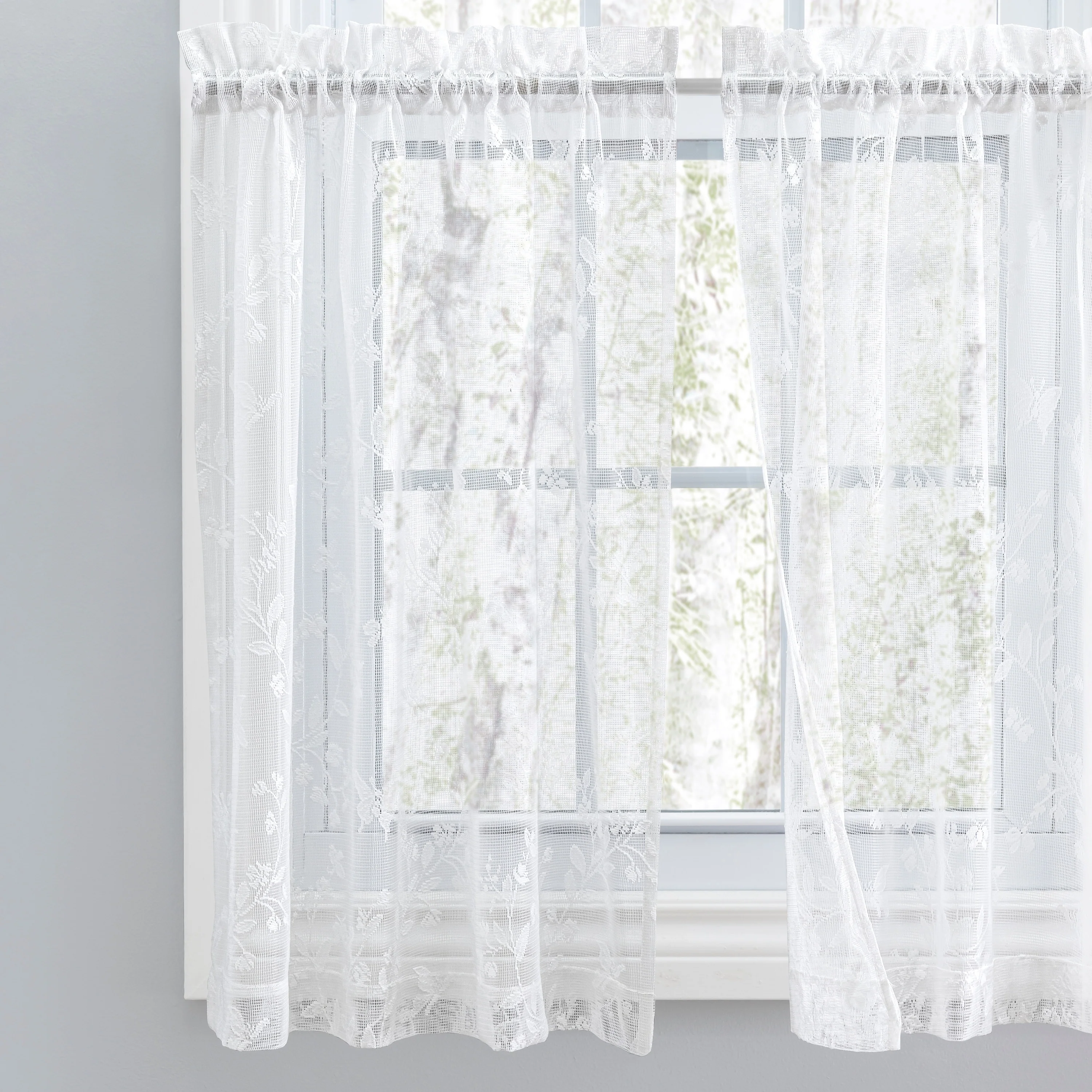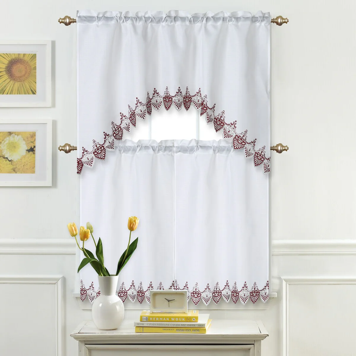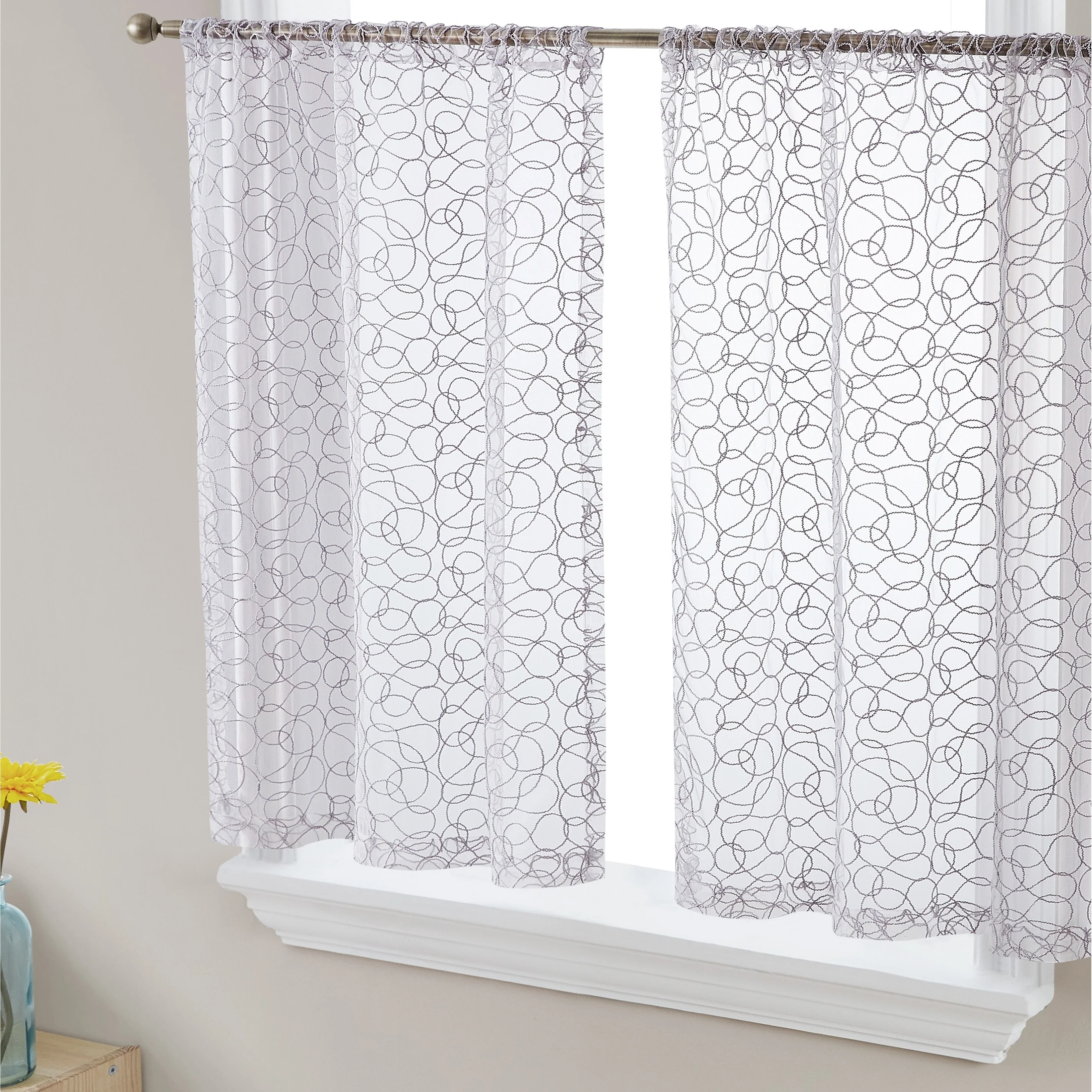 HLC.me Audrey Embroidered Sheer Voile Window Curtain Short Rod Pocket Tiers Valance Kitchen, Small Windows and Bathroom