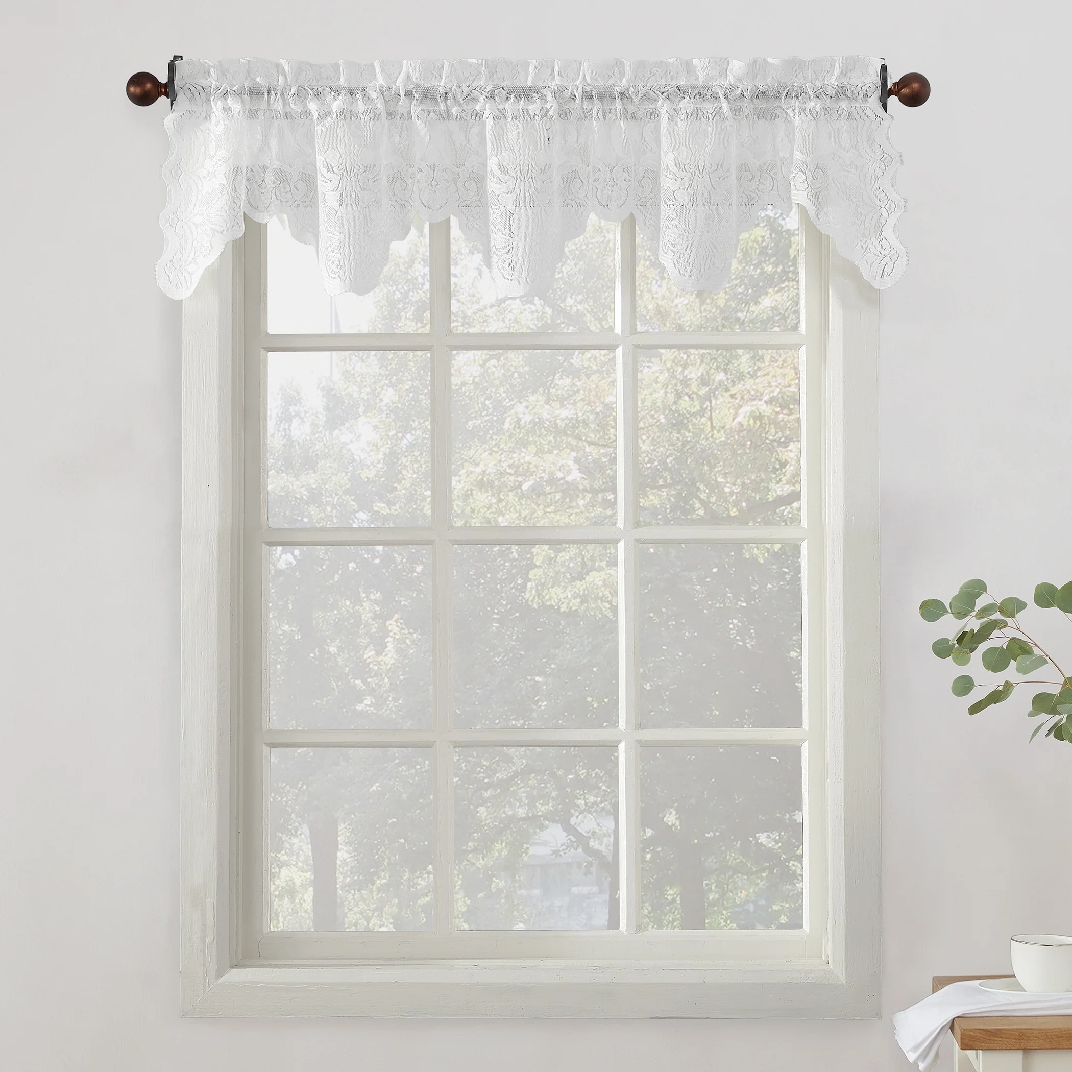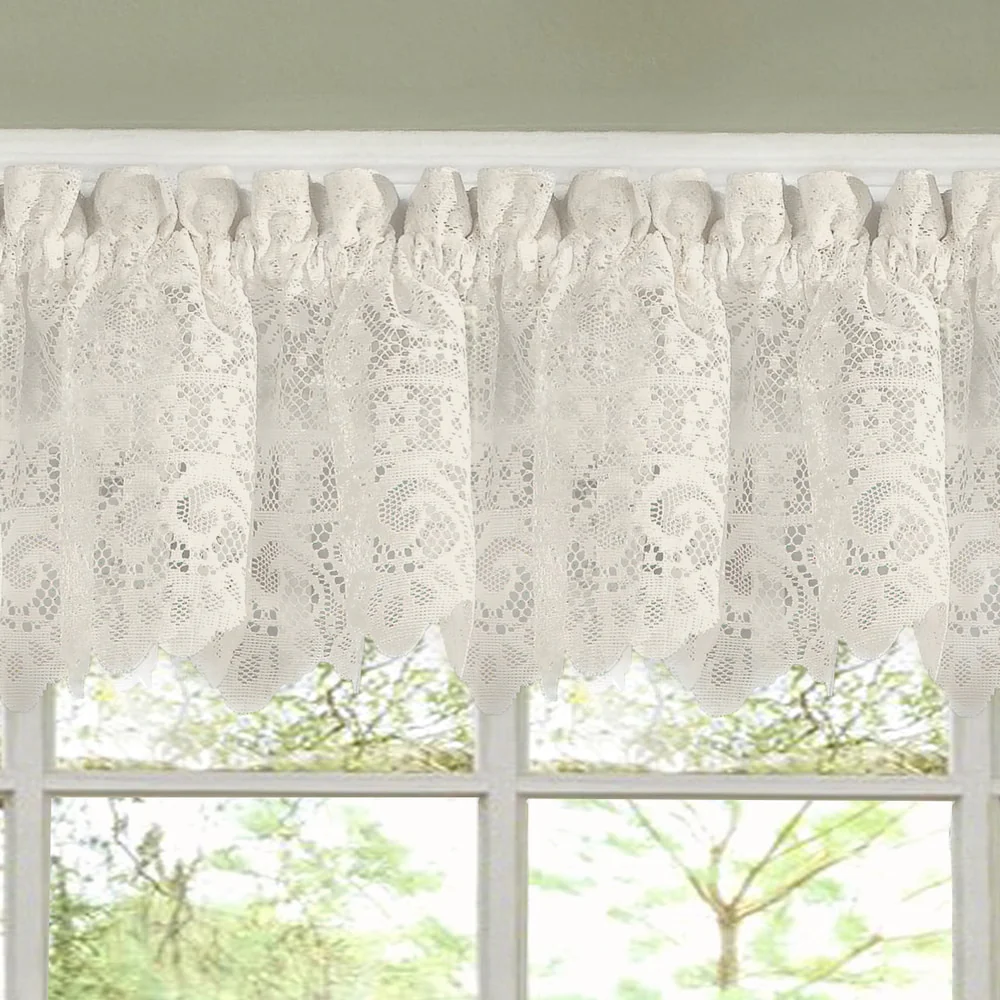 HLC.me Joyce Lace Sheer Kitchen Cafe Curtain Valance for Small Windows, Kitchen & Bathroom - 54 W x 18 L - Single Valance