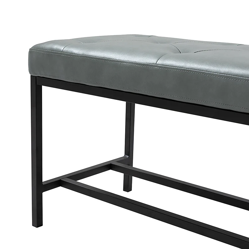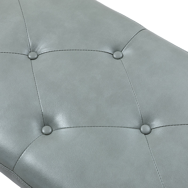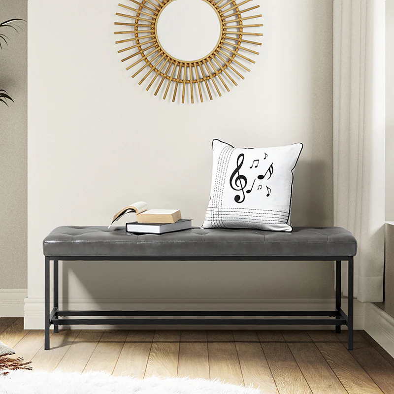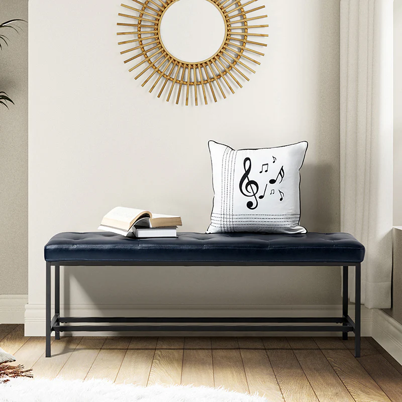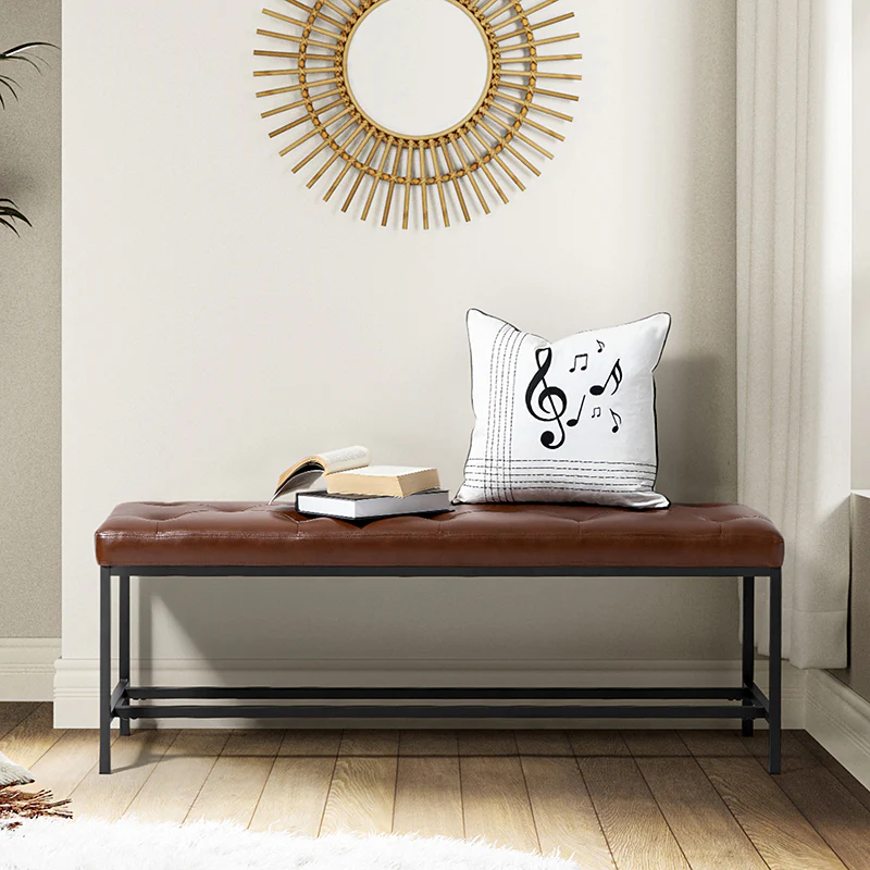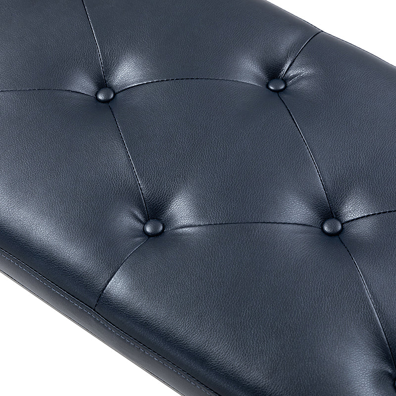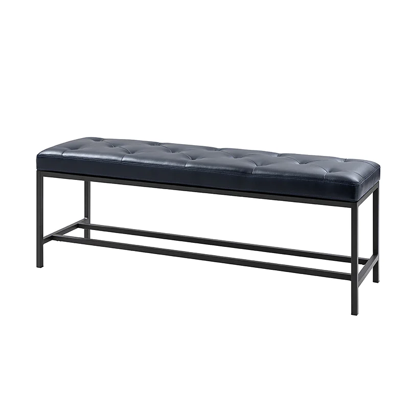 Presenting the epitome of elegance, behold this exquisite bench that flawlessly combines the finest elements of industrial, contemporary, transitional, vintage, and modern styles. Crafted with meticulous precision, its vegan leather upholstery showcases its timeless beauty and ensures effortless cleaning. With its versatile placement options, this bench becomes a dining companion, an end-of-bed luxury, a comfy footrest, or even a makeshift coffee table, adapting effortlessly to your ever-changing needs. The inclusion of a storage shelf adds practicality to its charm, while the button-tufted accents elevate its sophistication. Embrace the ease of maintenance and revel in its multifunctional design, as this remarkable bench enhances your home with its aesthetics and functionality.