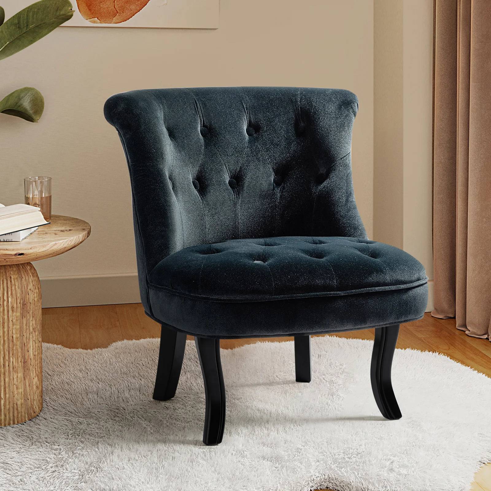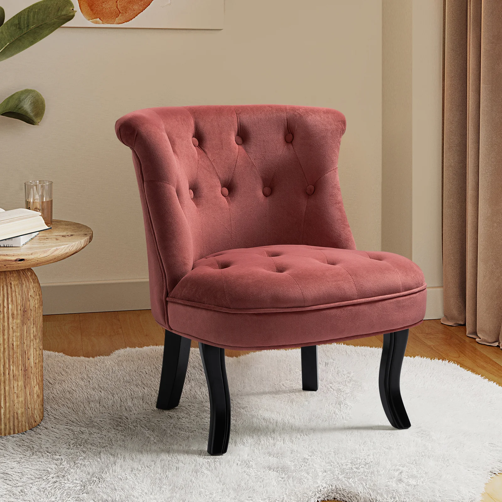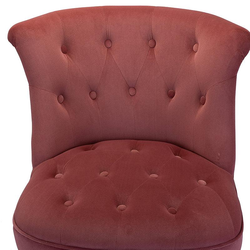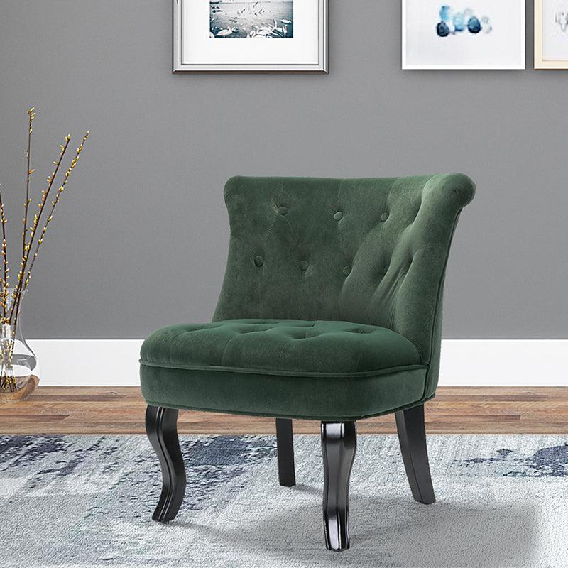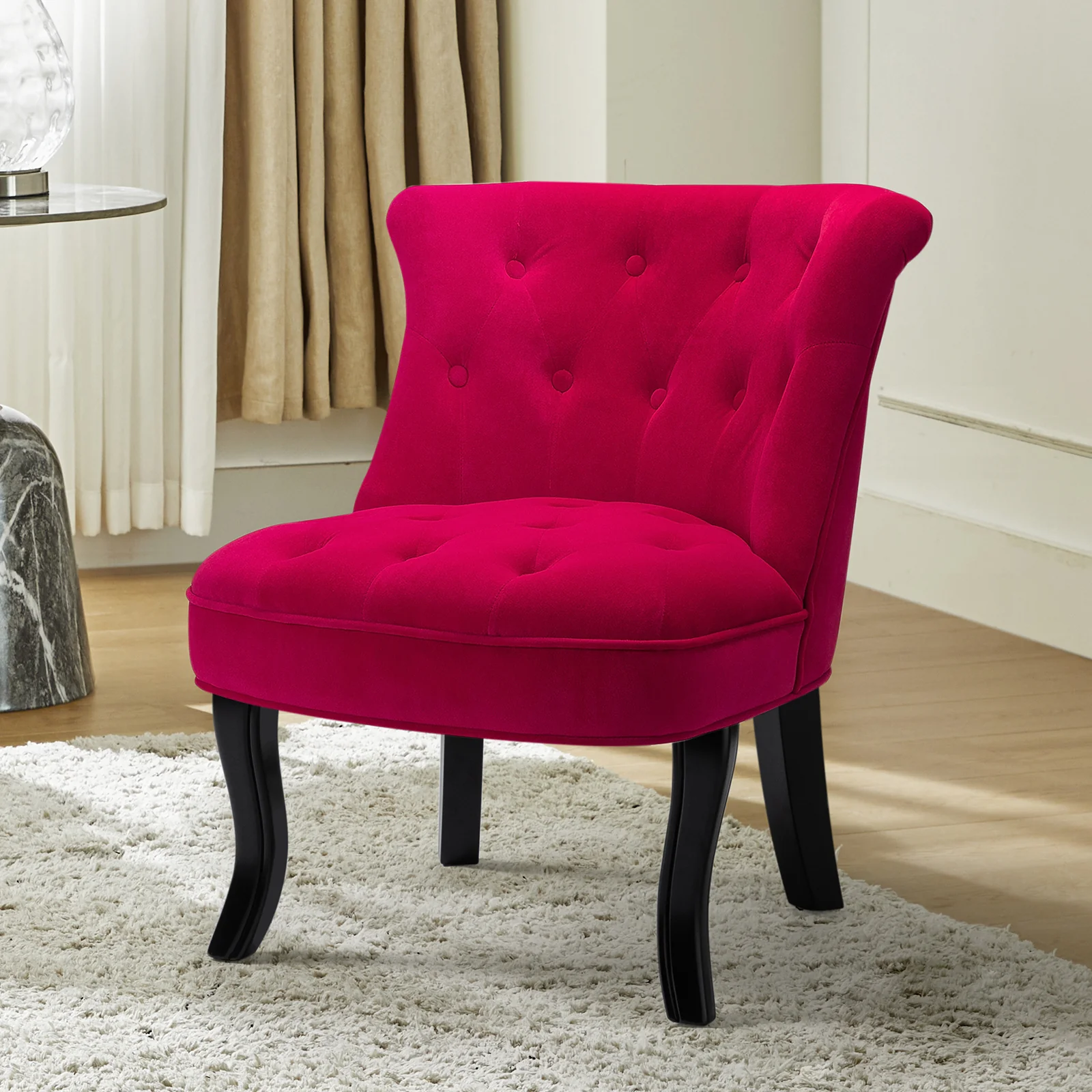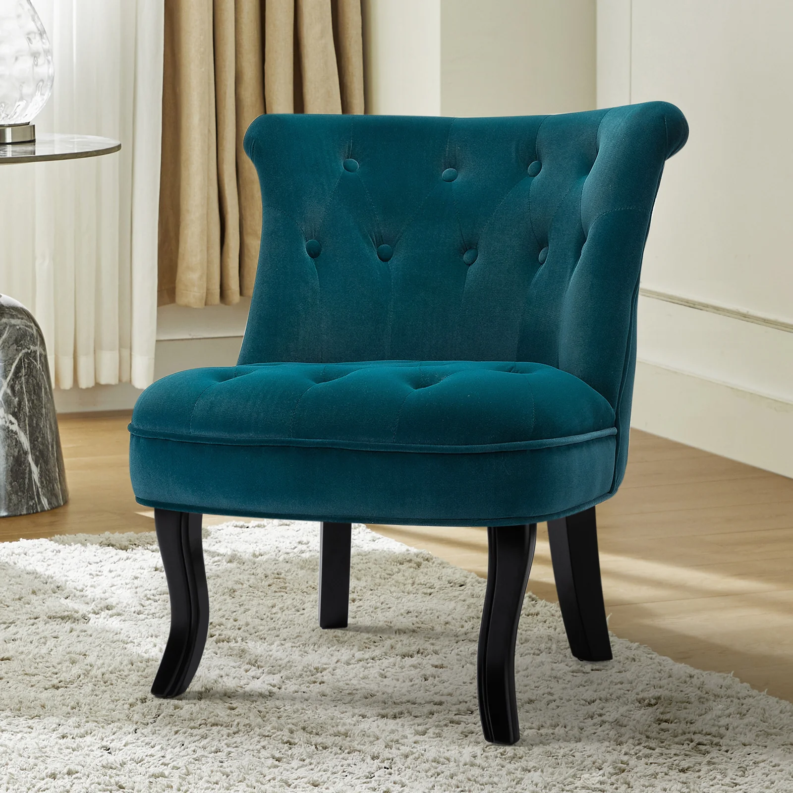 Add a pop of color with this side chair. Sitting atop briarwood legs, the velvet upholstered chair is functional and decorative. This small accent chair features a lovely tufted fabric on the seat and back, perfect for any design aesthetic. This chair can be placed in any room or office space.