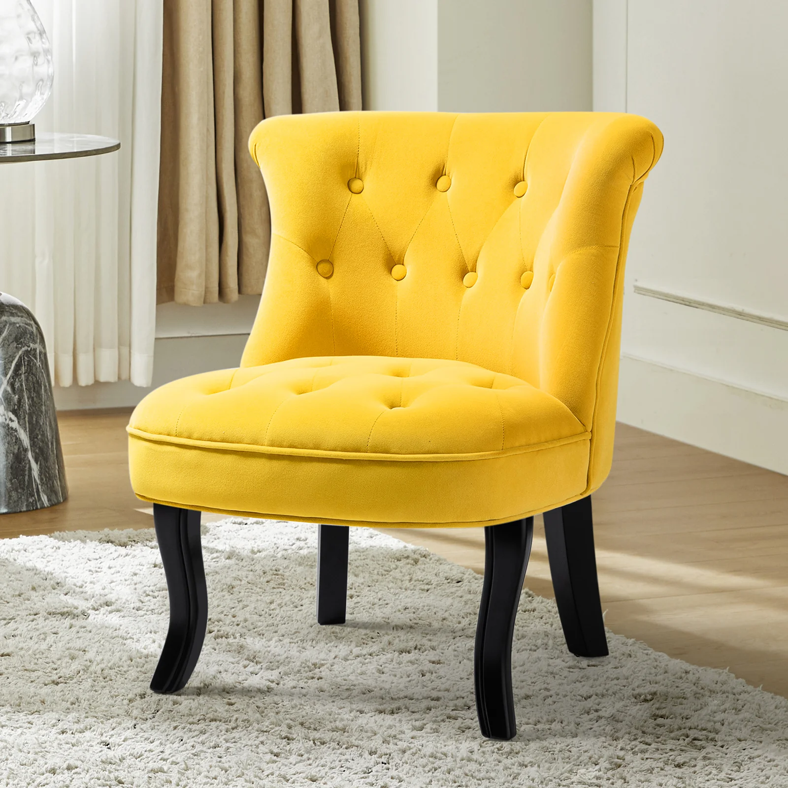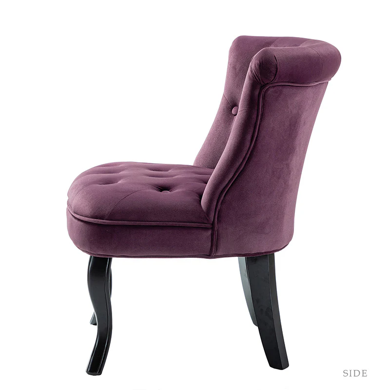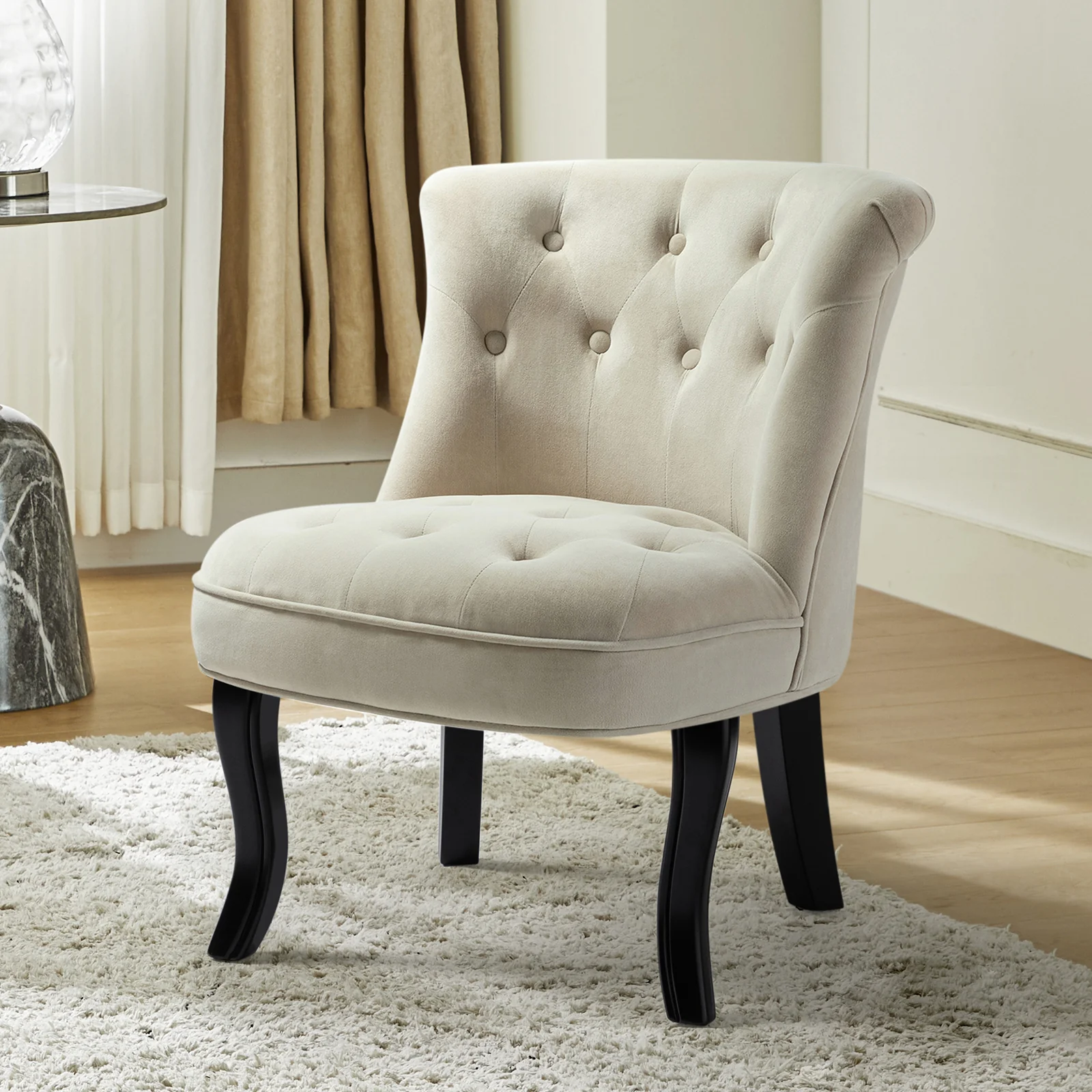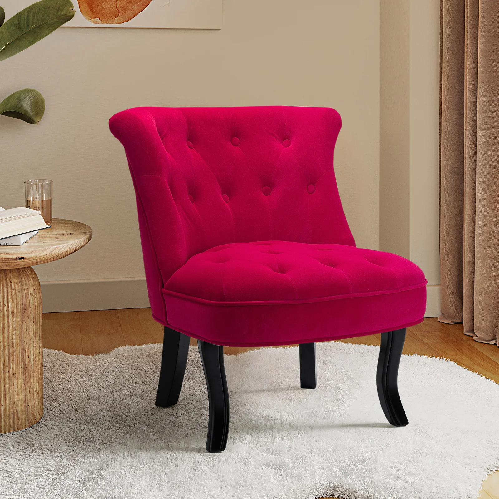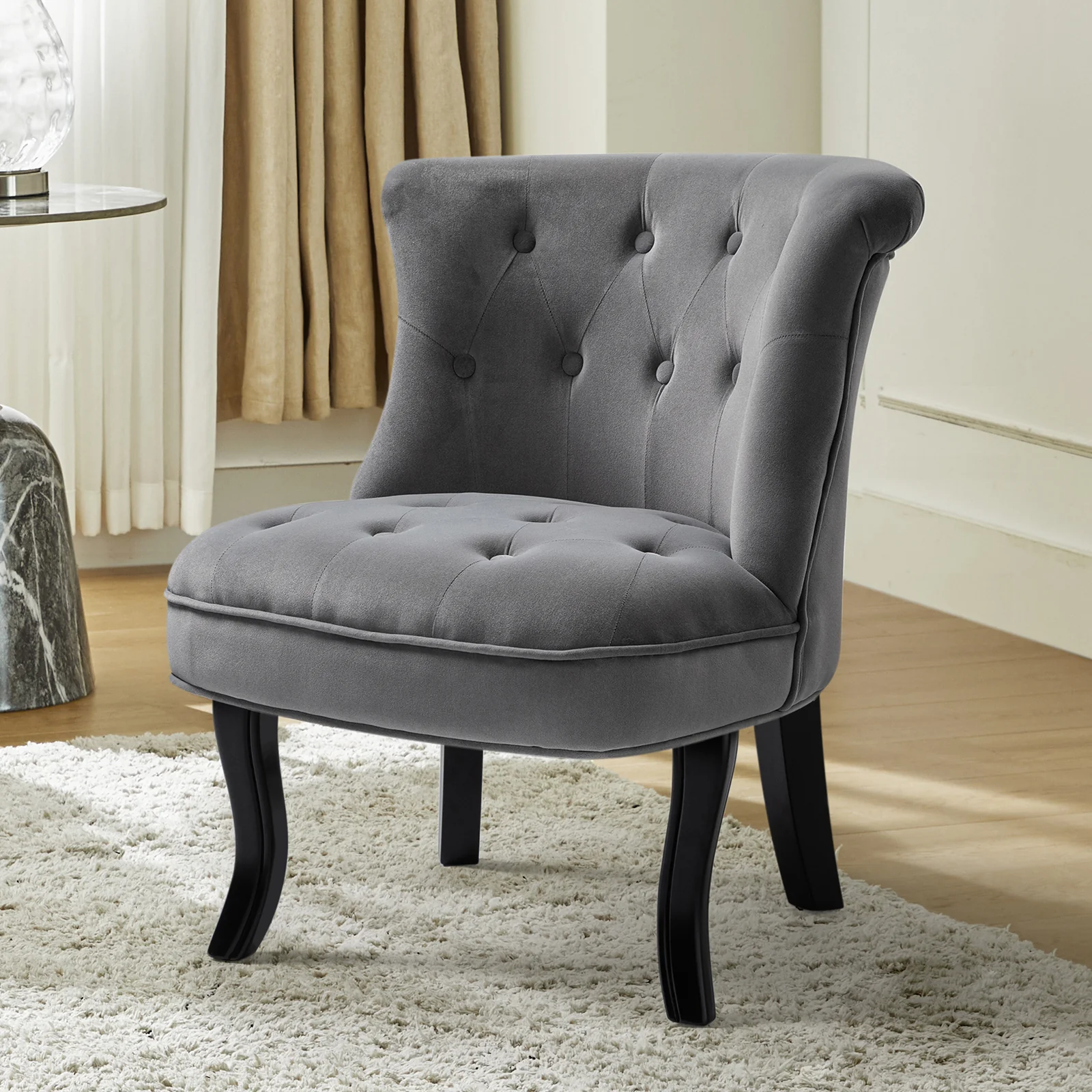 Add a pop of color with this side chair. Sitting atop briarwood legs, the velvet upholstered chair is functional and decorative. This small accent chair features a lovely tufted fabric on the seat and back, perfect for any design aesthetic. This chair can be placed in any room or office space.
