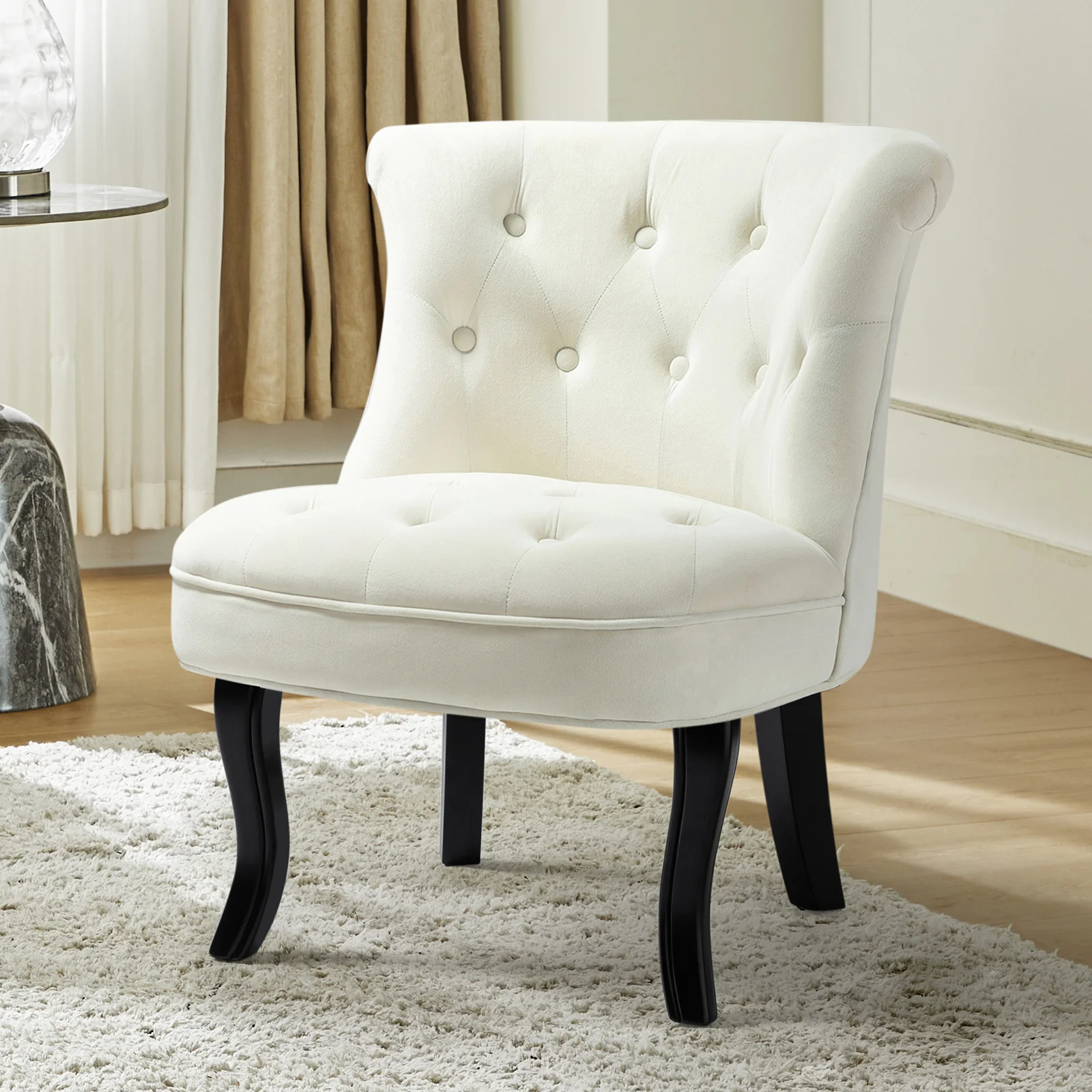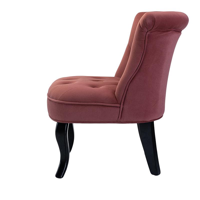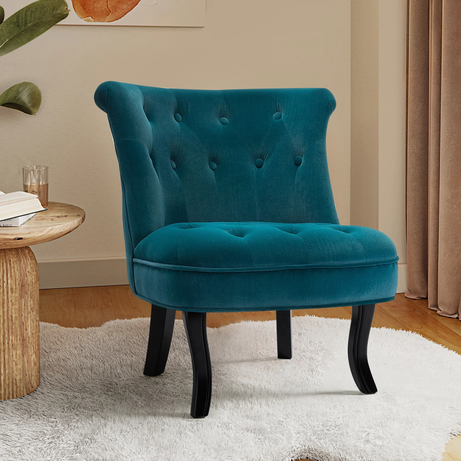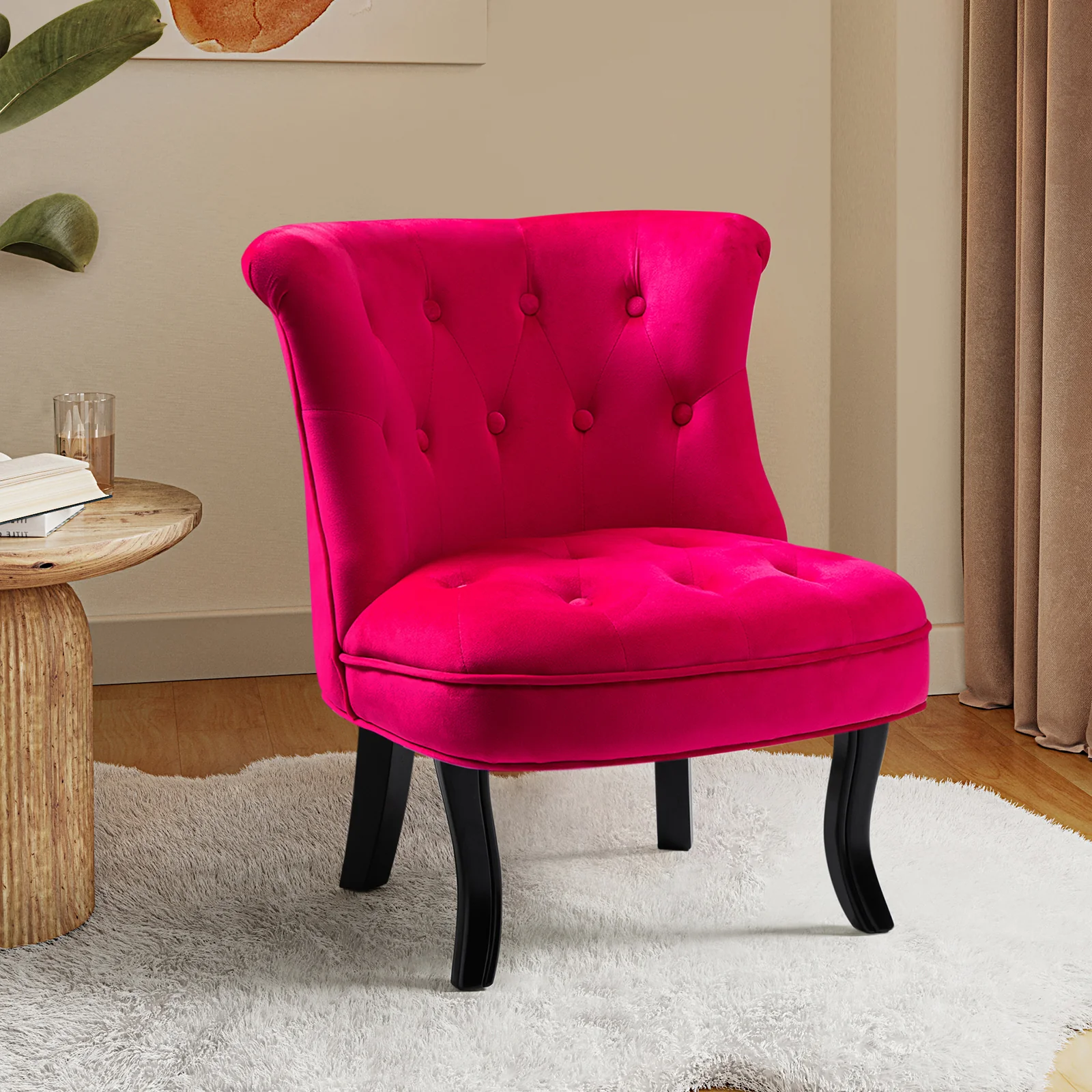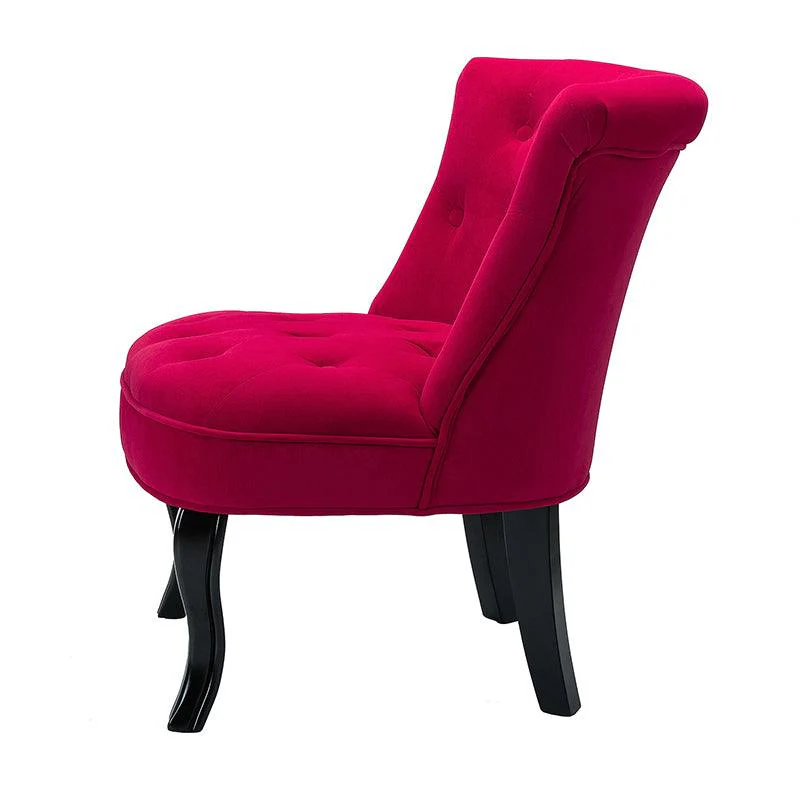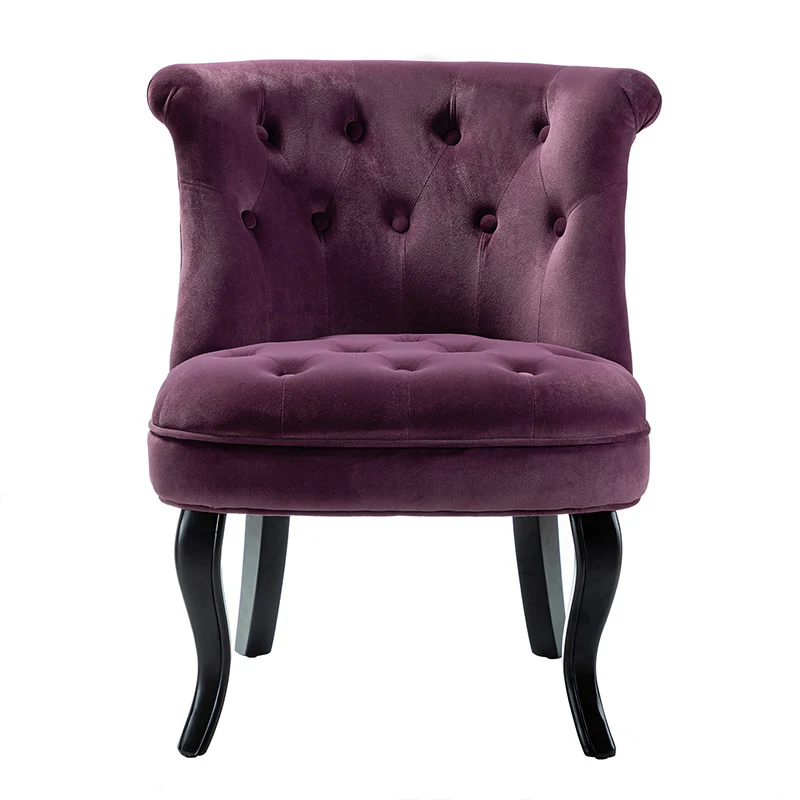 Add a pop of color with this side chair. Sitting atop briarwood legs, the velvet upholstered chair is functional and decorative. This small accent chair features a lovely tufted fabric on the seat and back, perfect for any design aesthetic. This chair can be placed in any room or office space.